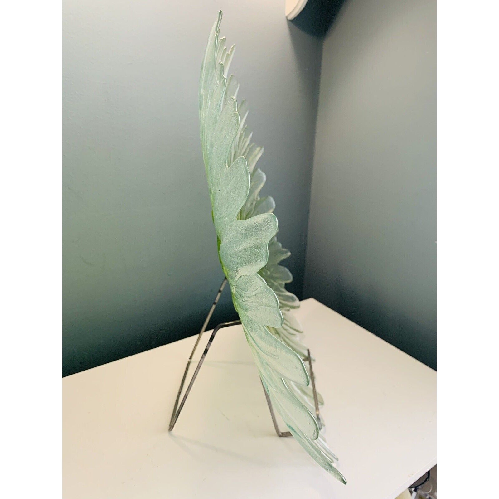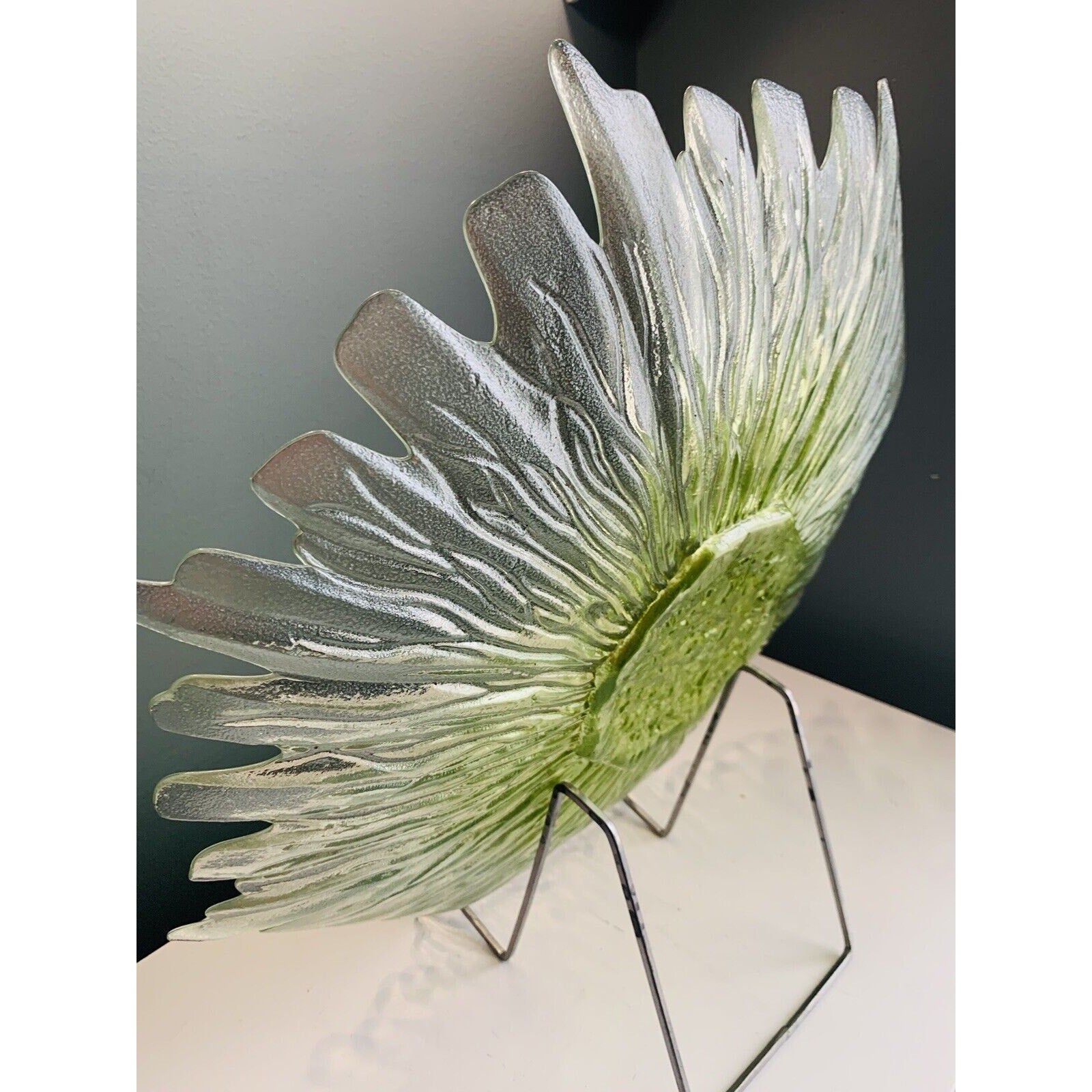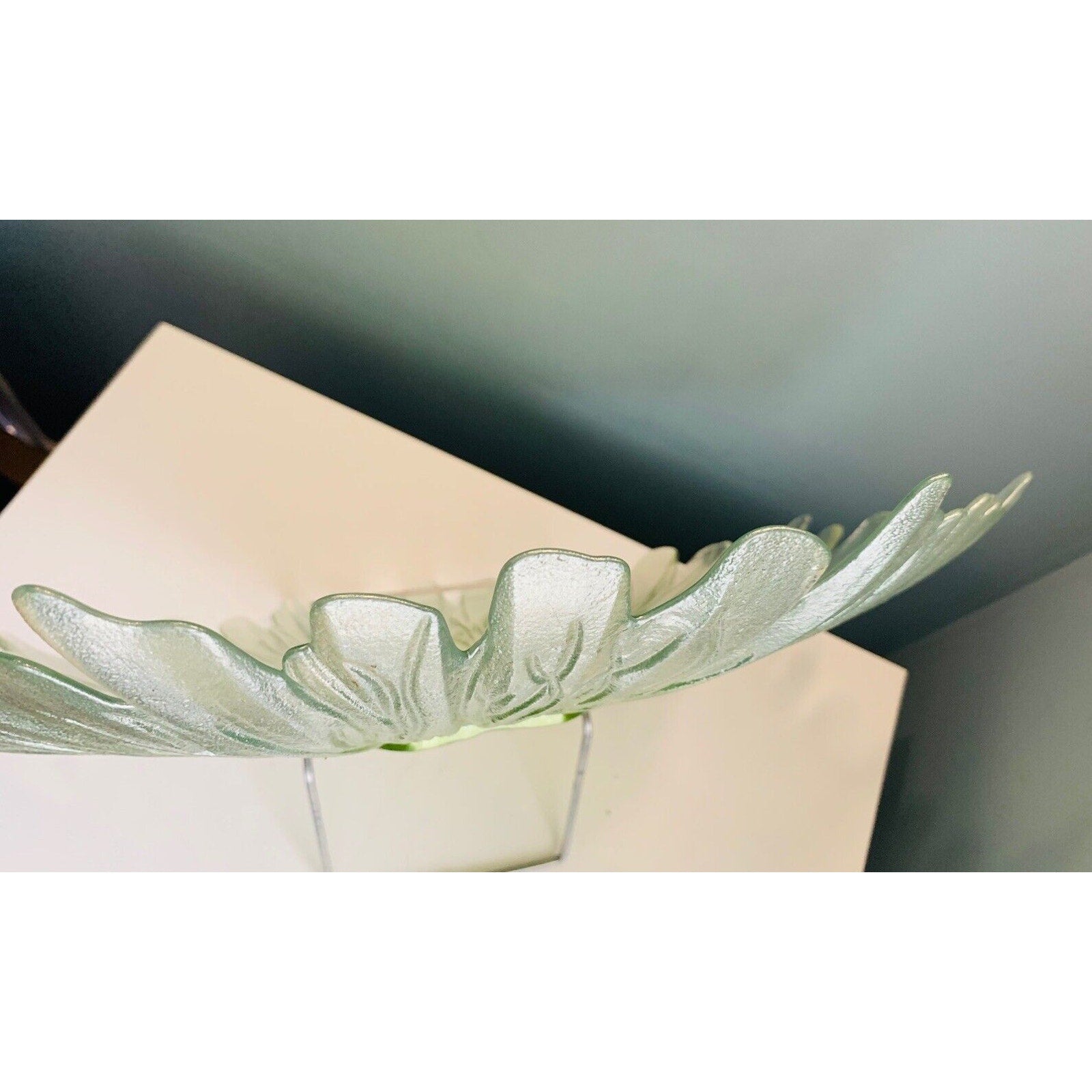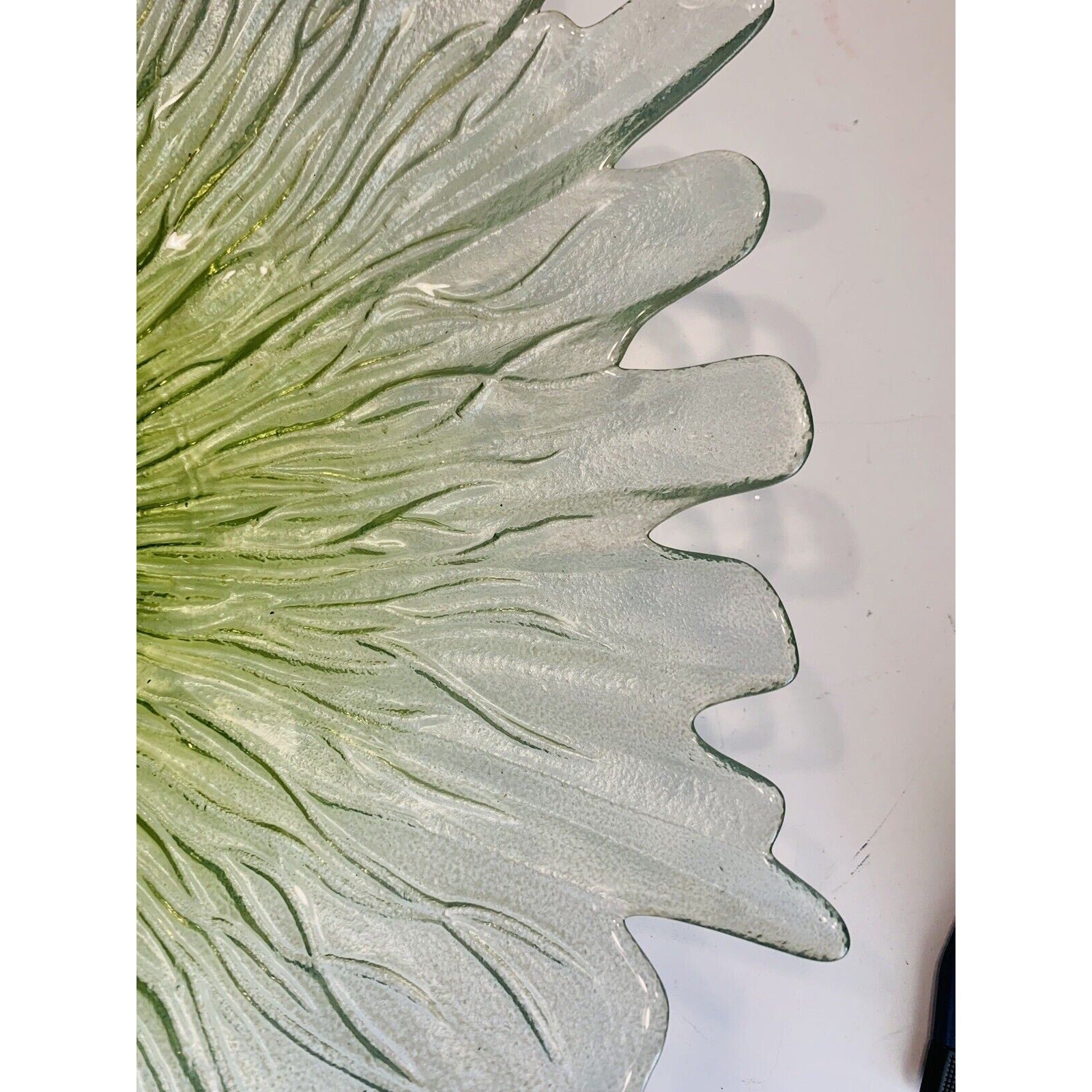 17” Green Flower Platter Hand Blown Art Glass Large Serving Tray Sunflower Heavy