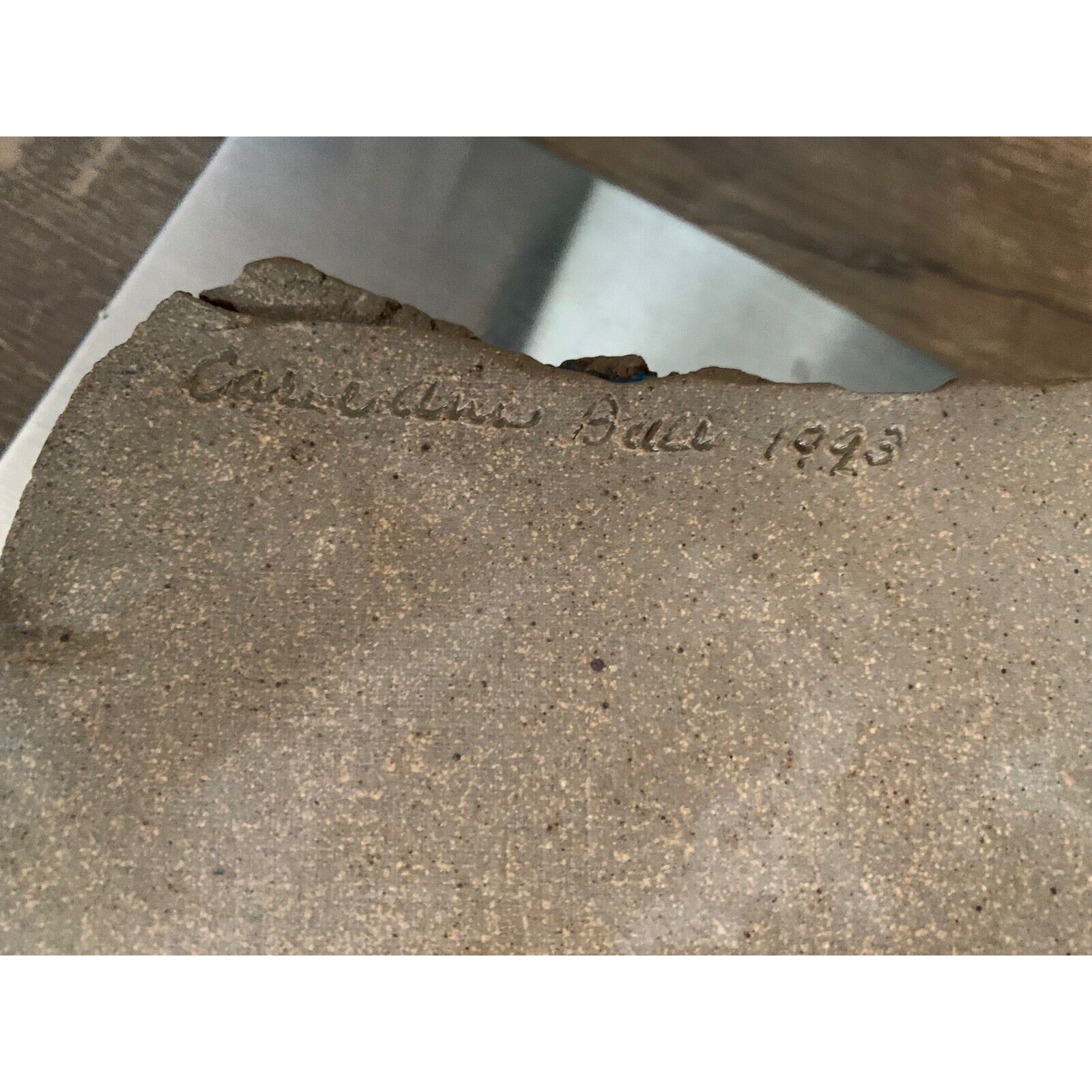 1993 Art Pottery Wall Pocket Hand Made Blue Speckle Glossy Heavy Hanging Vase