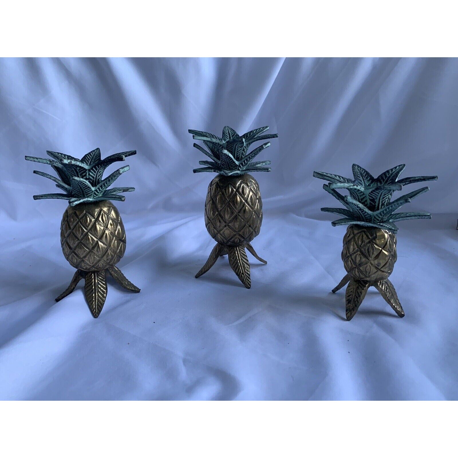 3 Vintage Heavy Antique Brass Pineapple Candlestick Holders Bohemian Retro