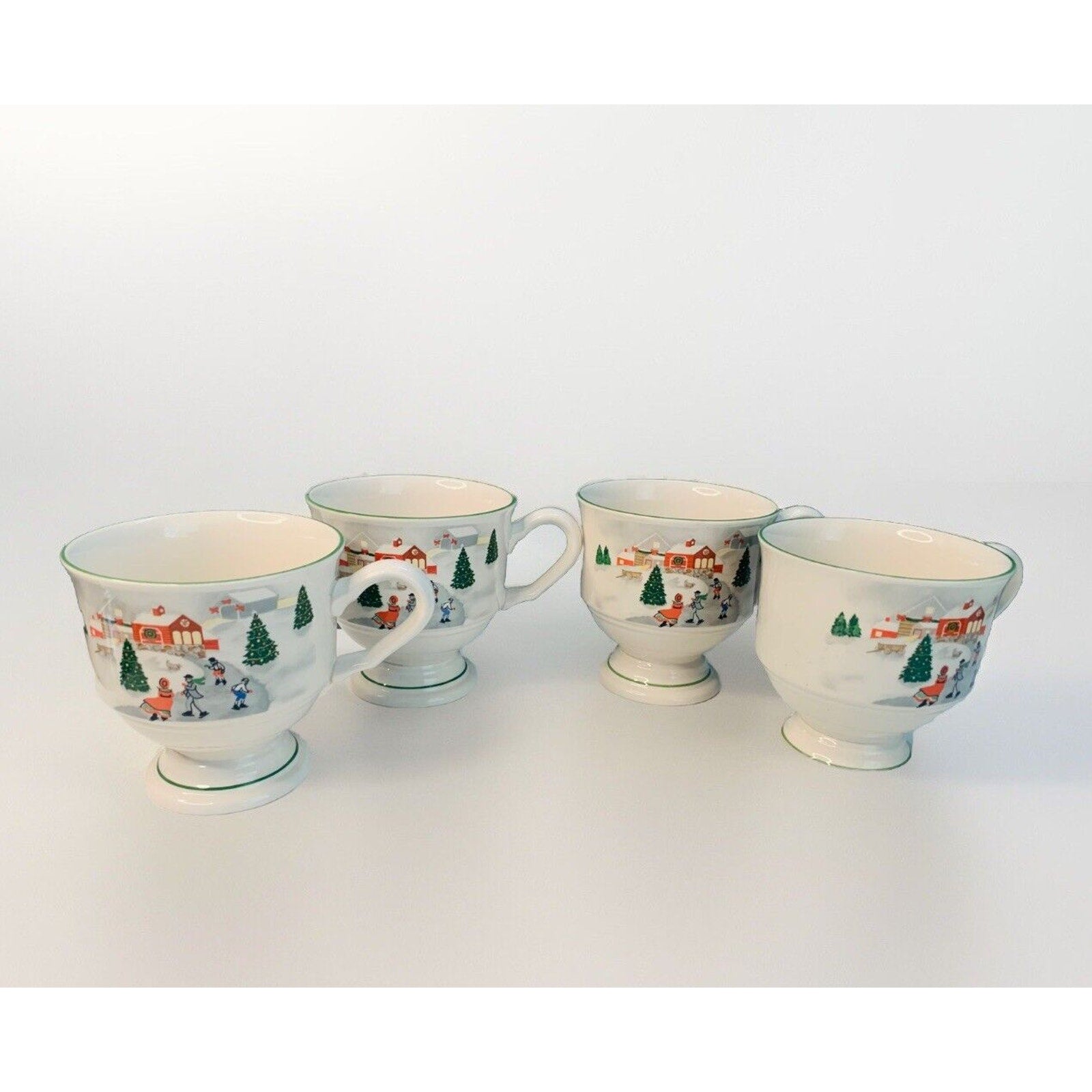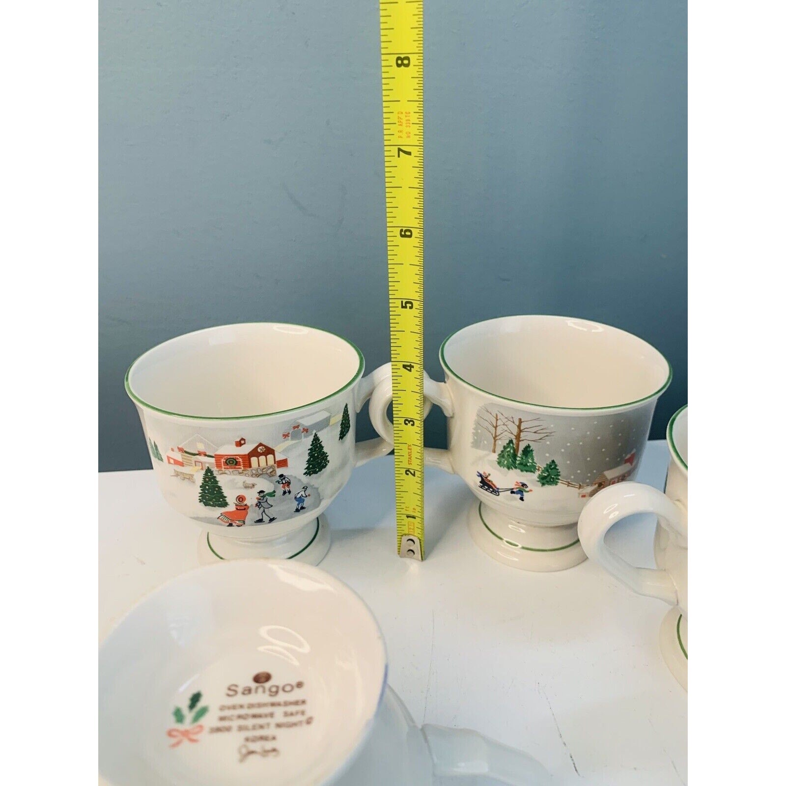Never used. Like new condition. No chips or cracks. Enjoy your winter coffee in style with these four Sango Silent Night Footed Coffee Mugs. The vintage Christmas design features a beautiful winter scene and is perfect for adding a touch of festive cheer to your mornings. Made from high-quality materials, these mugs are durable and will keep your drinks warm for longer.