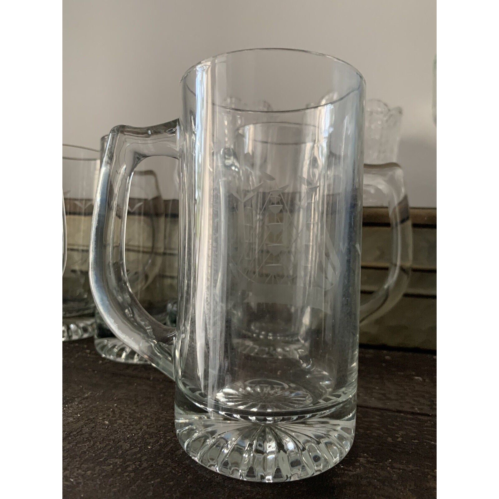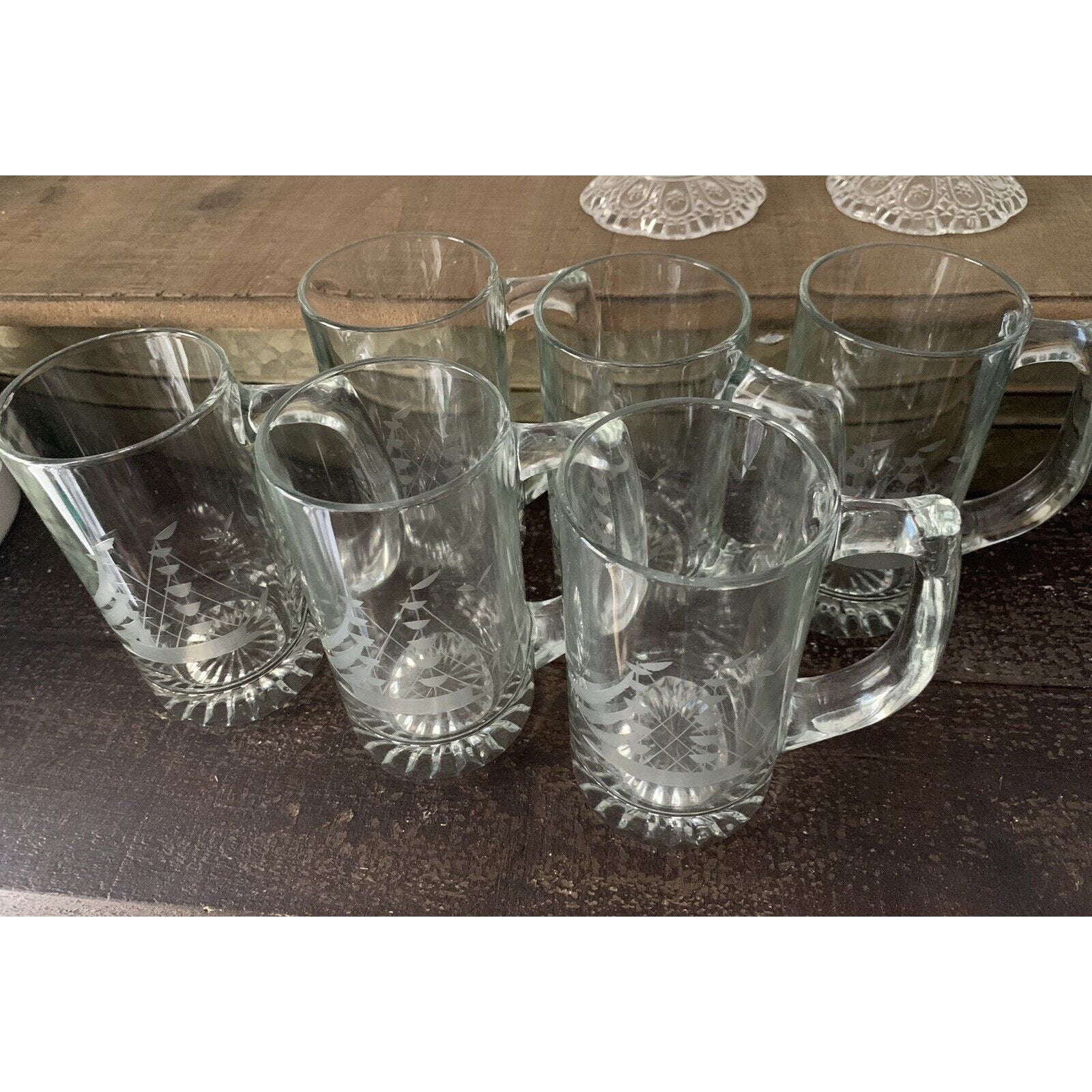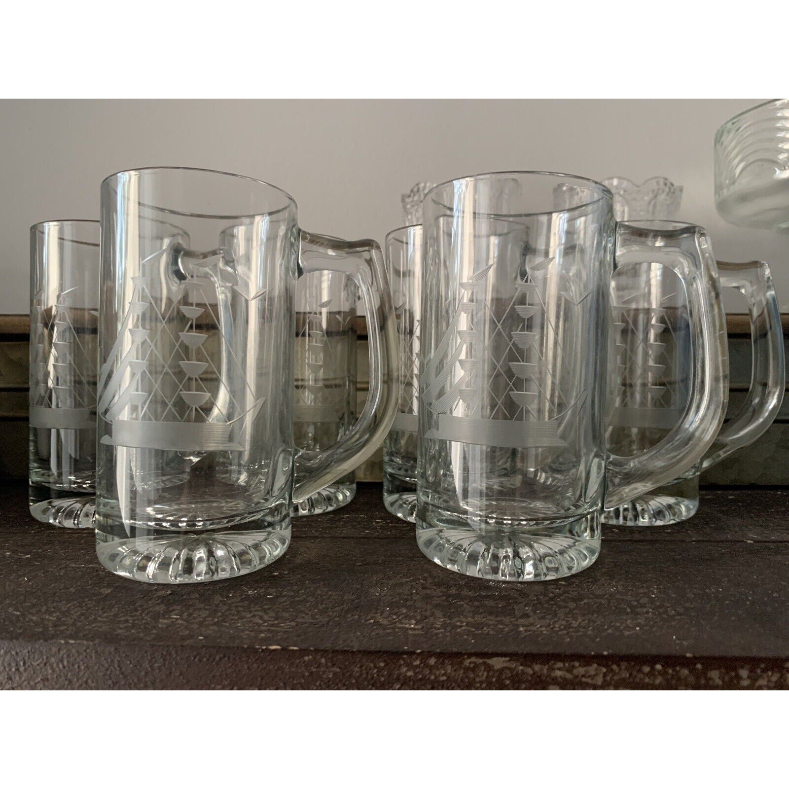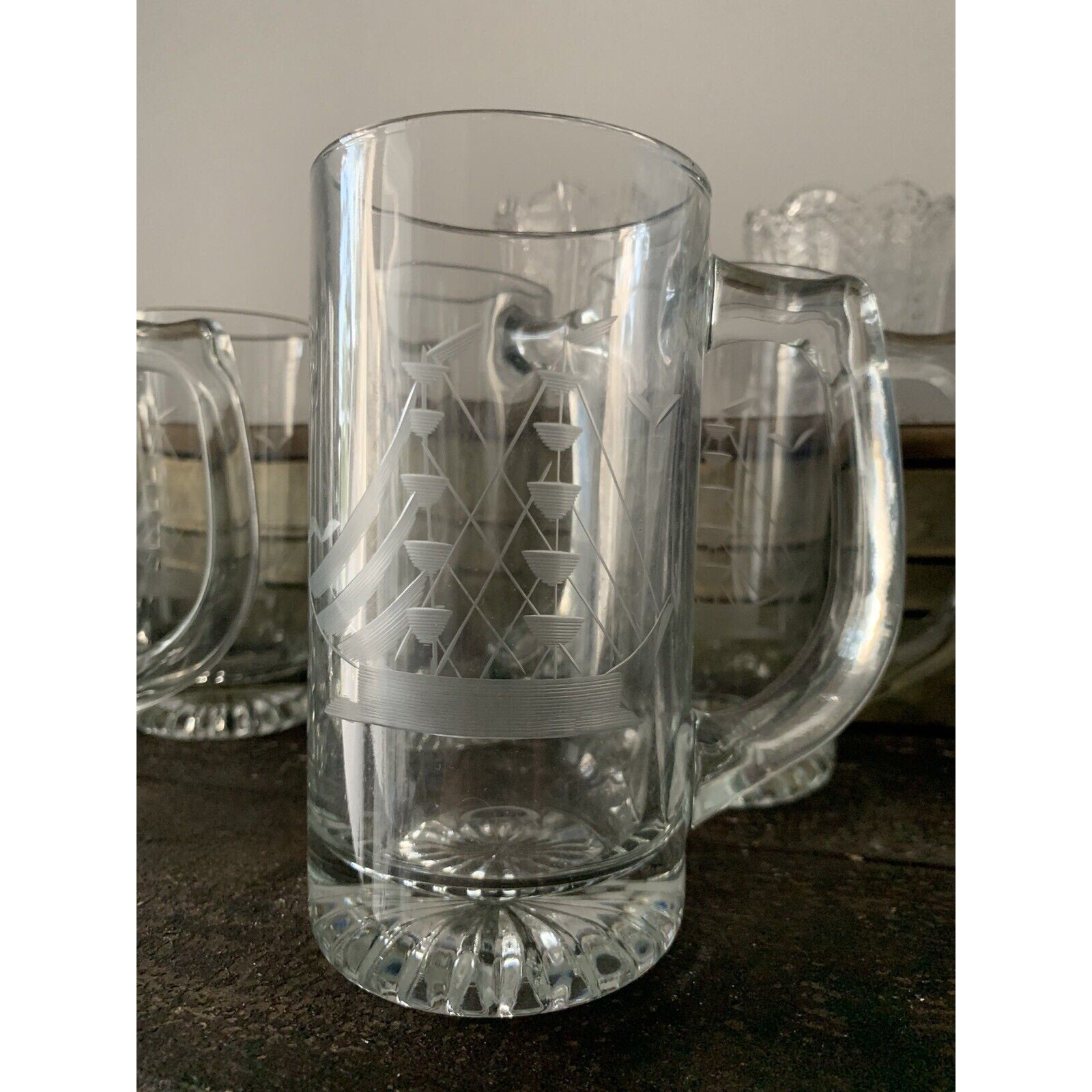 Add some elegance to your drinkware collection with these six Etched Nautical Ships Crystal Mugs. Made in the USA, these beer mugs feature beautiful etched patterns on clear crystal material, perfect for any nautical-themed party or event. These vintage mugs are dishwasher safe, making them easy to clean and maintain. The contemporary style and art glass production make these mugs a great addition to any home bar or collection. Get your hands on these original mugs today!