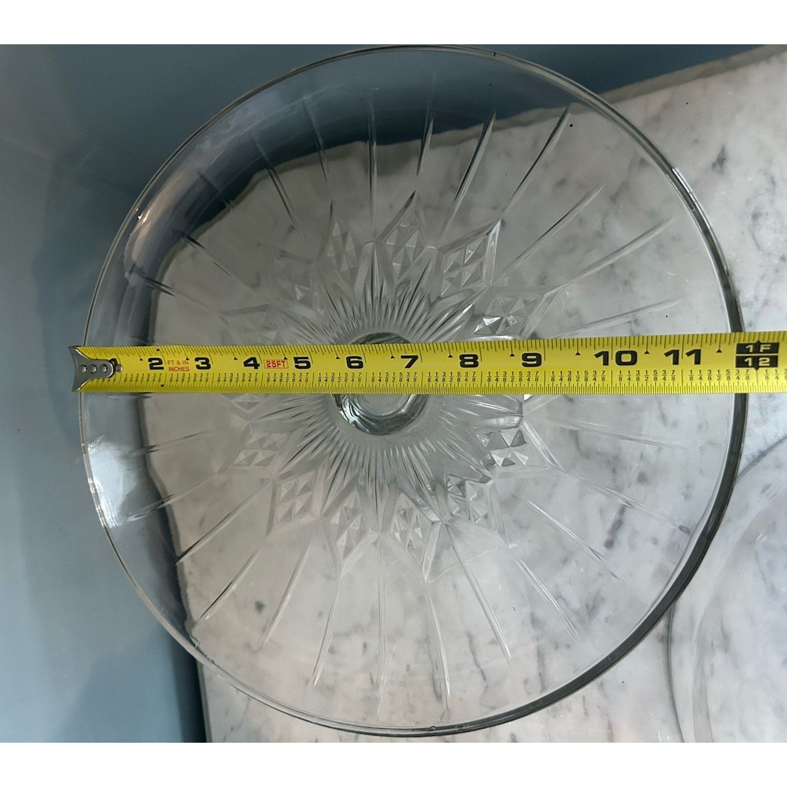 Elevate your cake presentation with the Anchor Hocking Canfield 2-piece footed cake set. Crafted from heavy-duty, transparent glass, this set showcases your cakes in a stunning starburst pattern that's perfect for any occasion. Each piece measures 12 inches in diameter and stands 12 inches tall, offering a solid and stable platform for your culinary creations.