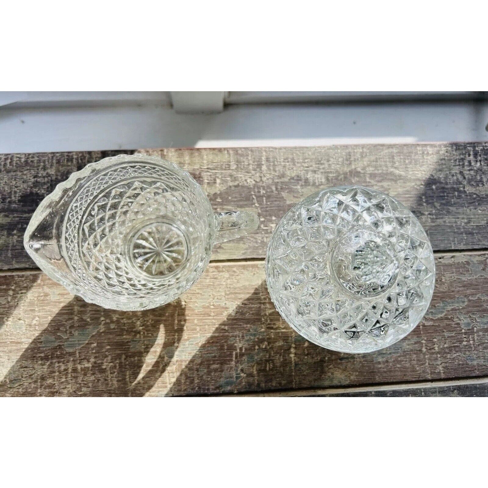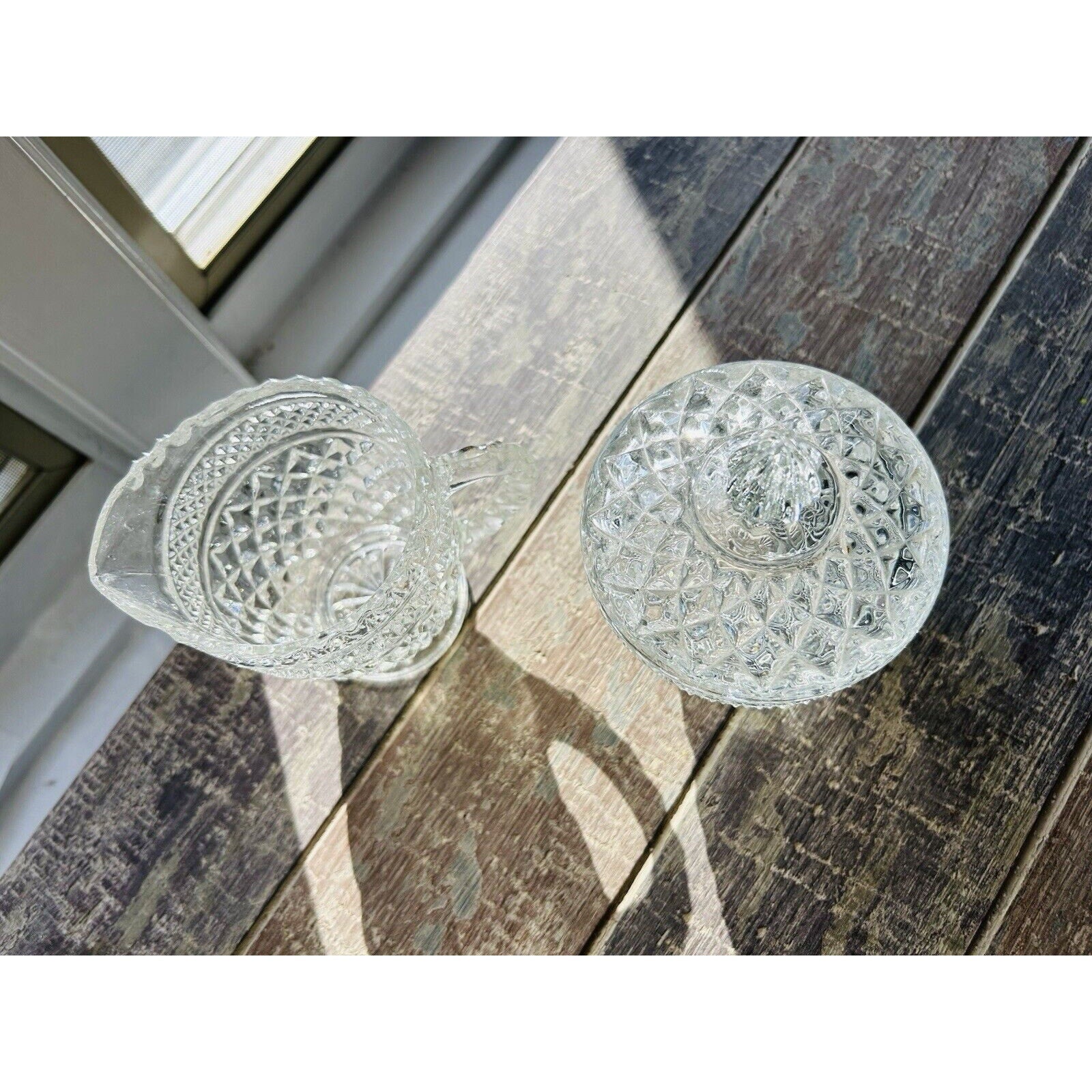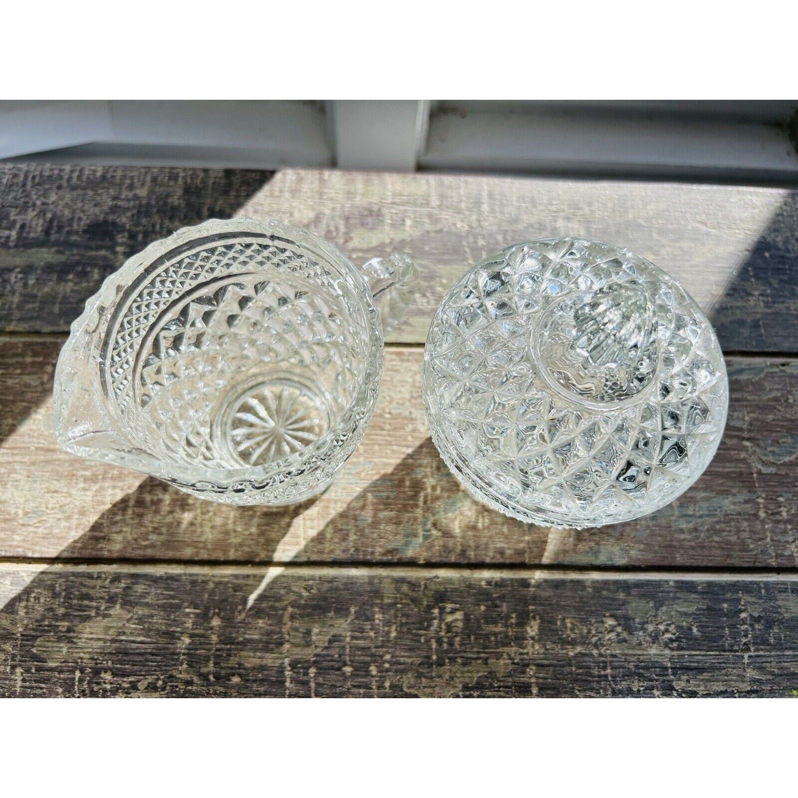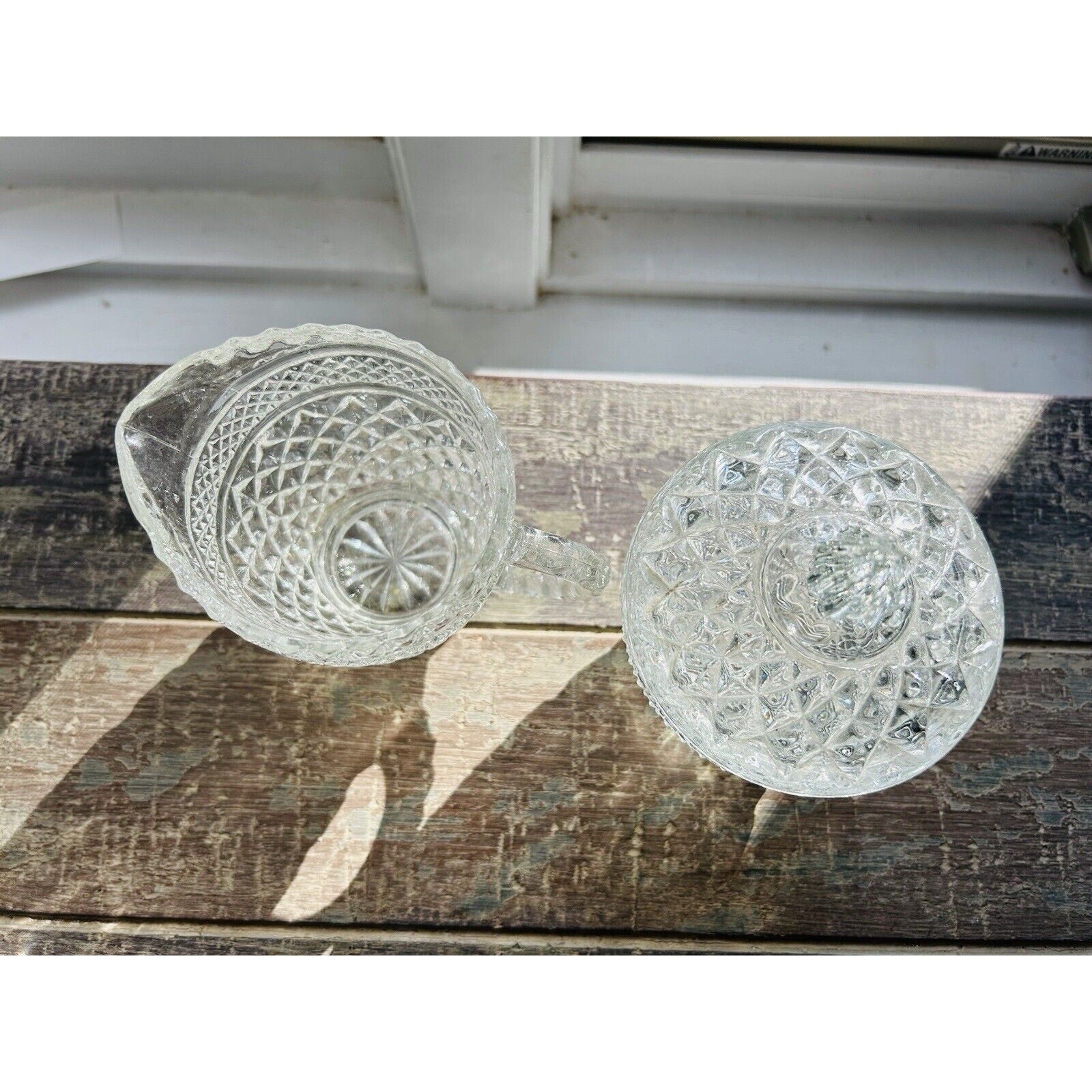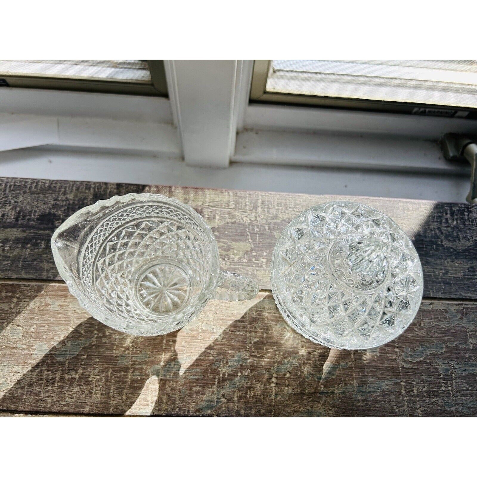 Anchor Hocking Wexford Crystal Clear Cut Glass Cream & Sugar Set Vintage