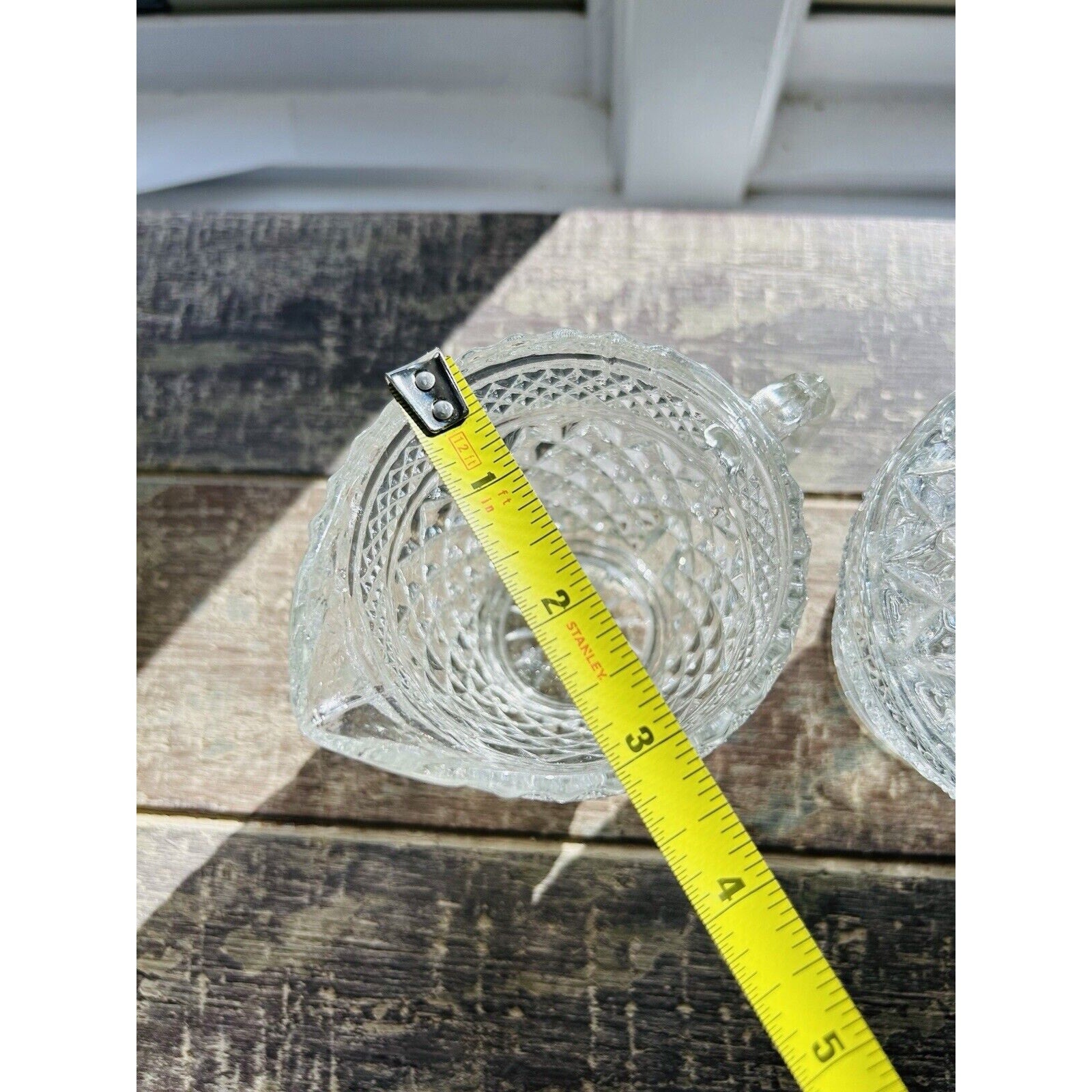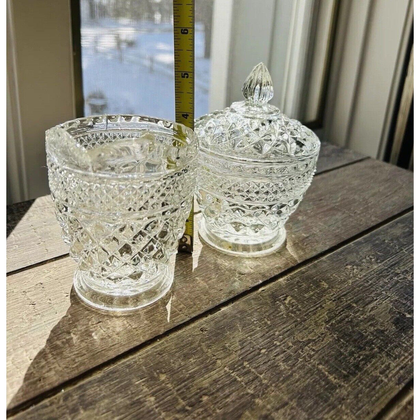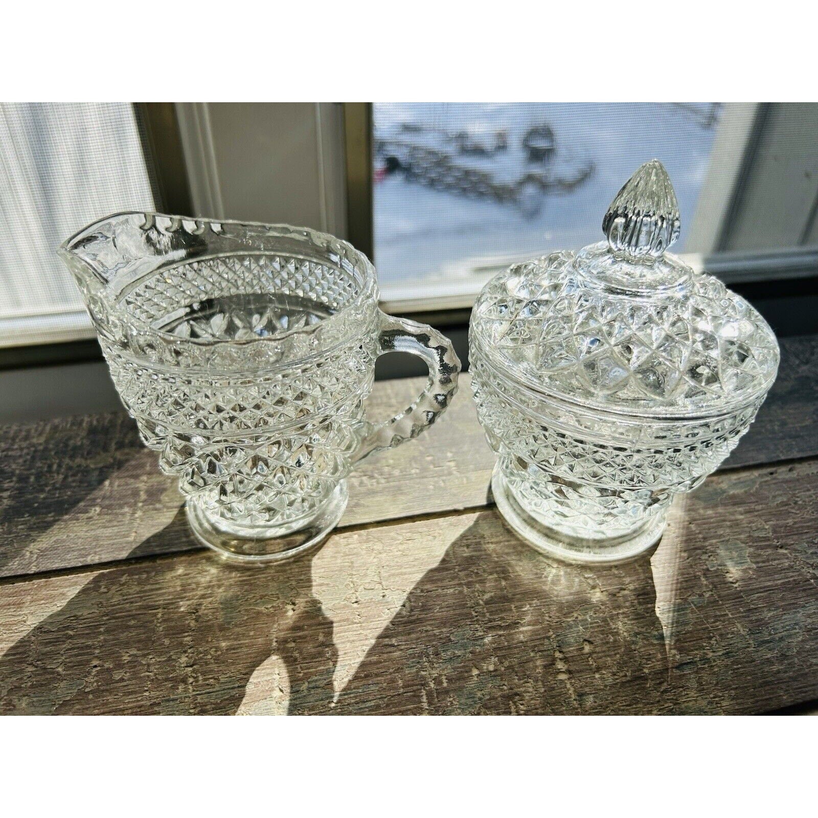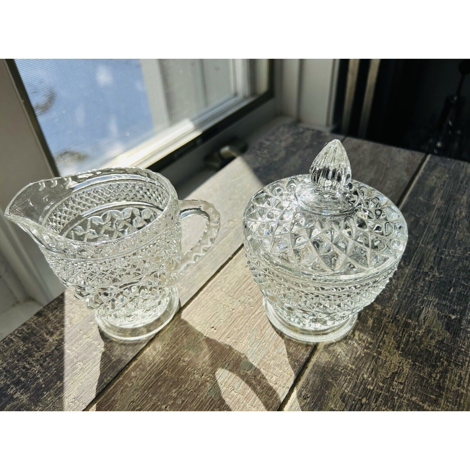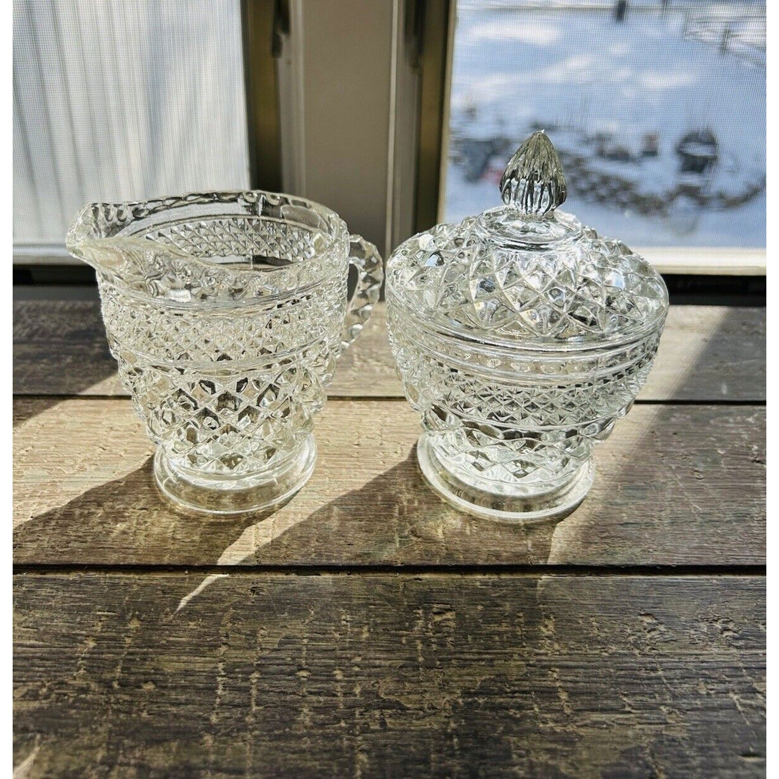 Anchor Hocking Wexford Crystal Clear Cut Glass Cream & Sugar Set Vintage
