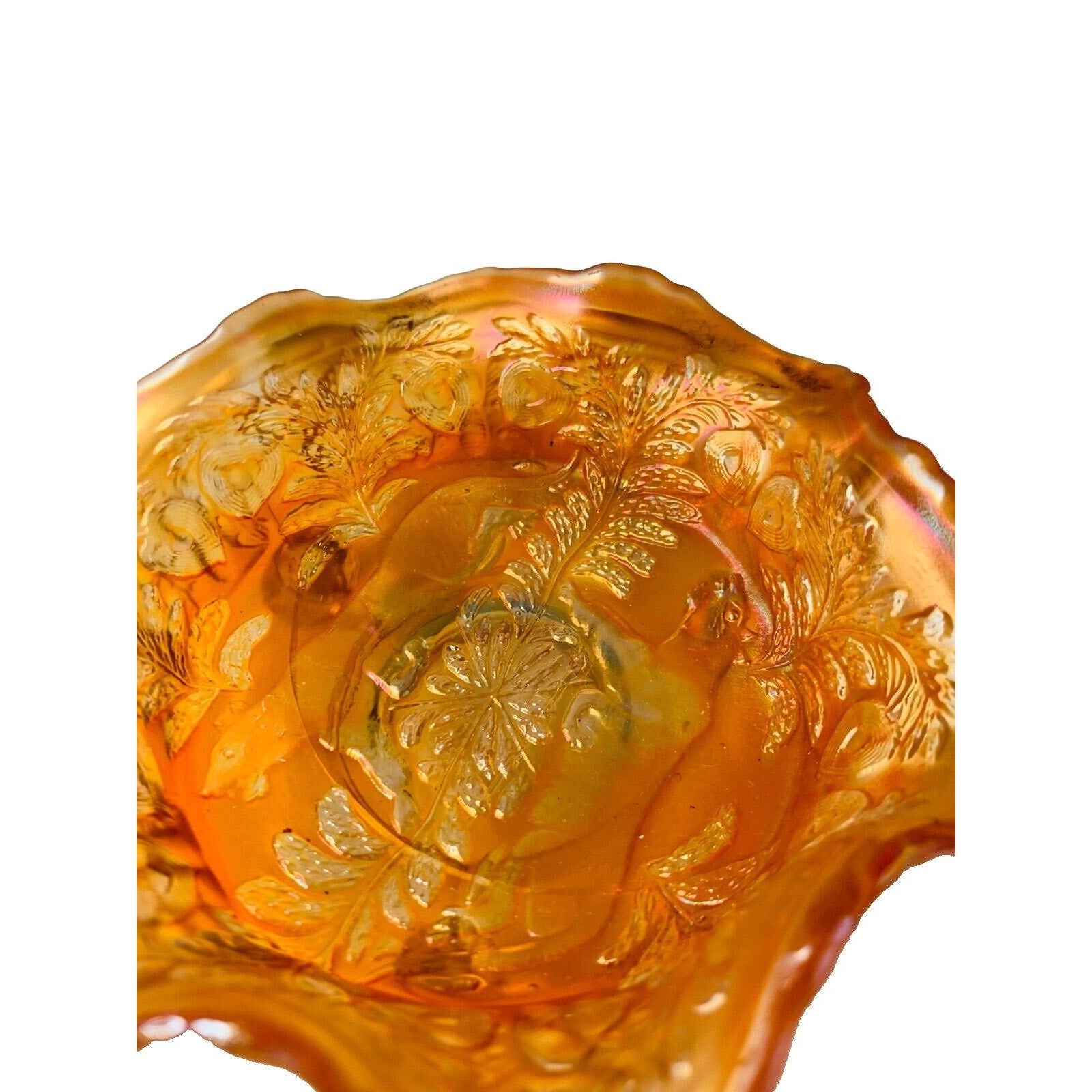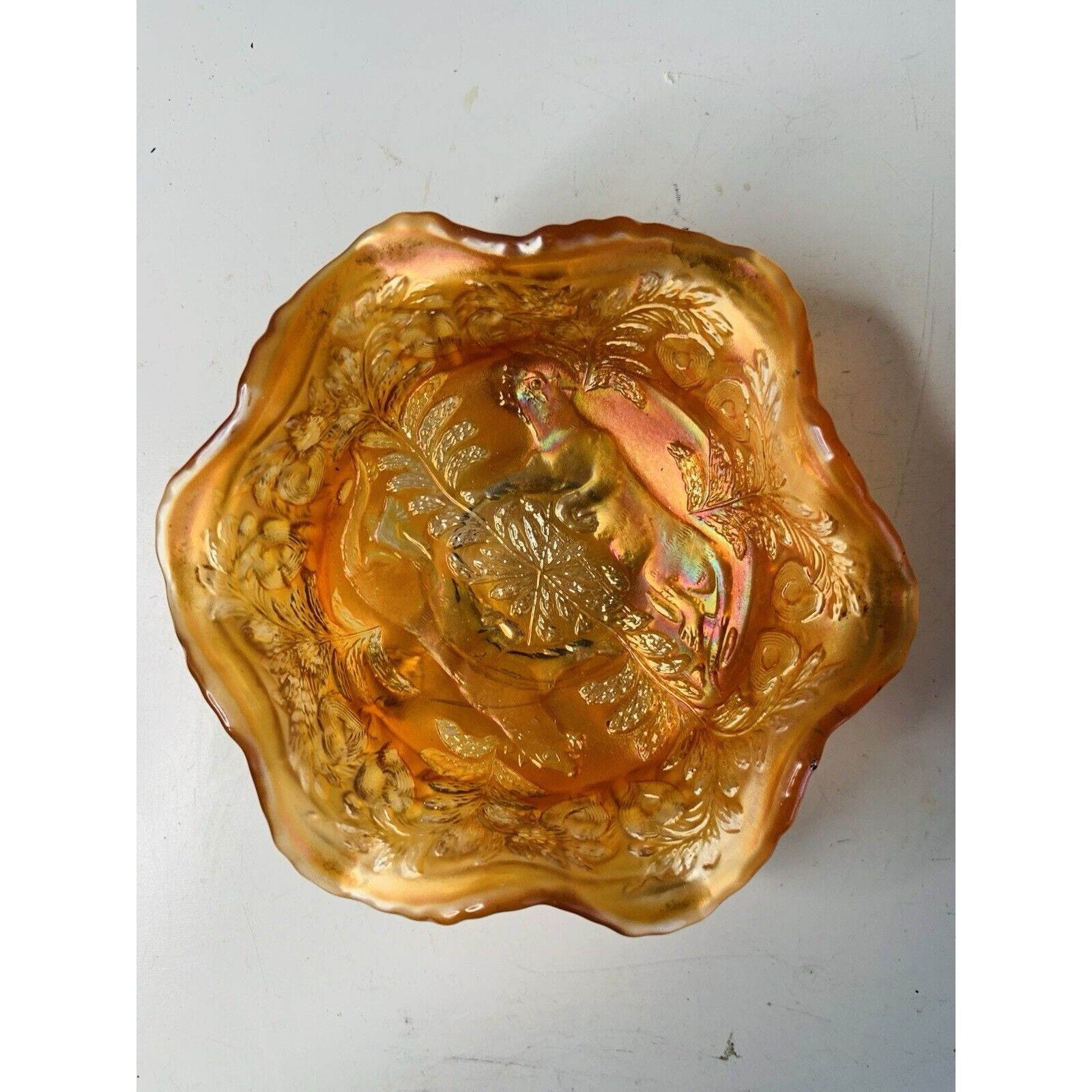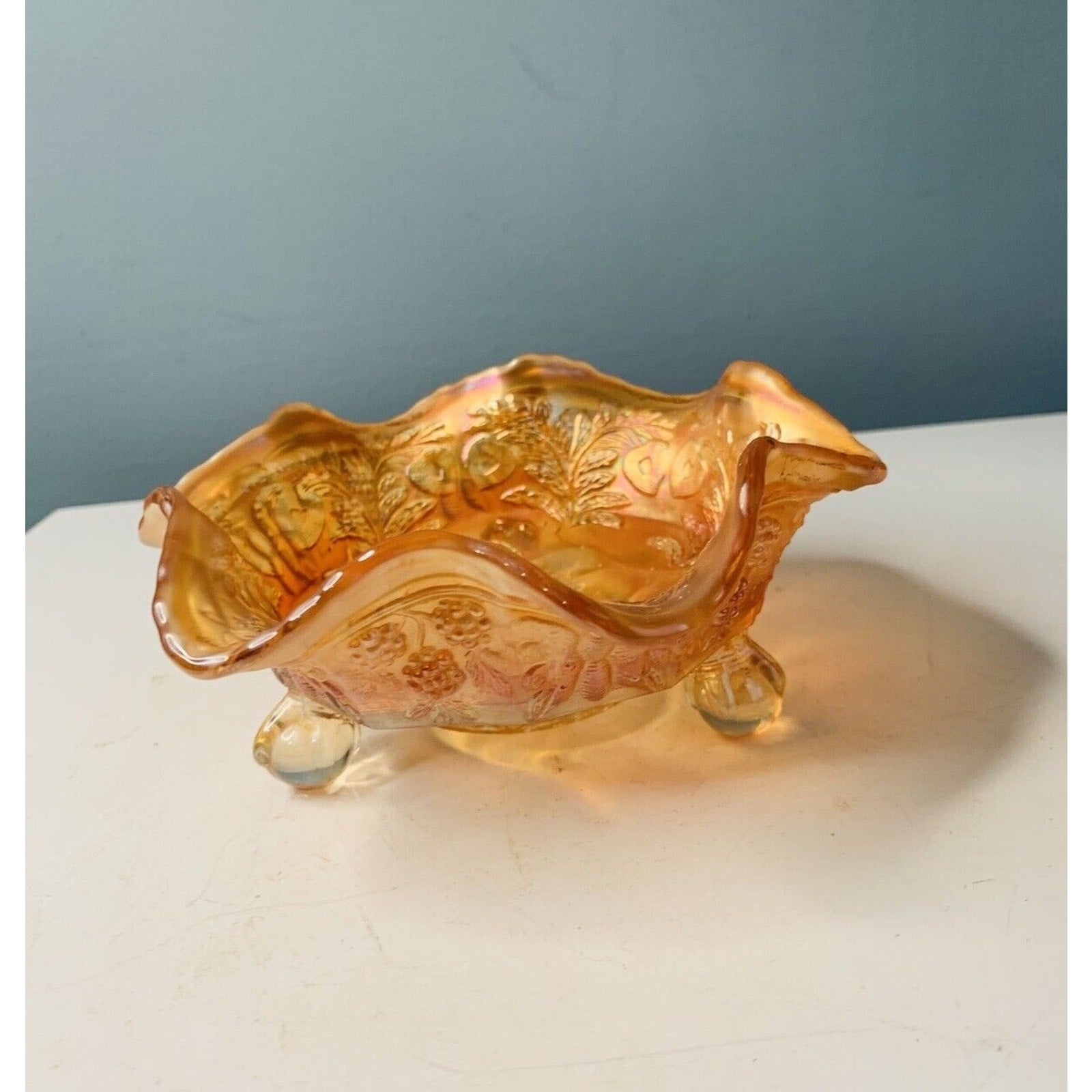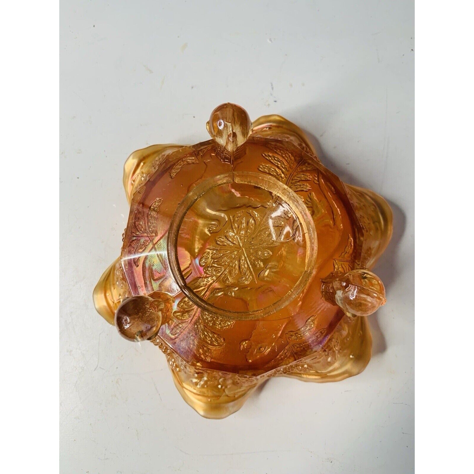 Antique Carnival Glass Fenton Panthers Marigold Ruffled Berry Bowl 1914 3-Footed