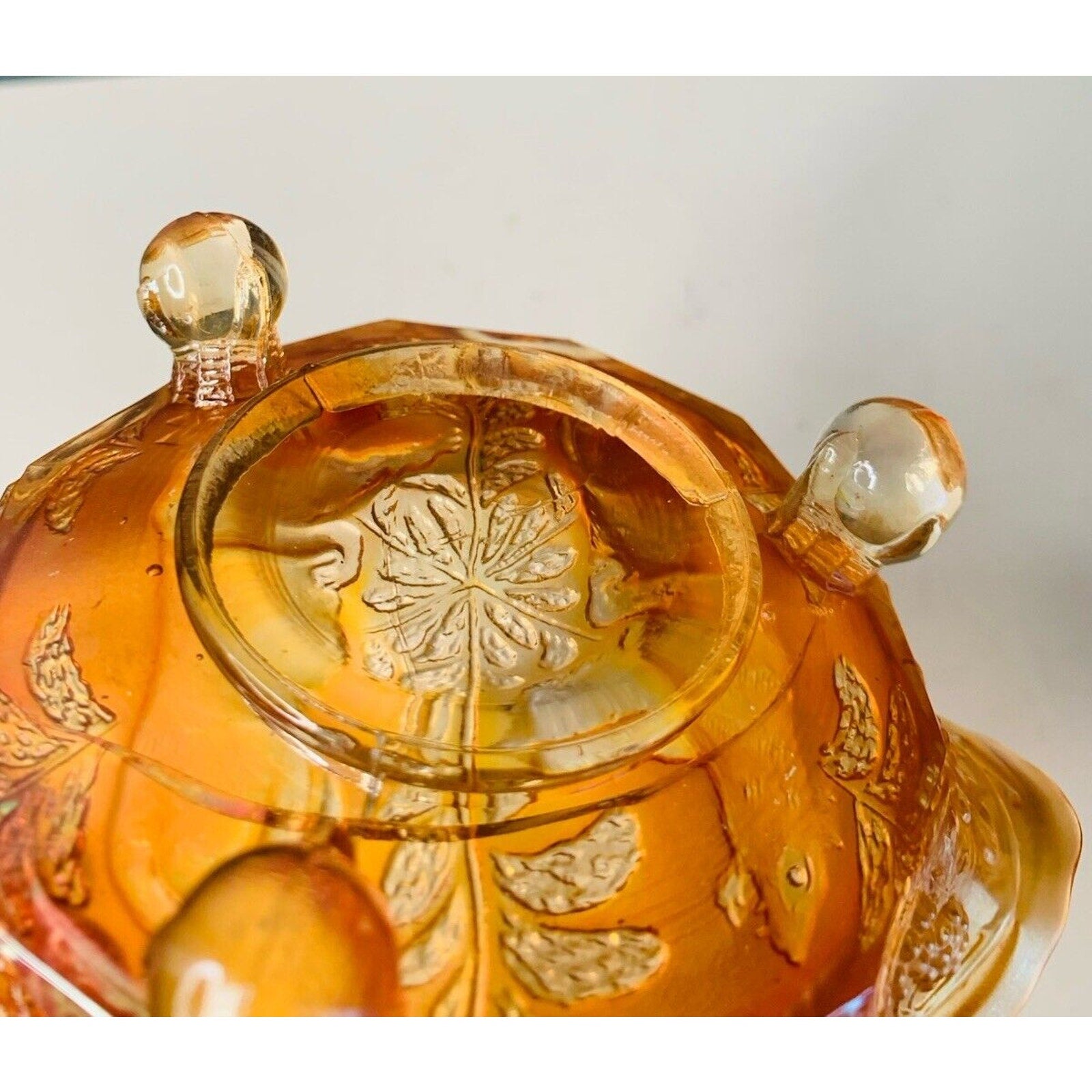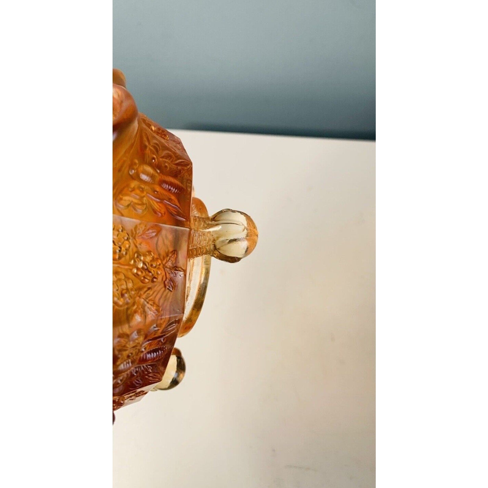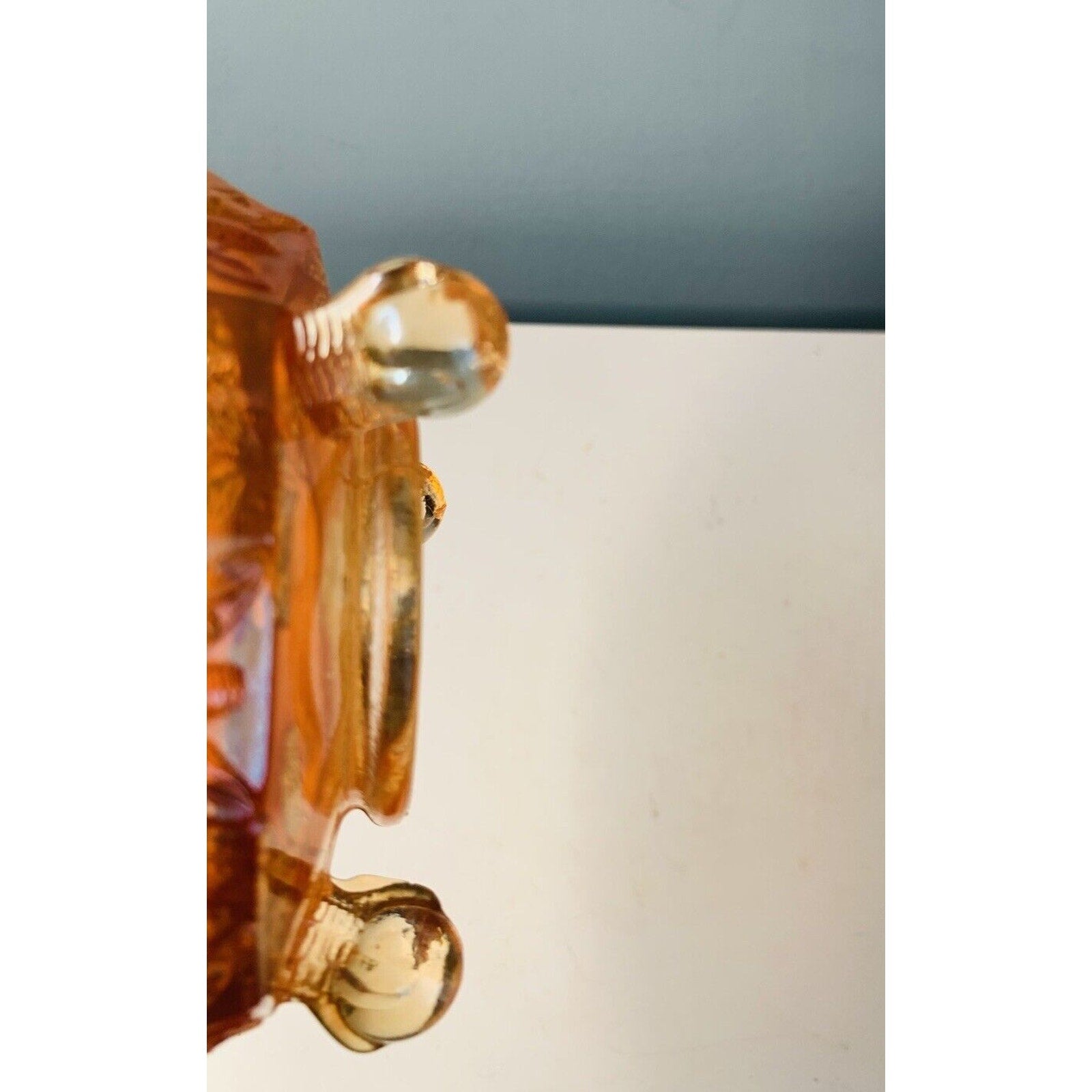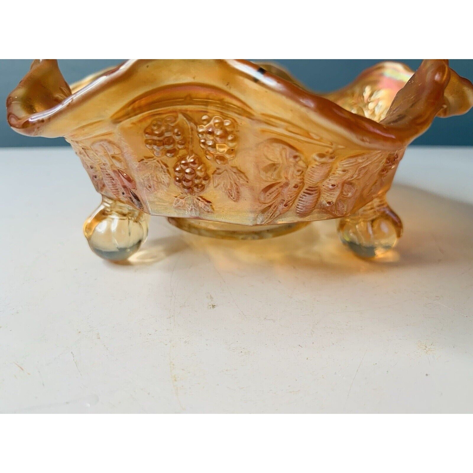 Antique Carnival Glass Fenton Panthers Marigold Ruffled Berry Bowl 1914 3-Footed