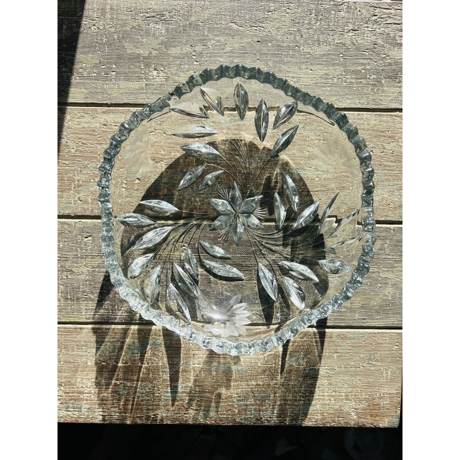 Antique Edwardian Crystal Etched Clear Cut Glass Bowl Dish Flowers 1900 - 1910s