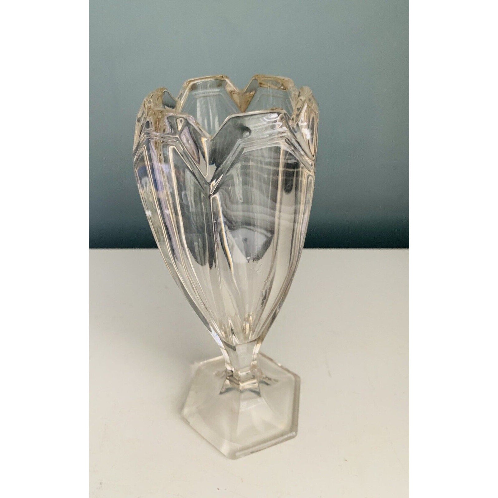 Antique Fostoria Glass Alexis Vase Art Deco Design 9.5” Tall Heavy Home Decor