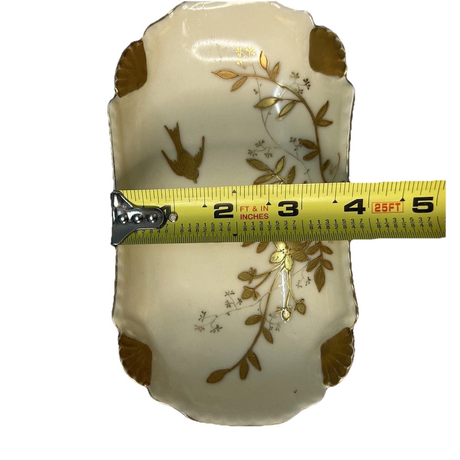 Antique Haviland Limoges France Rectangular White Gold Tray Bird Shells 1889. Condition is Used. Shipped with USPS Ground Advantage.