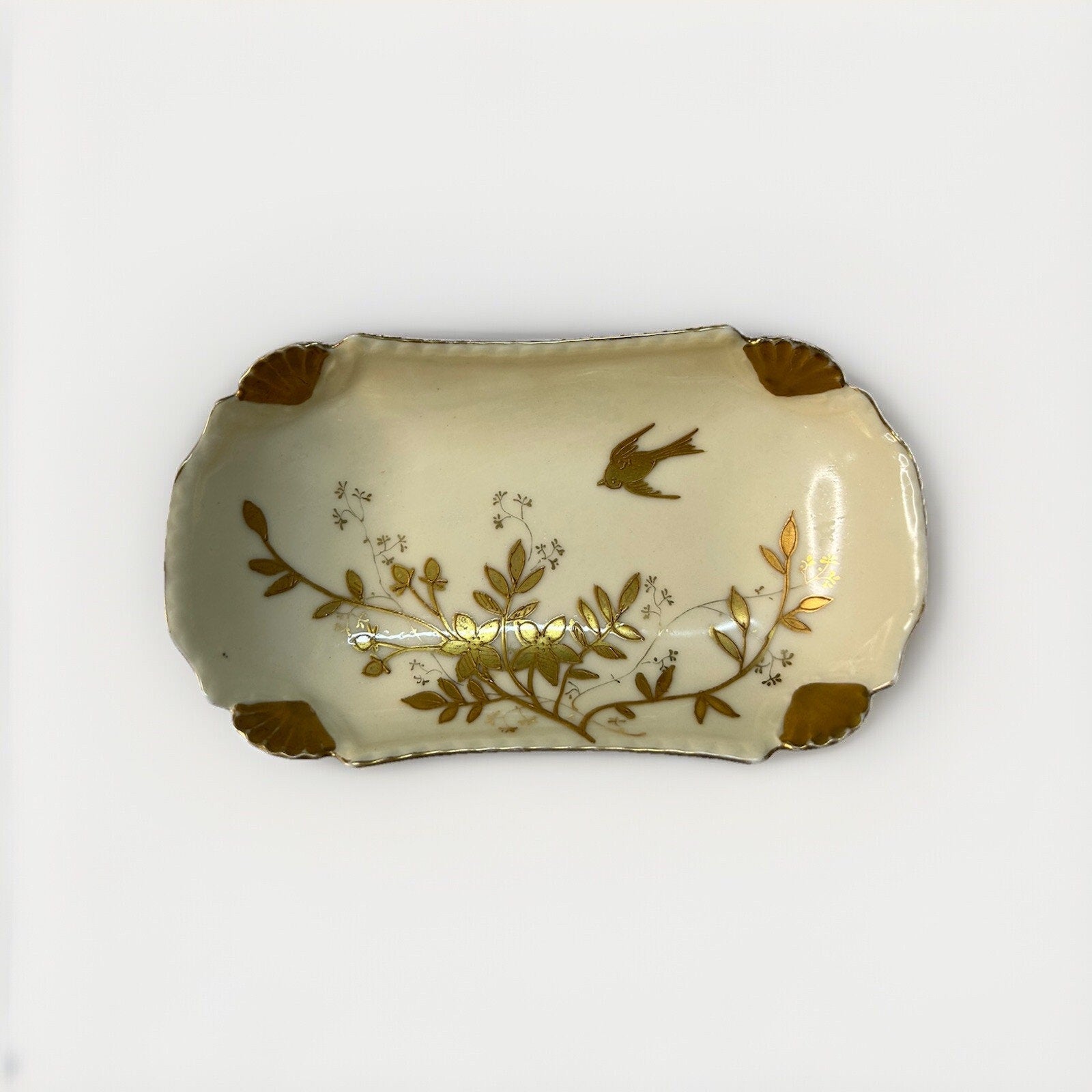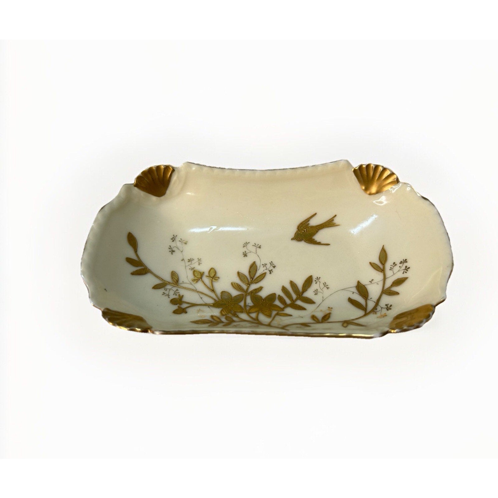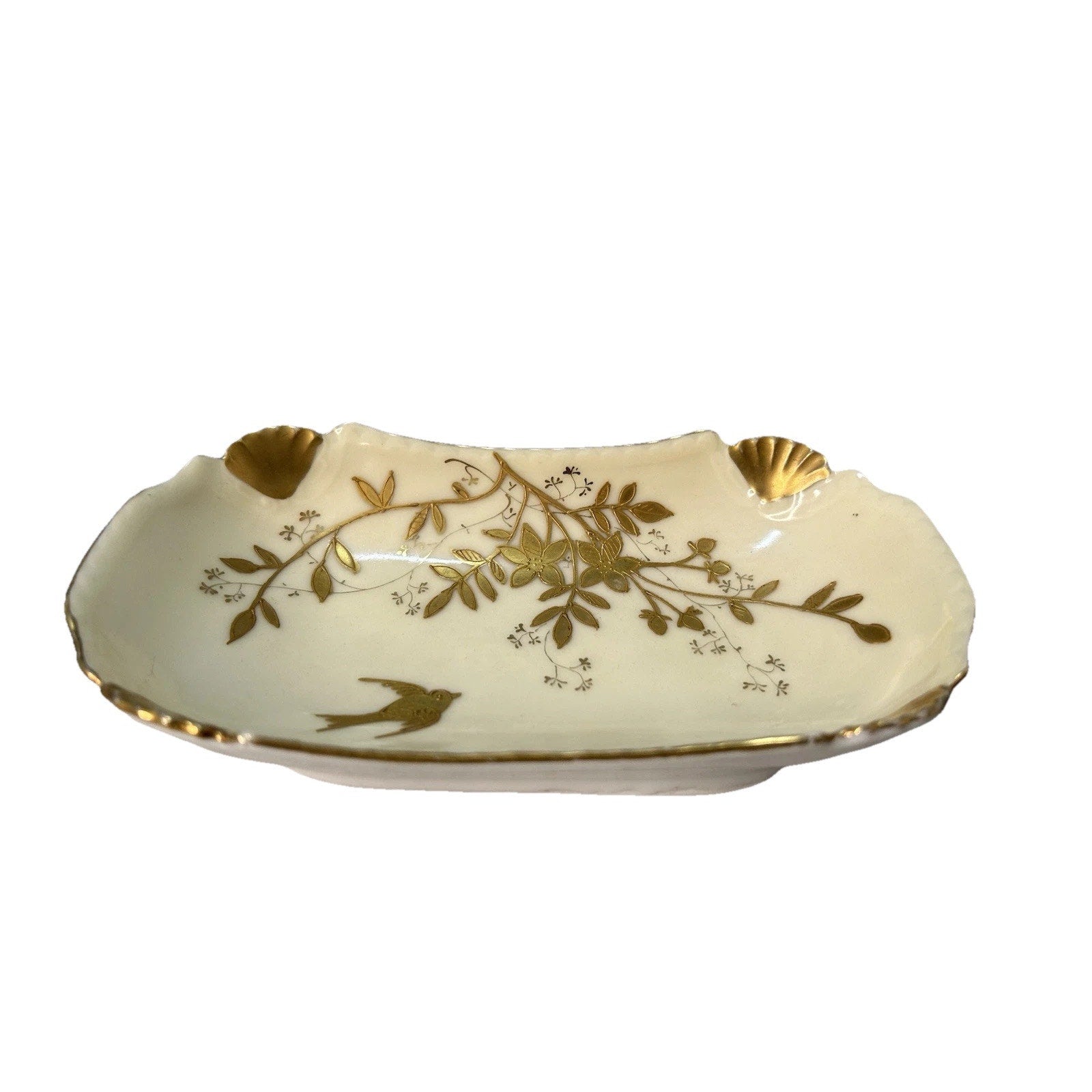 Antique Haviland Limoges France Rectangular White Gold Tray Bird Shells 1889