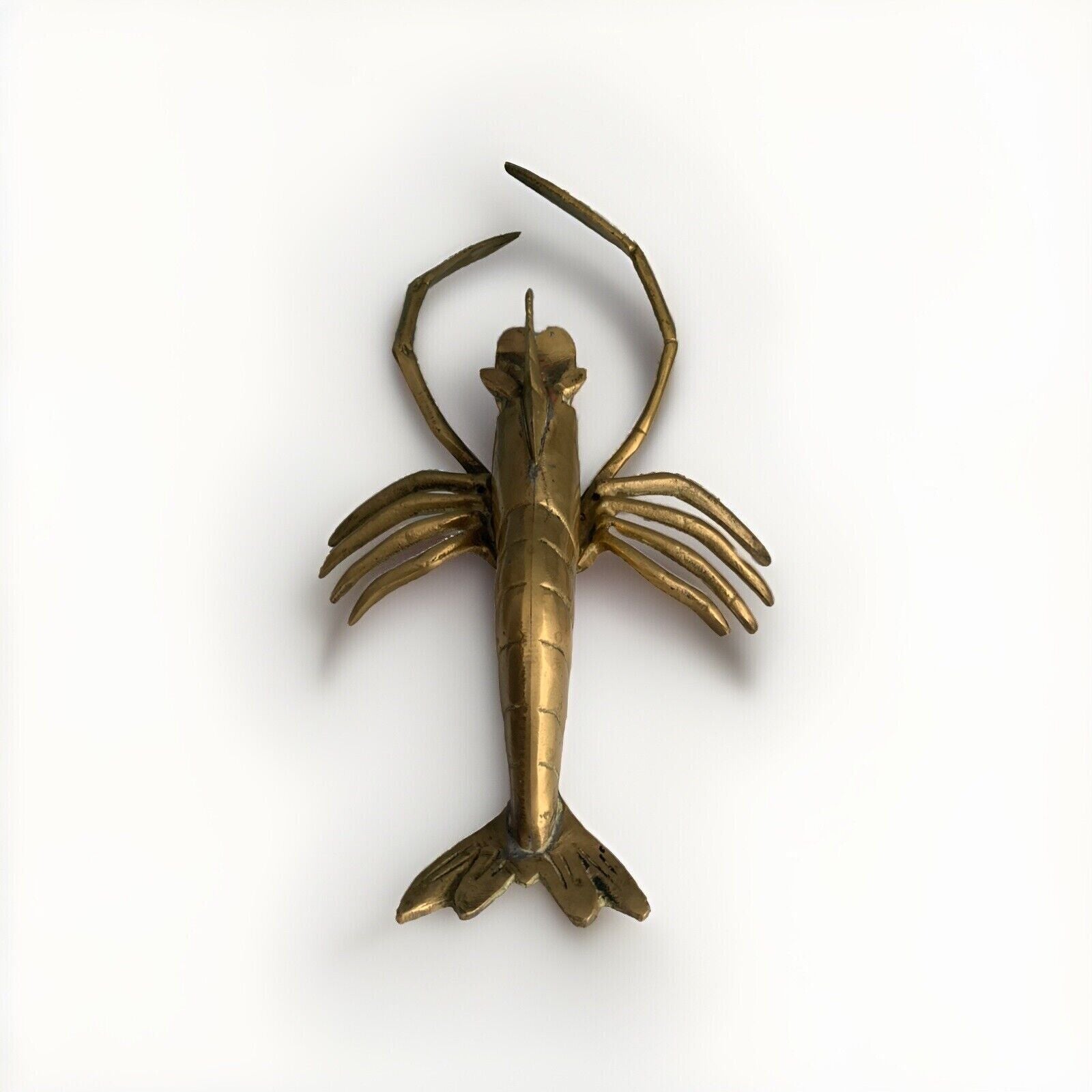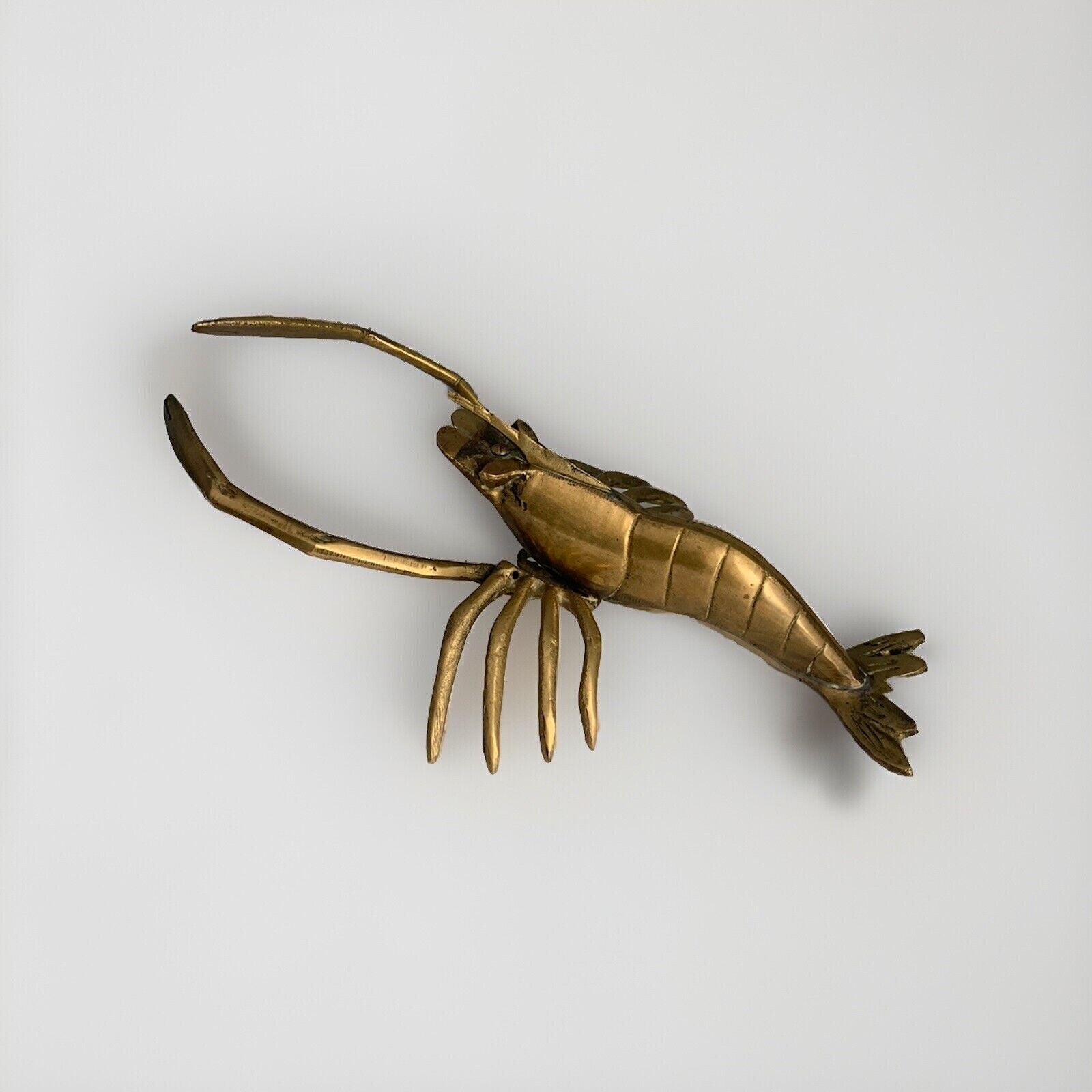 This vintage brass figure is a beautiful addition to any collection. Crafted with intricate details, it features a crawfish, crawdad, and shrimp prawn design that is sure to catch the eye of anyone who sees it. Made from high-quality brass, this piece is built to last and will make a great gift for anyone who loves unique and unusual items. The gold accents add a touch of elegance, making it a perfect fit for any MCM decor.
