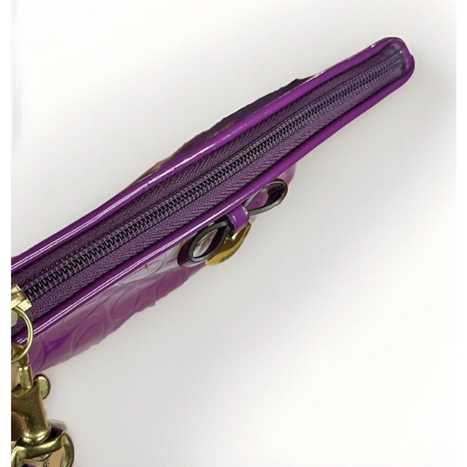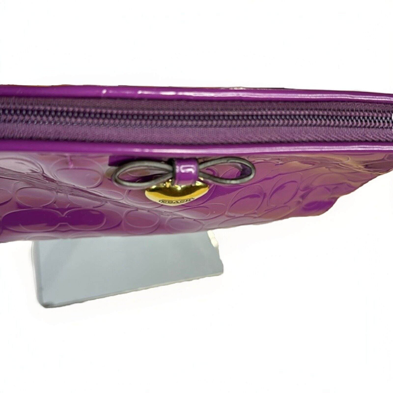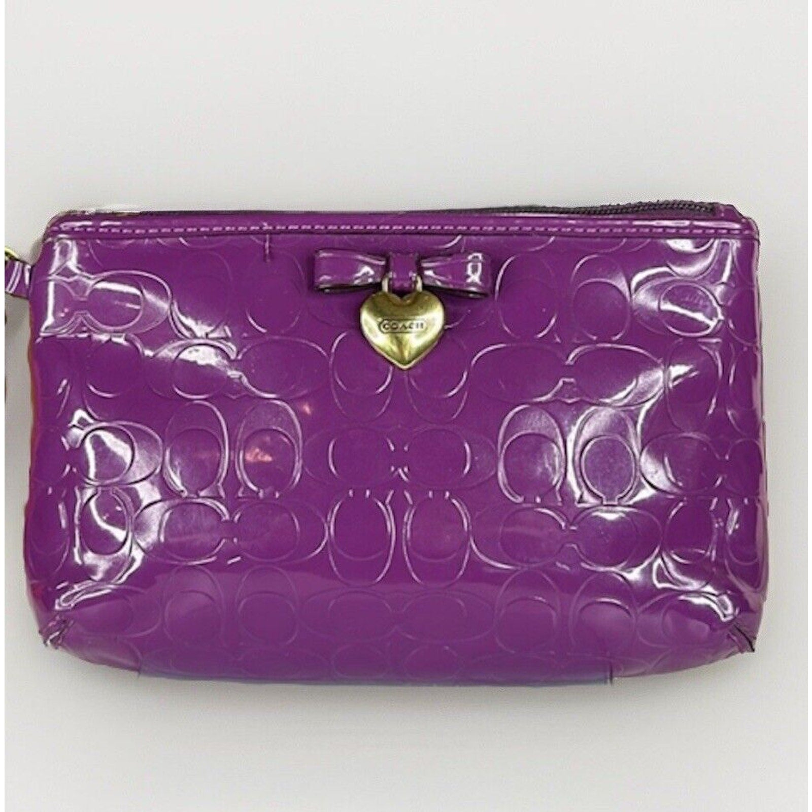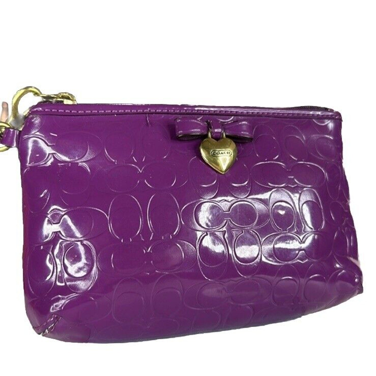 Coach Purple Wristlet Wallet Embossed Clutch Glossy Patent Leather EUC Heart