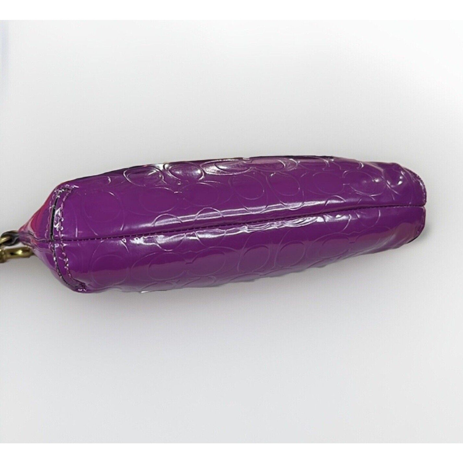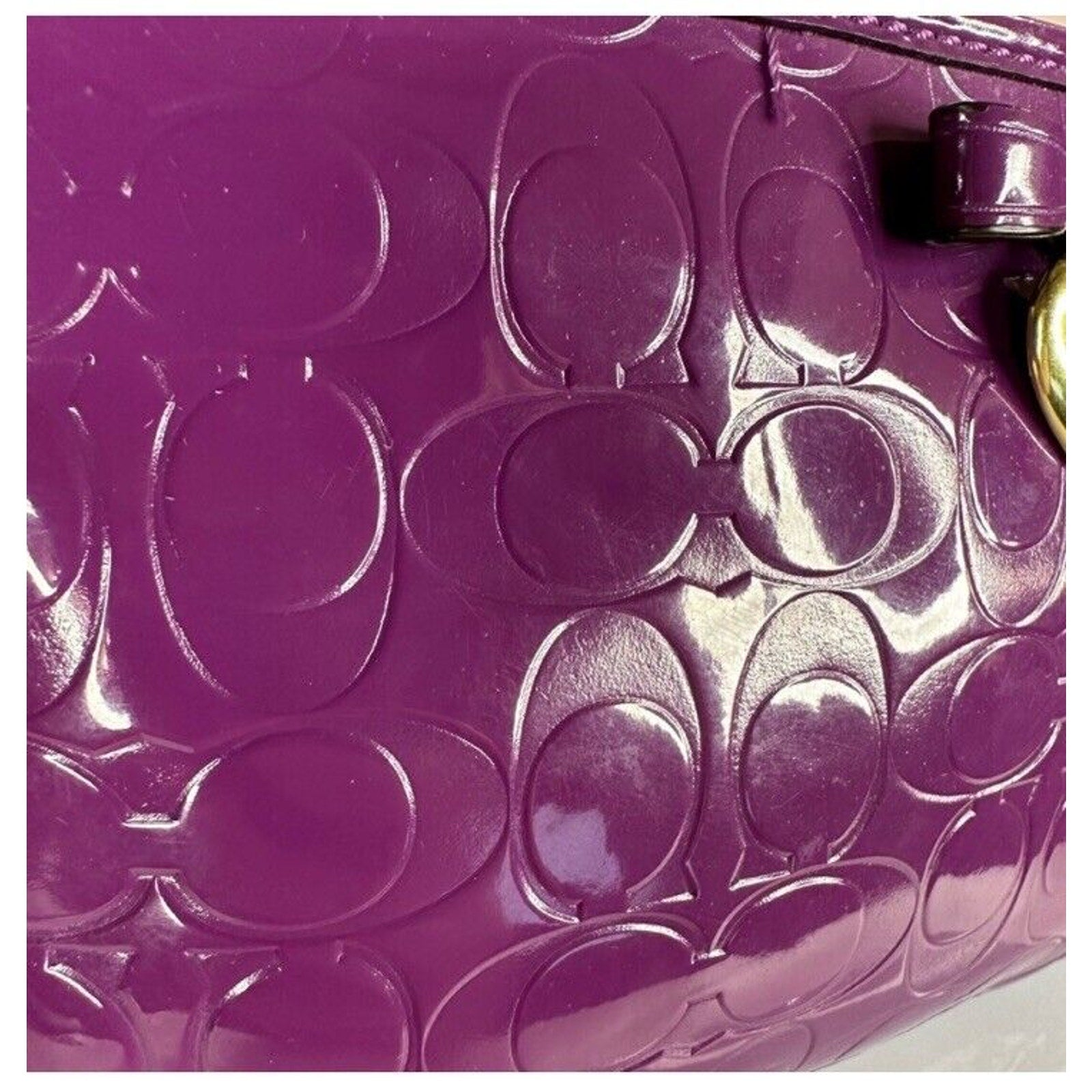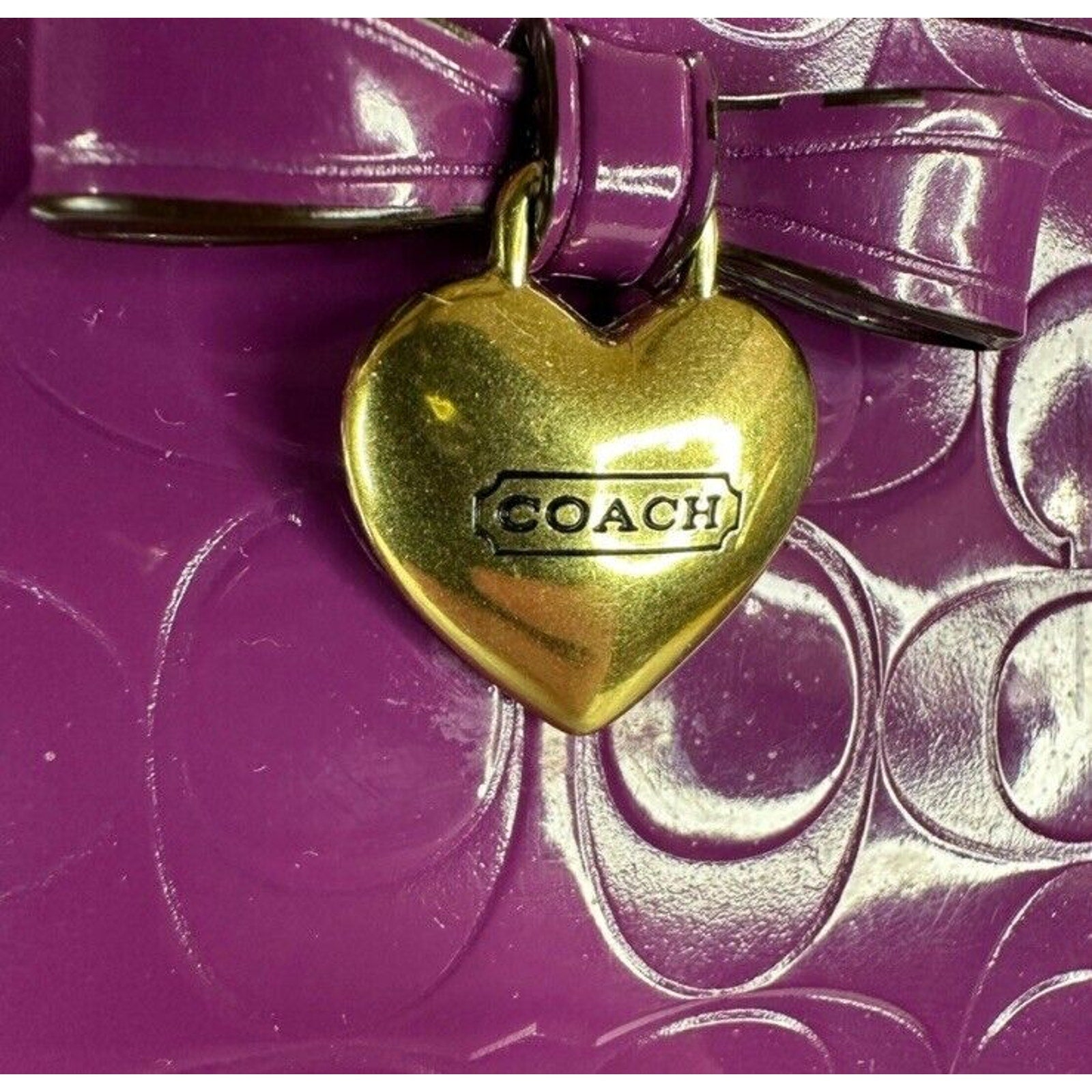 Coach Purple Wristlet Wallet Embossed Clutch Glossy Patent Leather EUC Heart
