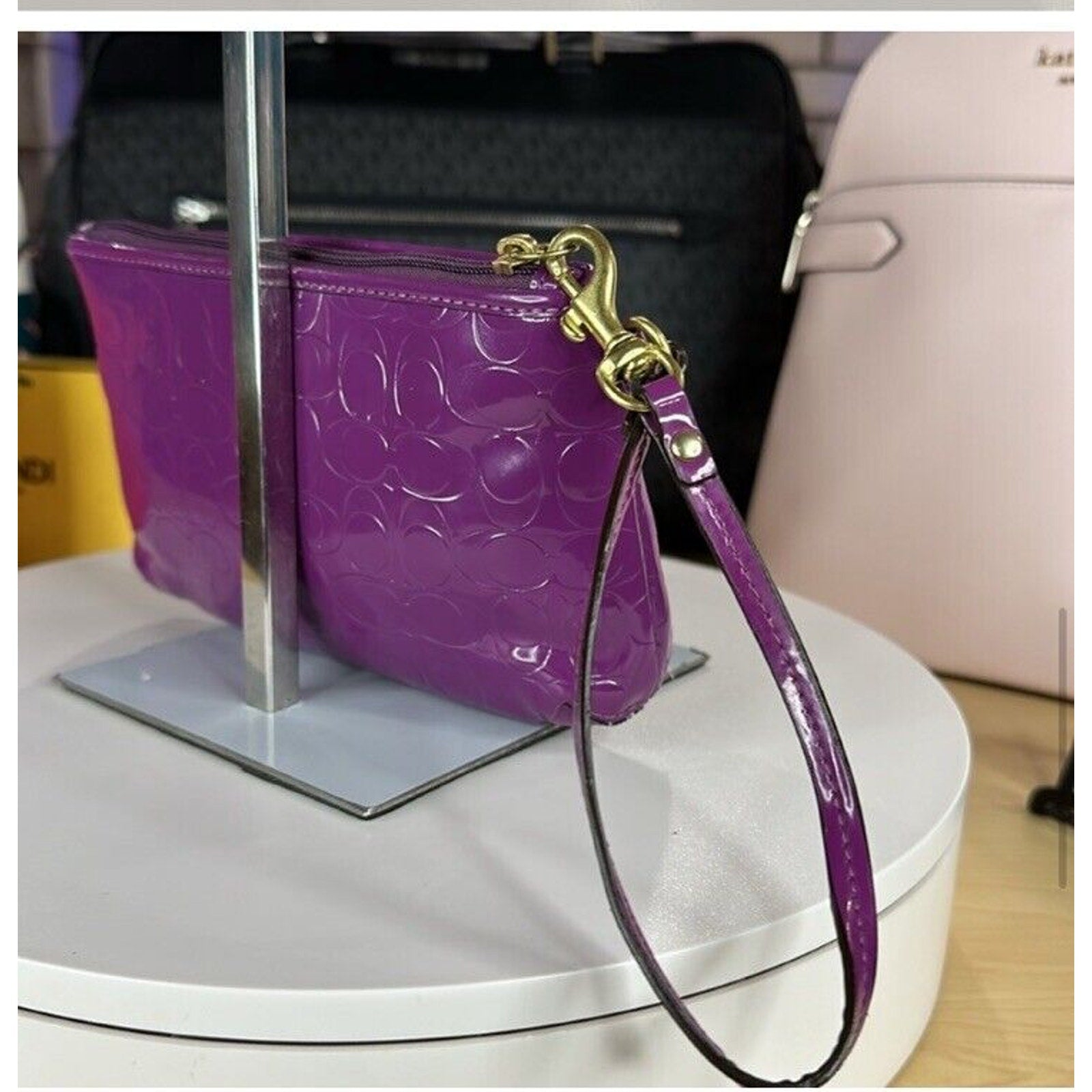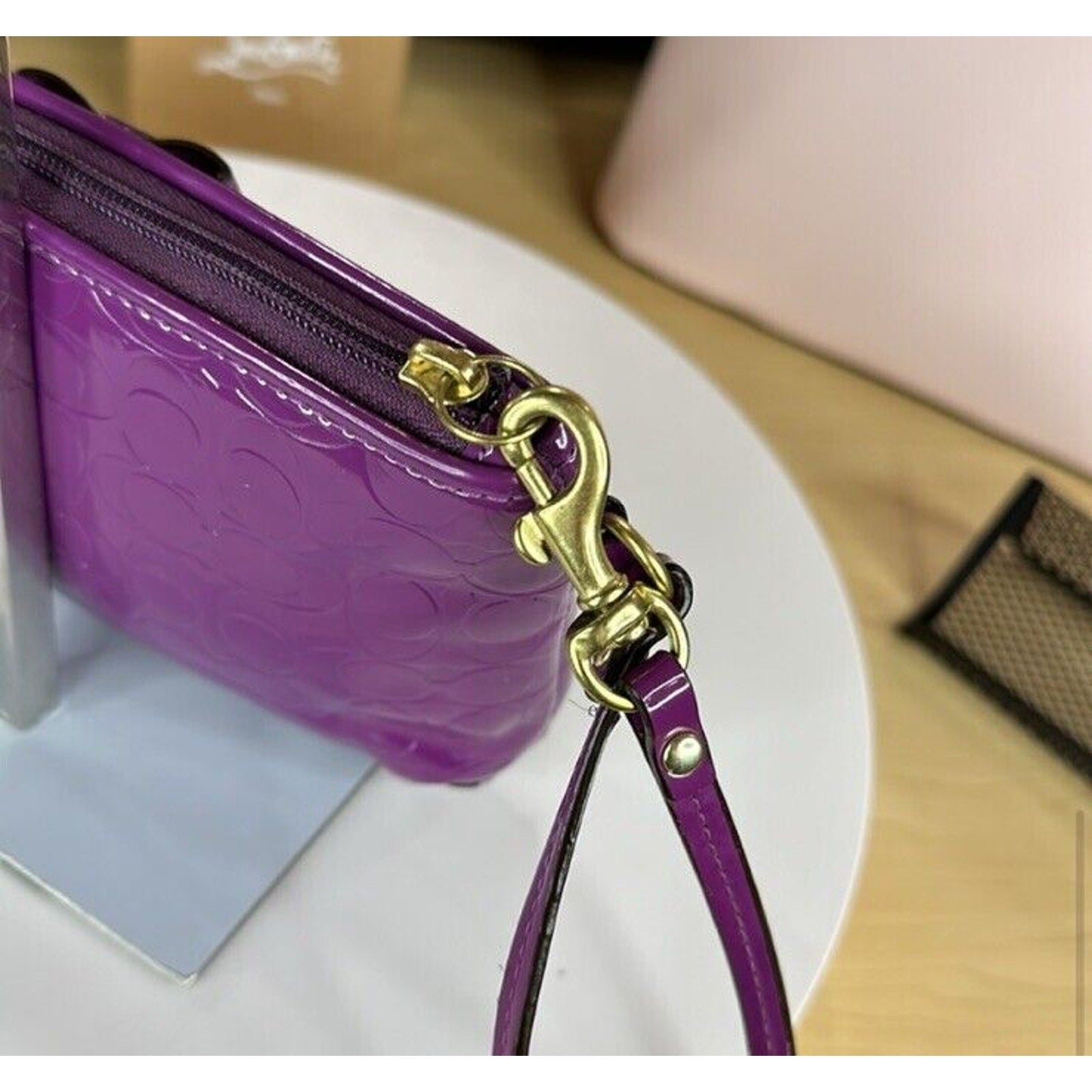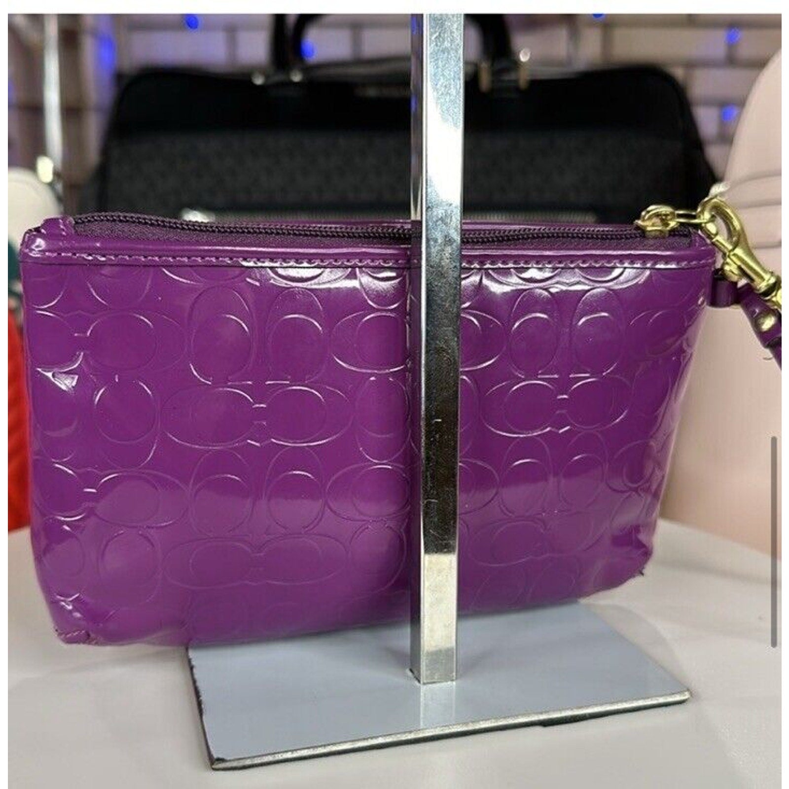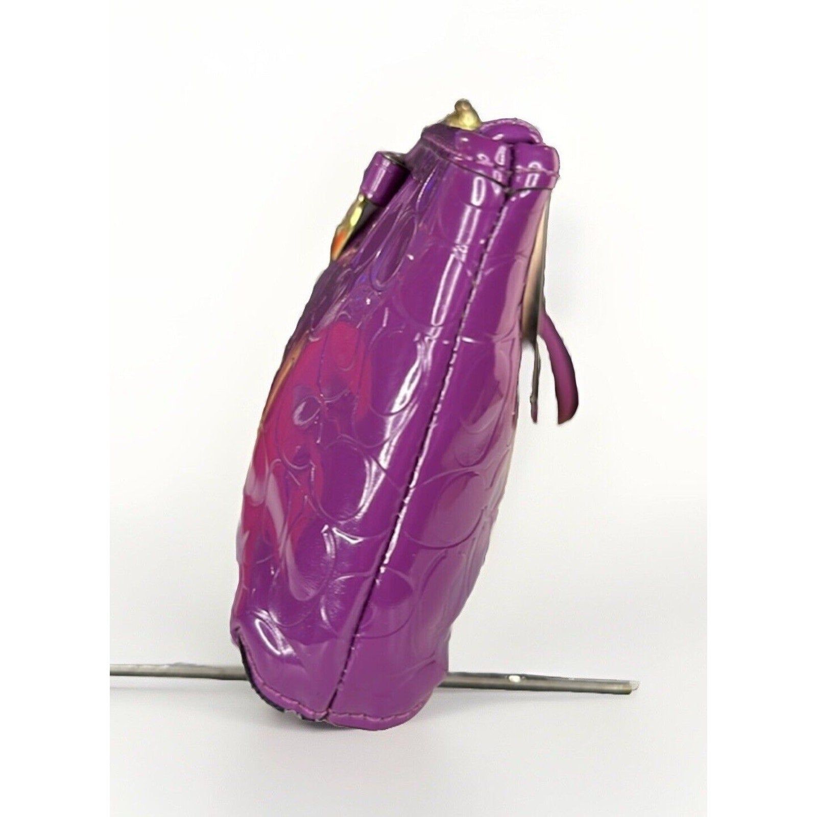 Coach Purple Wristlet Wallet Embossed Clutch Glossy Patent Leather EUC Heart