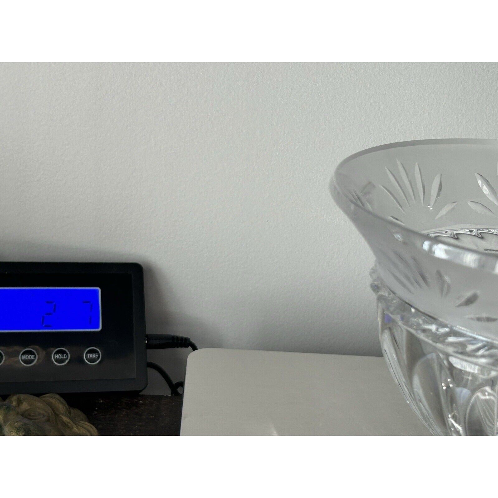 Excellent condition. No chips or cracks. A portion of the original sticker is there. Made in France sticker is still on bottom of dish. This is a vintage Cristal D'Arques crystal serving bowl from France. The bowl is 6" tall with a clear finish and frosted top, featuring an etched design. It has a bowl diameter of 6 3/4”. The item weighs 2 pounds and 7 ounces. This elegant piece is perfect for serving candy or other treats on all occasions.