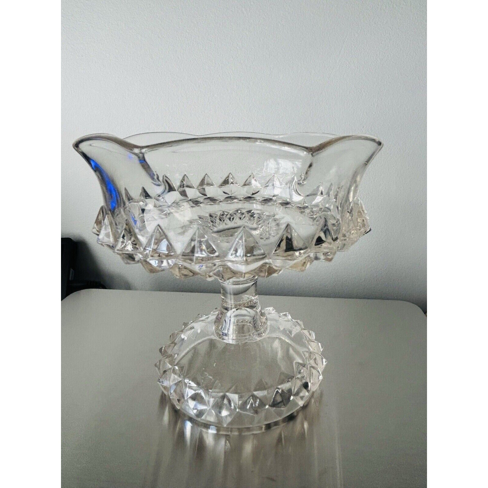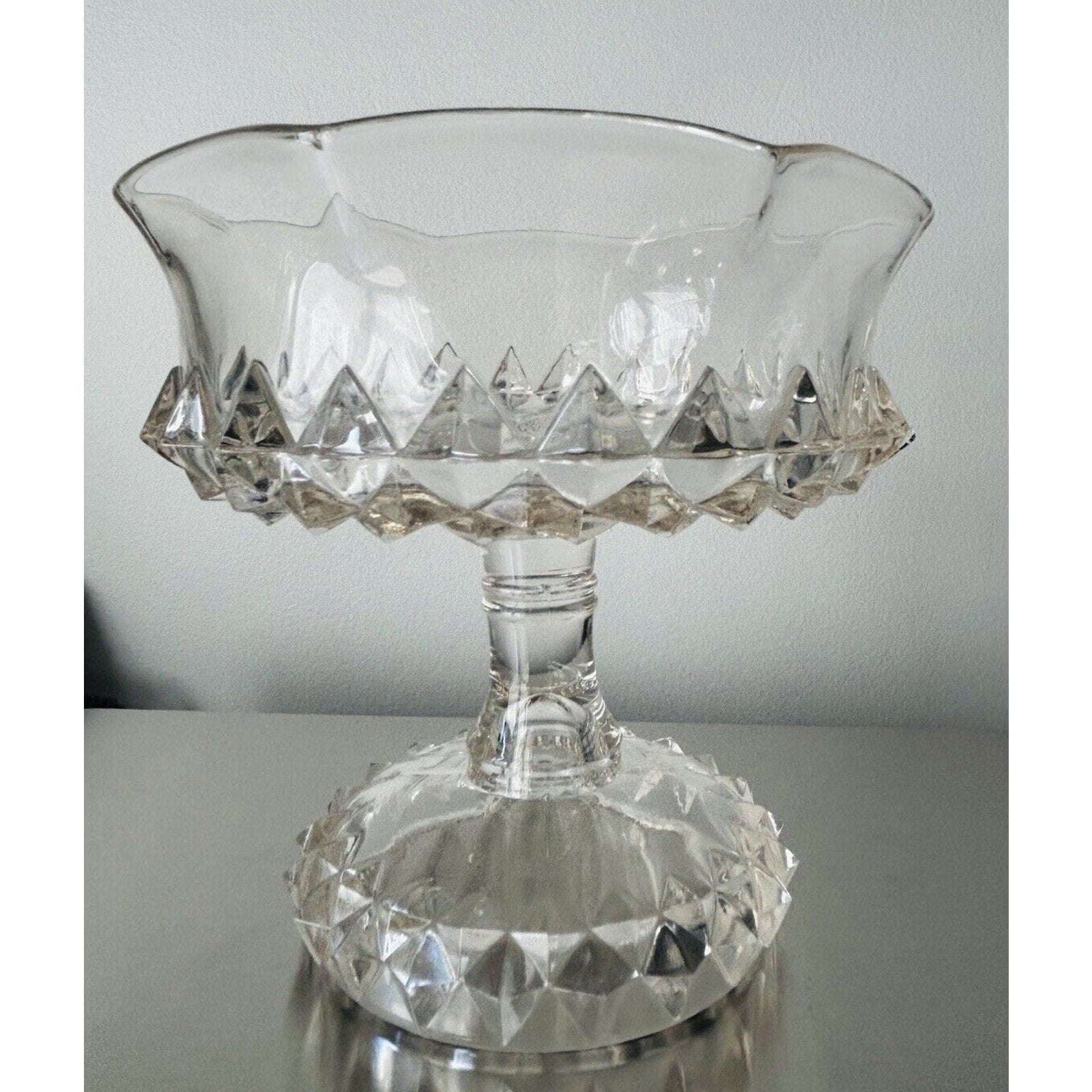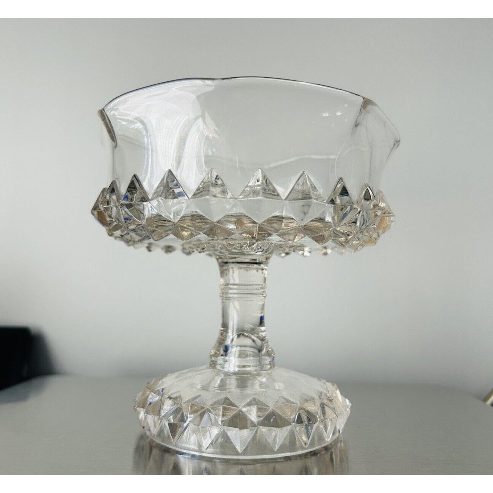 Excellent condition. No issues to note. This is an original Antique clear Glass footed compote with a scallop rim, made by Bryce Brothers in the United States during the late 19th century (1890's). The design features the Amazon Sawtooth pattern, typical of Early American Pattern Glass (EAPG) from that era.