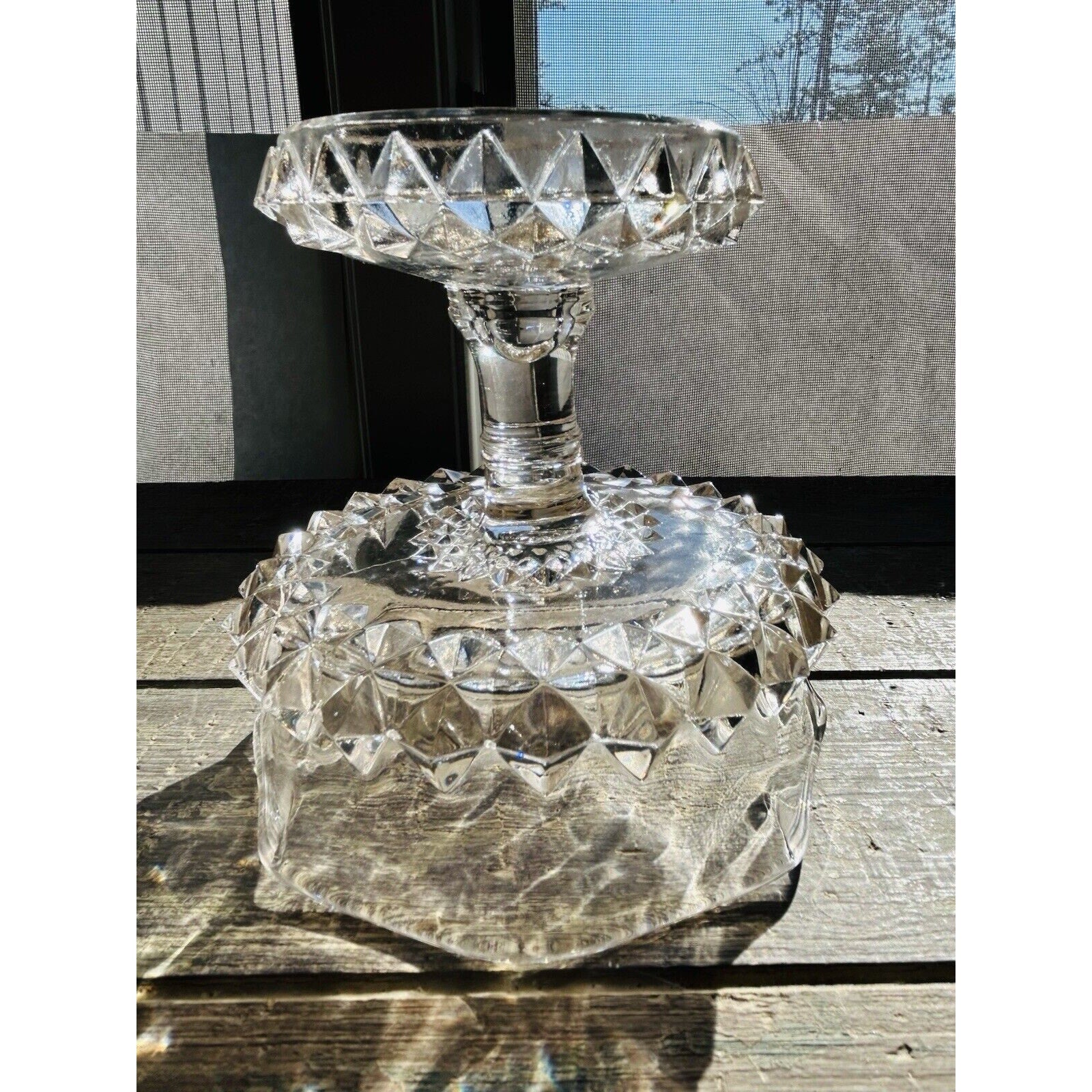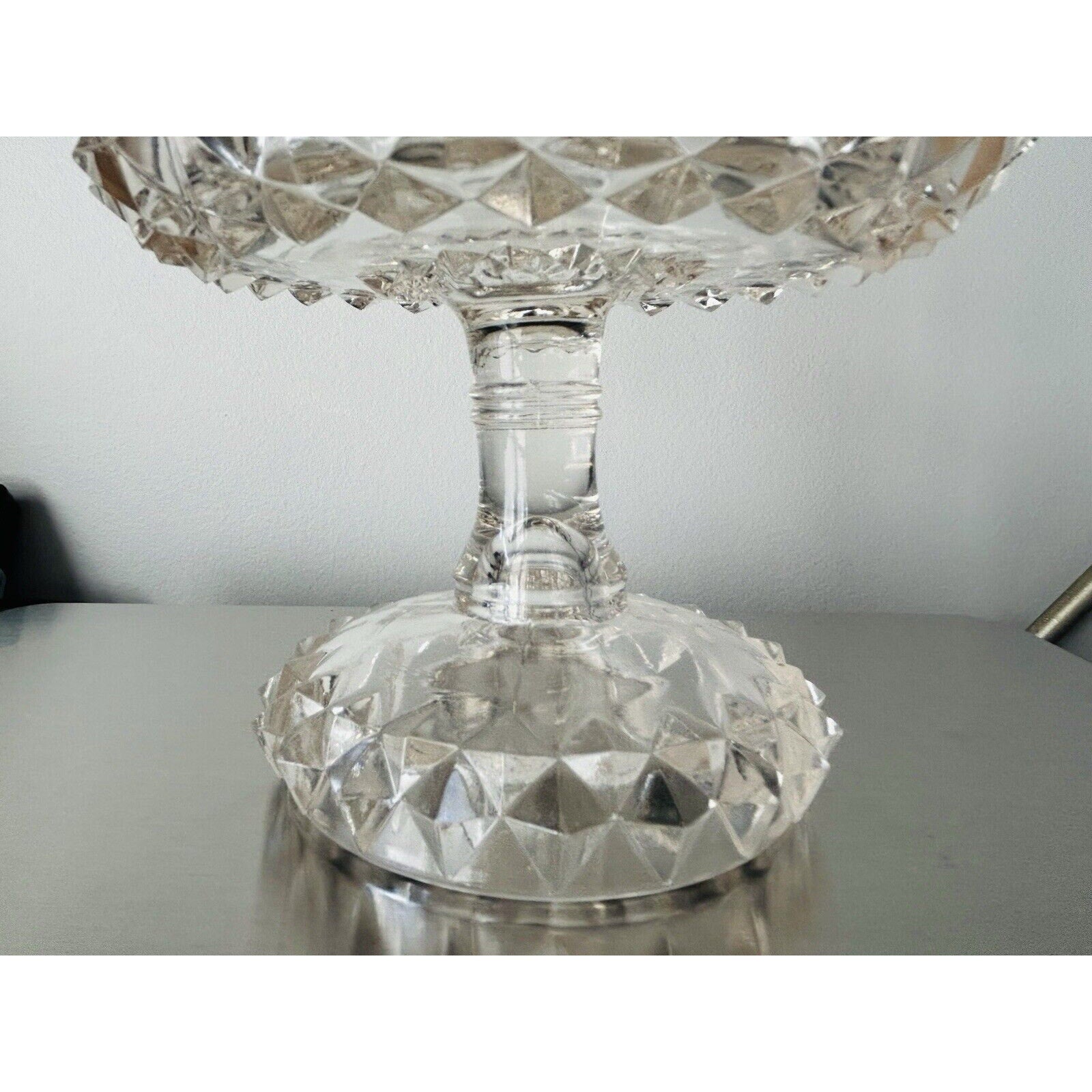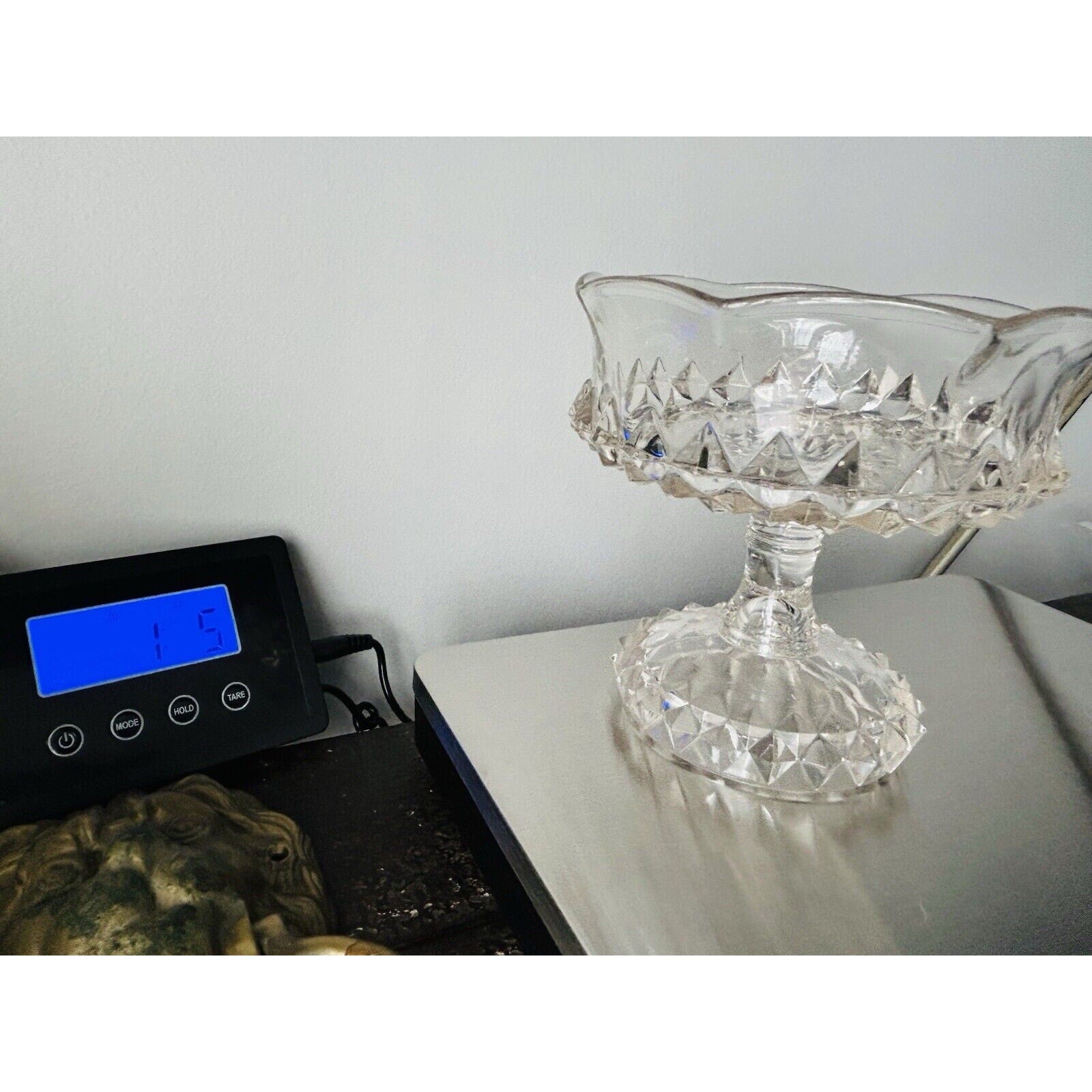 Excellent condition. No issues to note. This is an original Antique clear Glass footed compote with a scallop rim, made by Bryce Brothers in the United States during the late 19th century (1890's). The design features the Amazon Sawtooth pattern, typical of Early American Pattern Glass (EAPG) from that era.