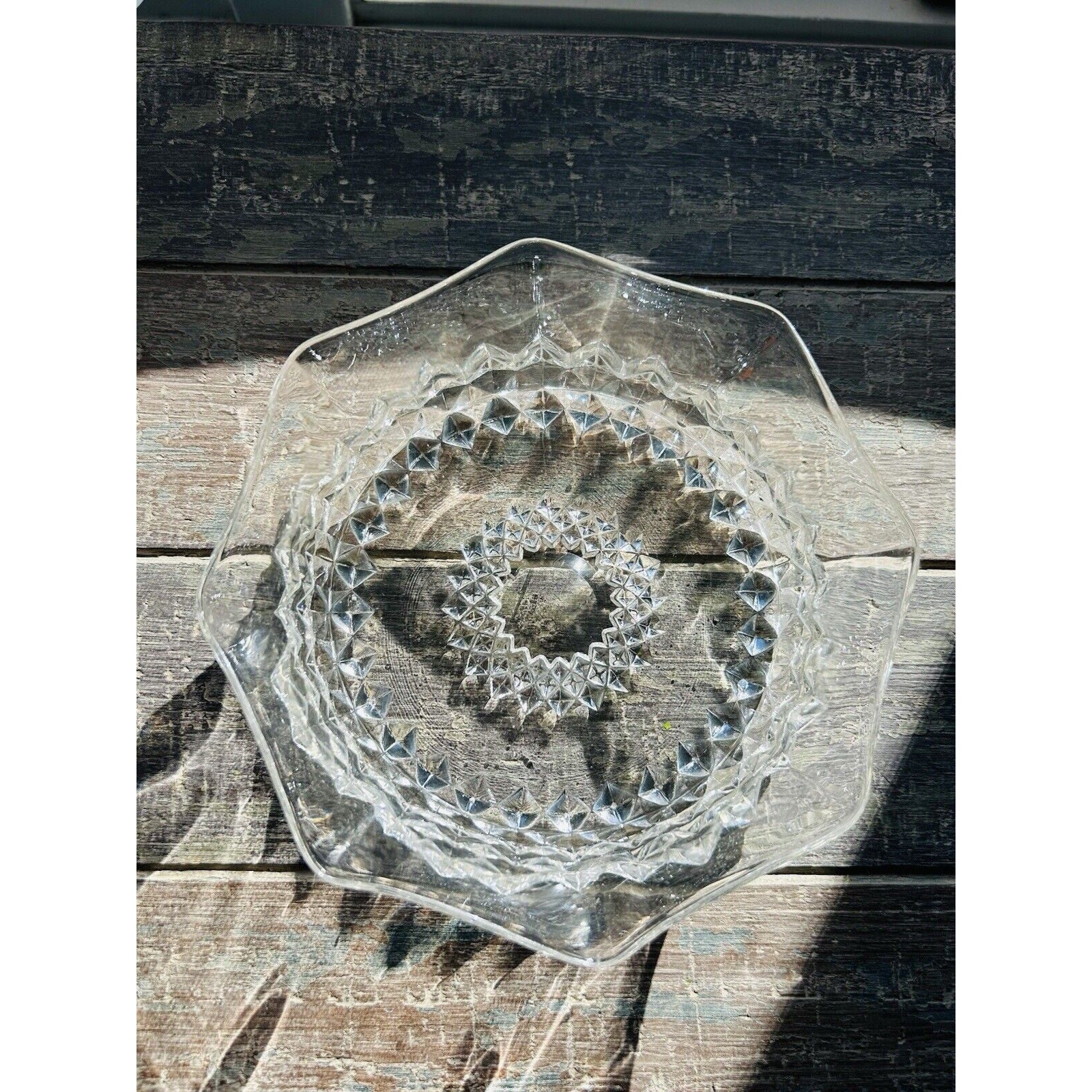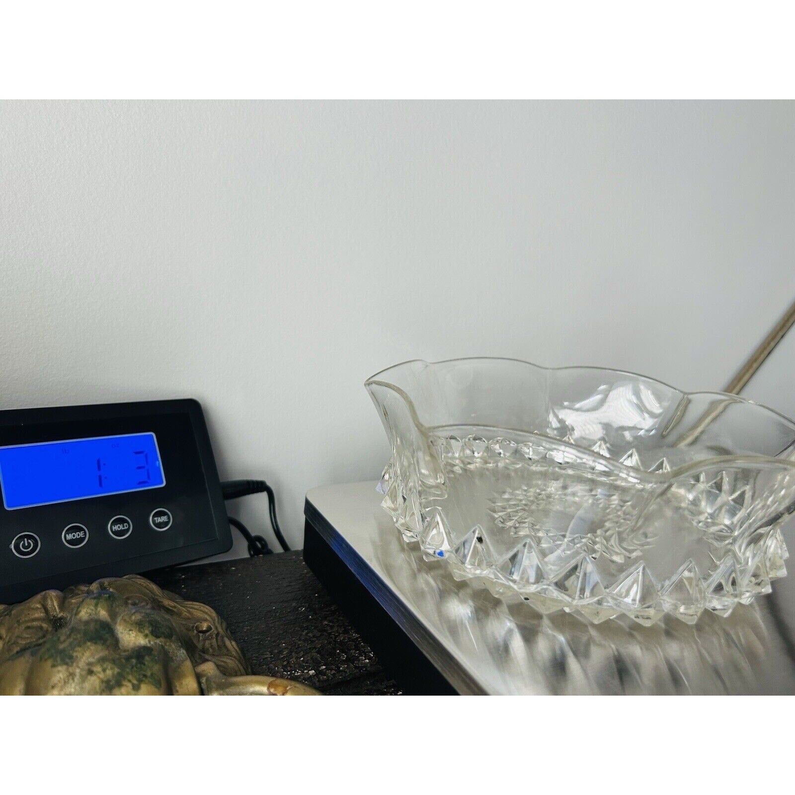Excellent condition. No issues to note. This is an original Antique clear Glass serving bowl with a scallop rim, made by Bryce Brothers in the United States during the late 19th century (1890's). The design features the Amazon Sawtooth pattern, typical of Early American Pattern Glass (EAPG) from that era.
