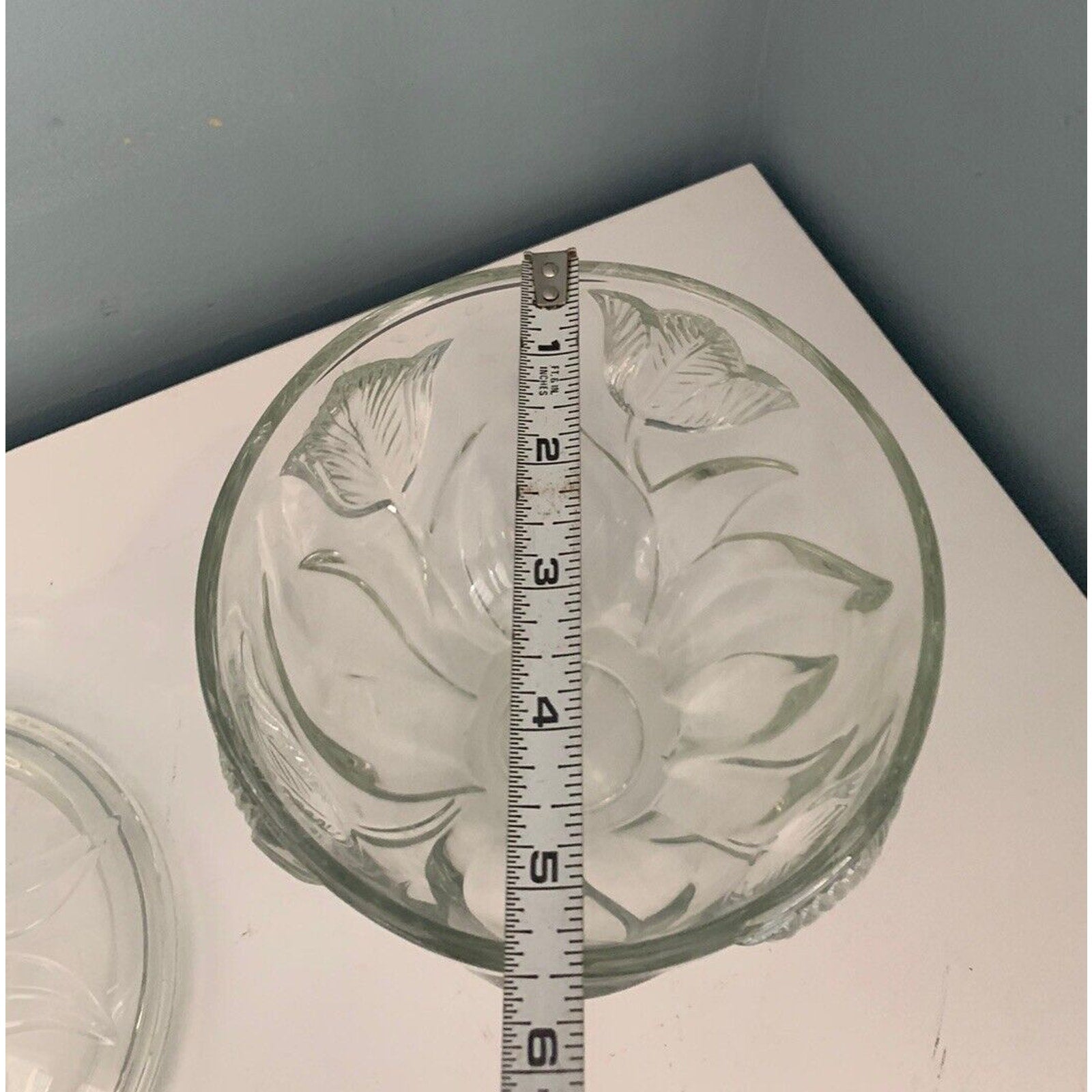 Embossed Tulip Candy Biscuit Dish w/ Lid 8” Tall Leaves Glass Flowers Floral