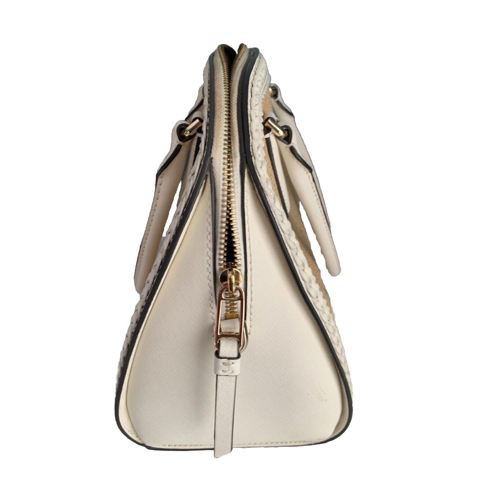 Bring a touch of bohemian style to your outfit with this Kate Spade New York Reiley Straw Large Dome Satchel. The woven pattern and crossbody strap add a unique touch to this bag, while the brilliant white exterior color and silver lining color complement any outfit. This bag is perfect for any occasion, from a casual day out to a formal event or a party/cocktail. The zip closure ensures that your belongings stay secure, and the leather handle/strap material adds durability. This bag is a must-have for any woman who wants to add a touch of retro and beachy vibes to her wardrobe.