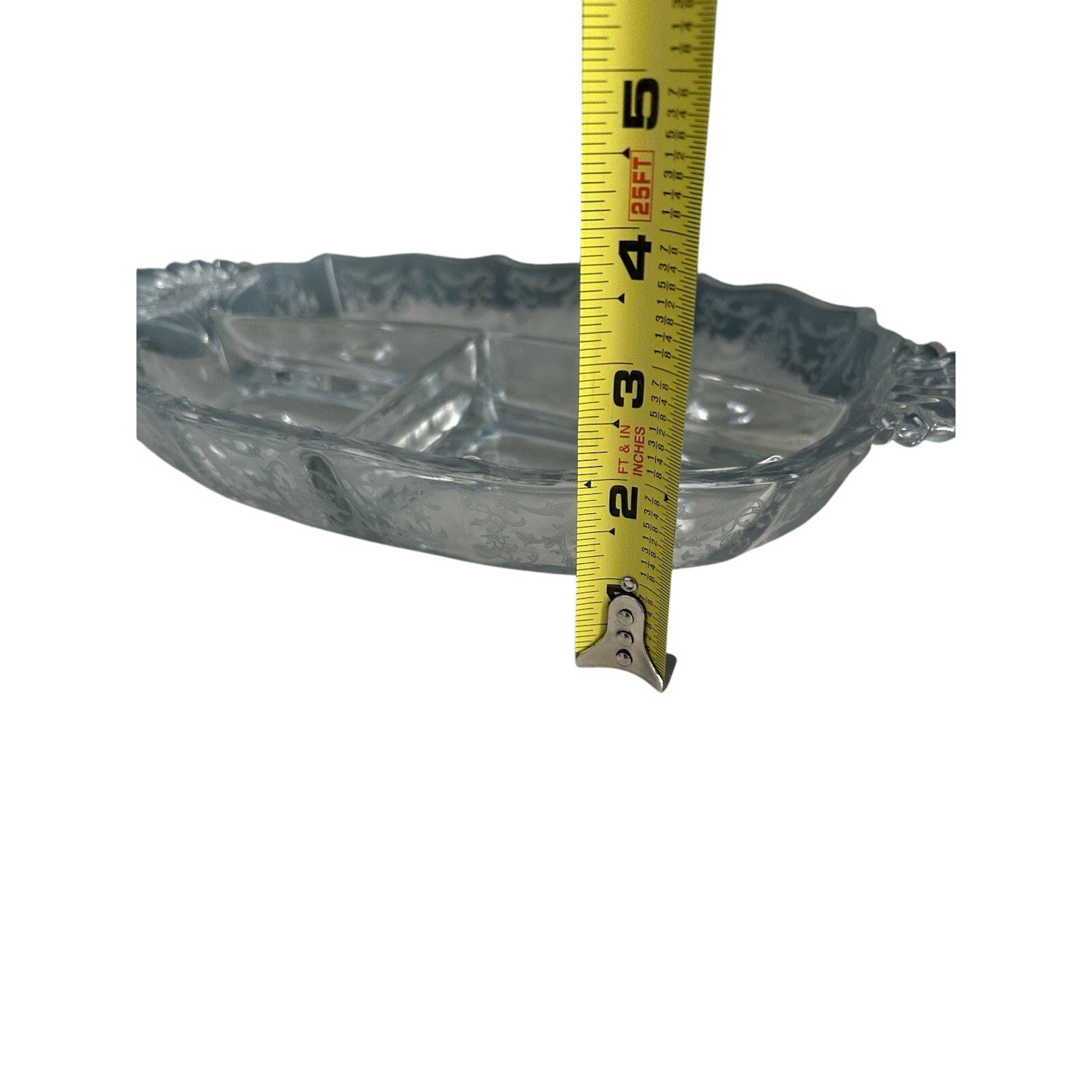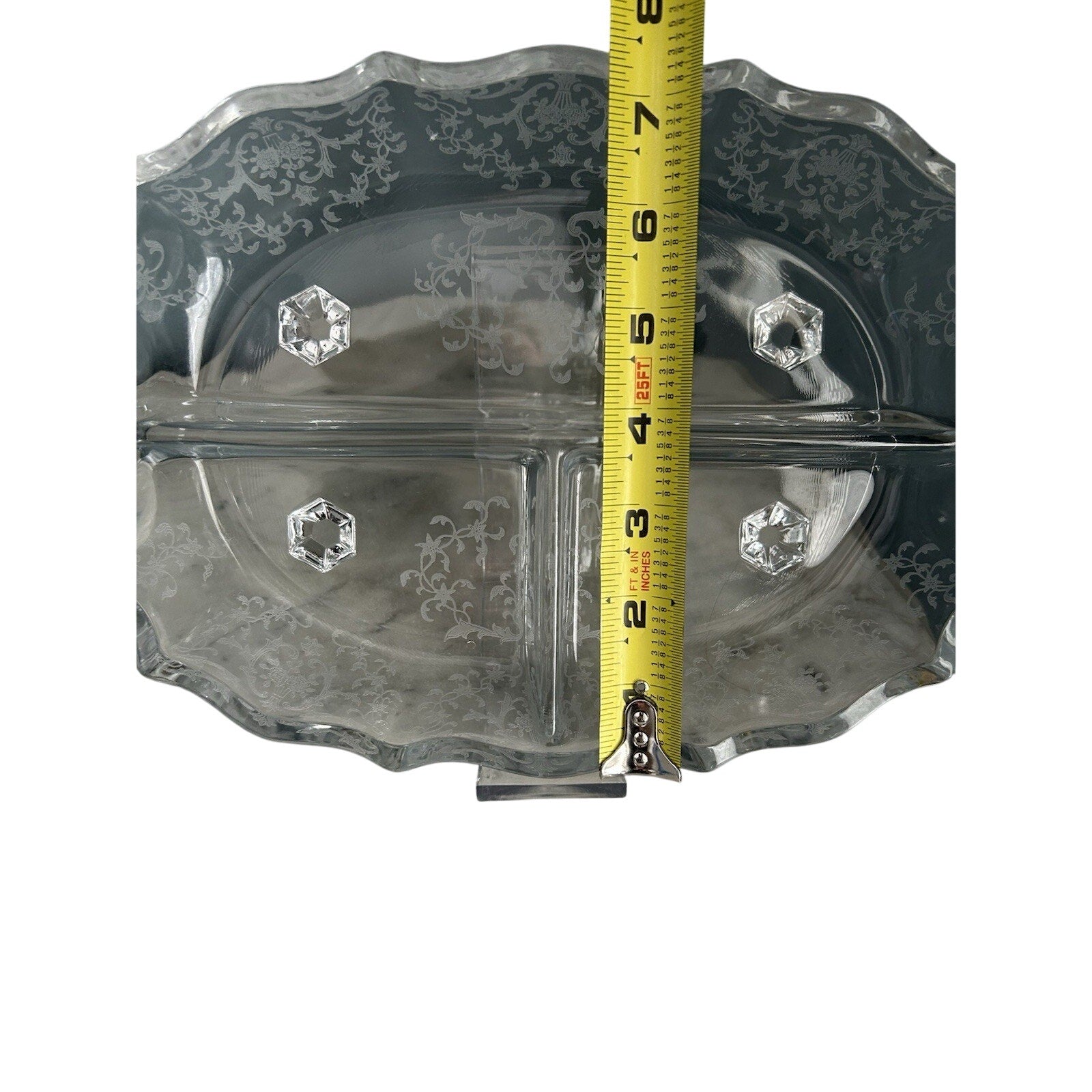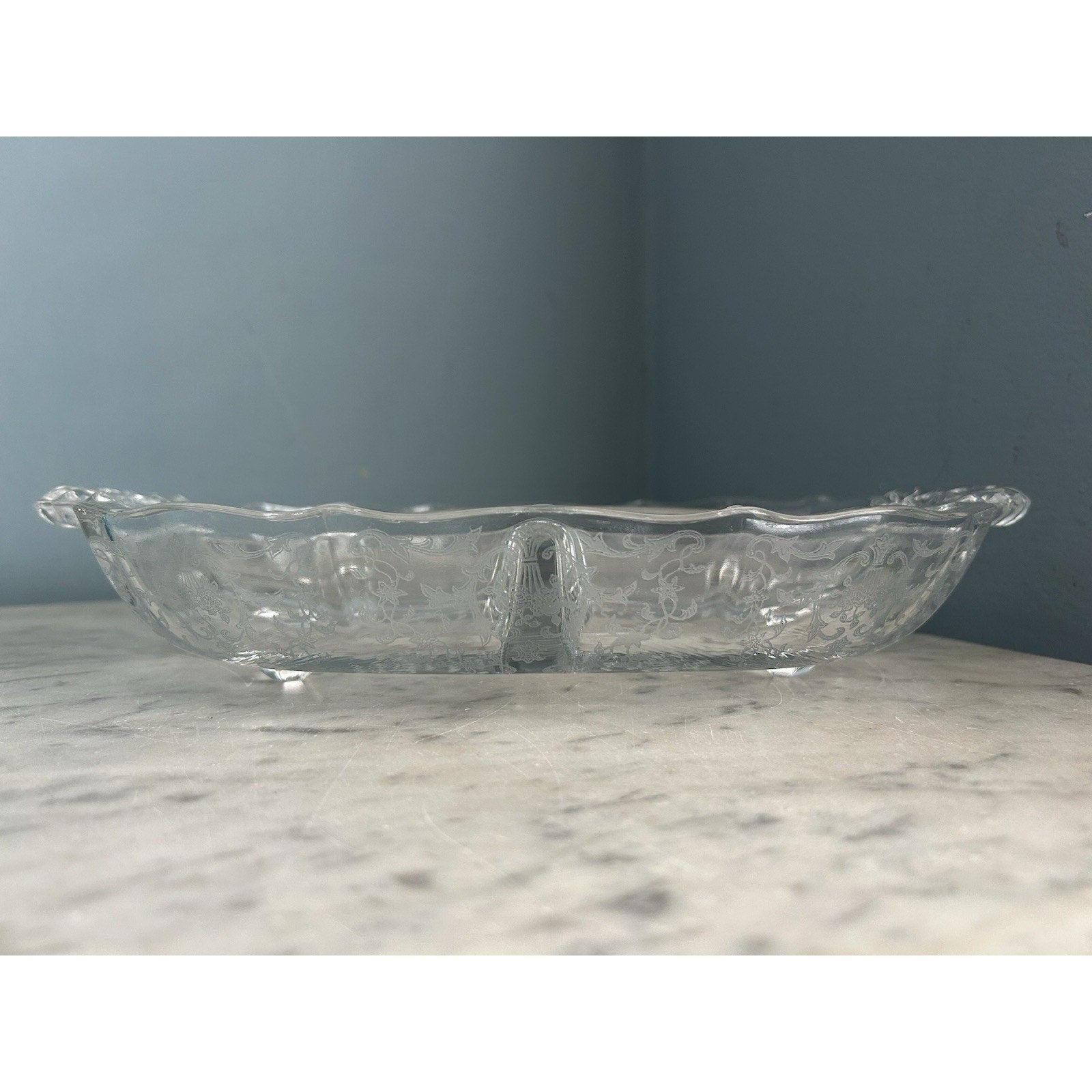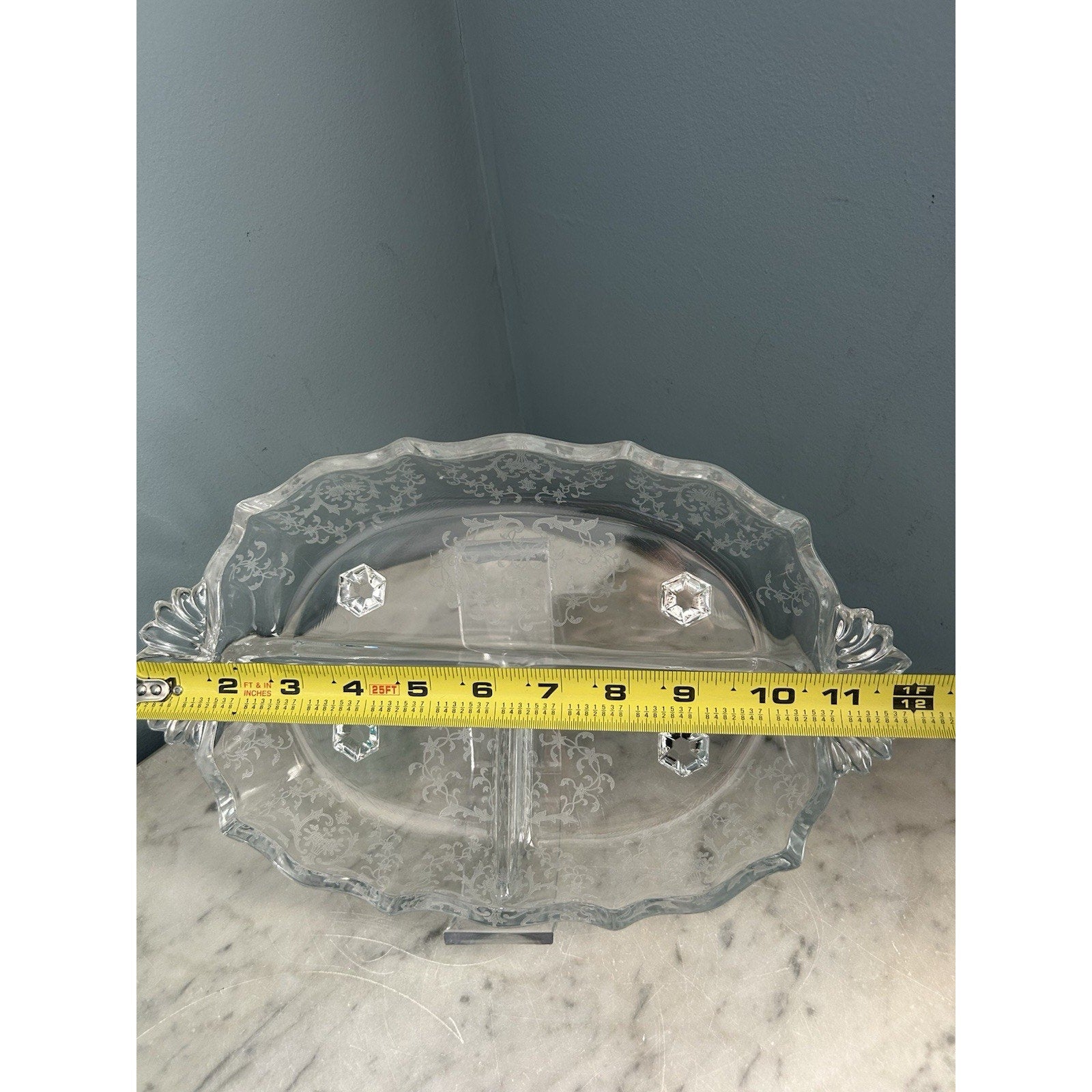 Fostoria Meadow Rose 3 Part Glass Footed Relish Dish Etched Crystal Vintage
