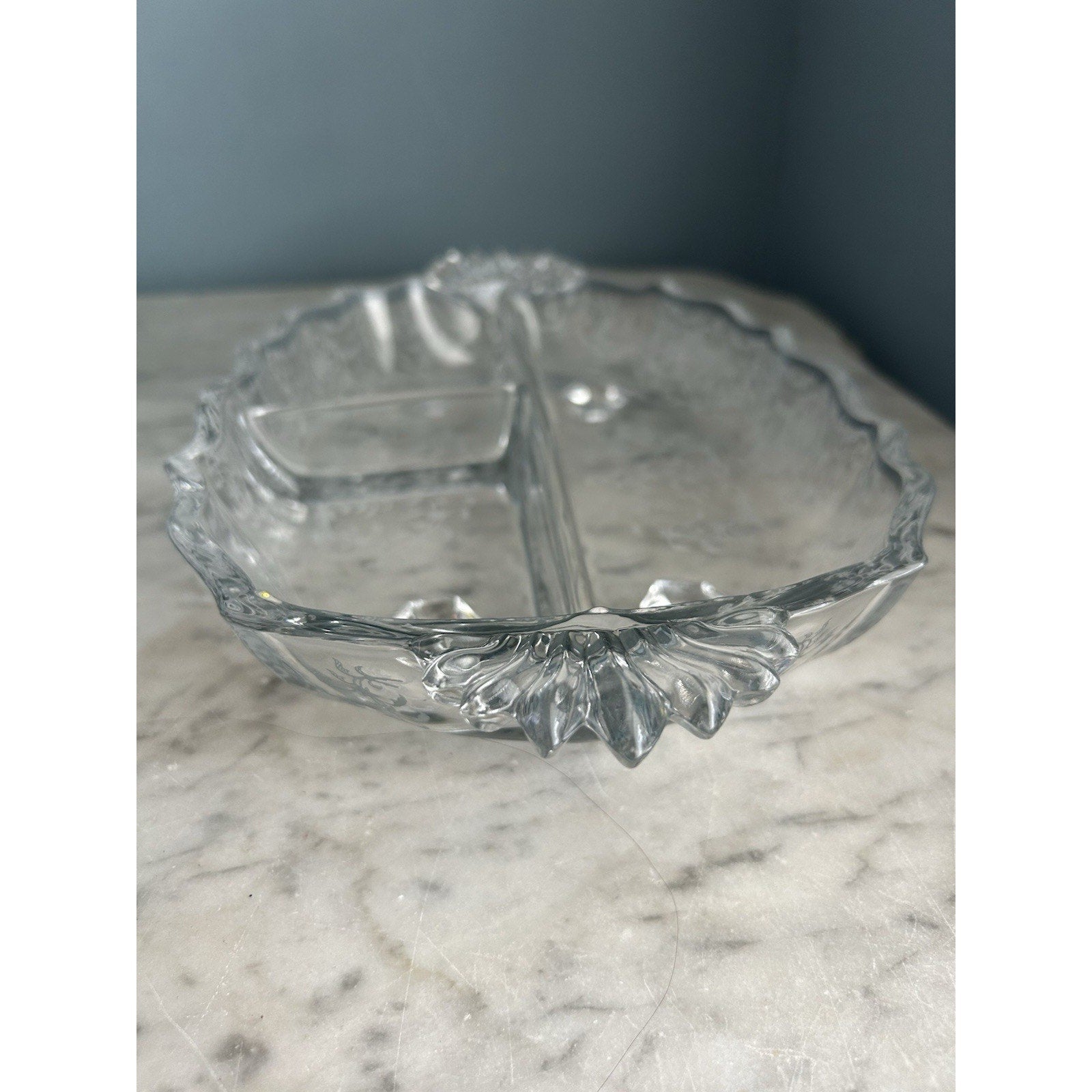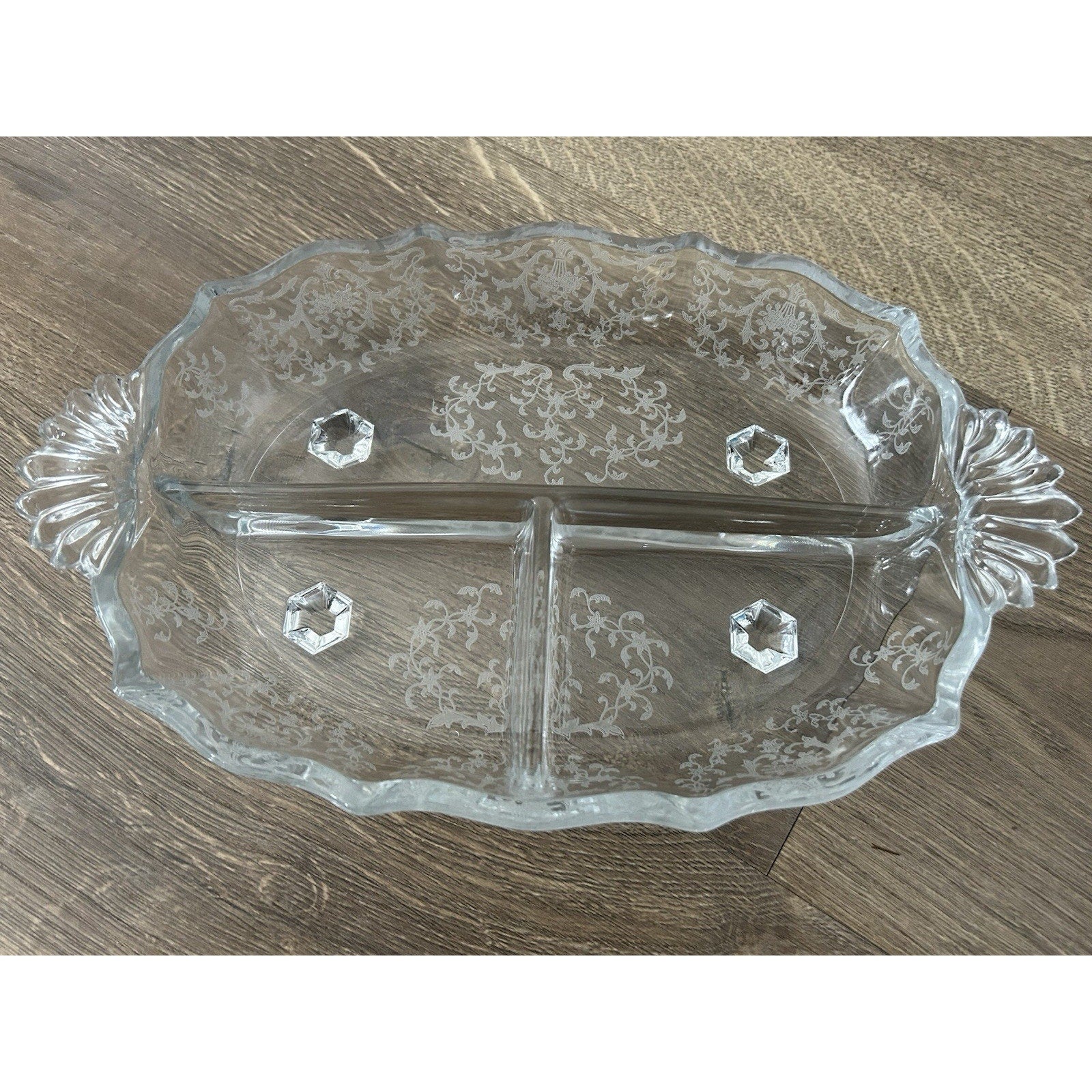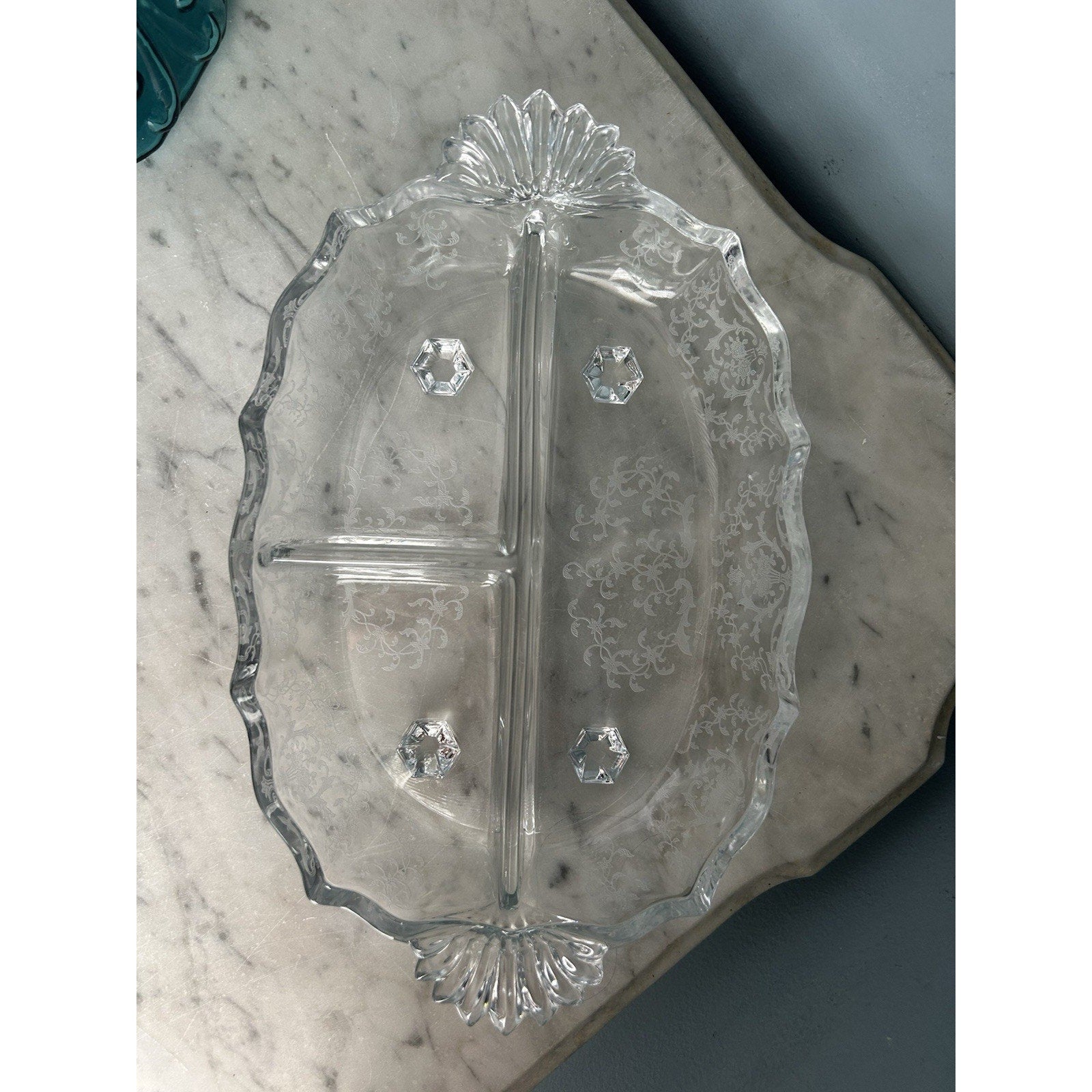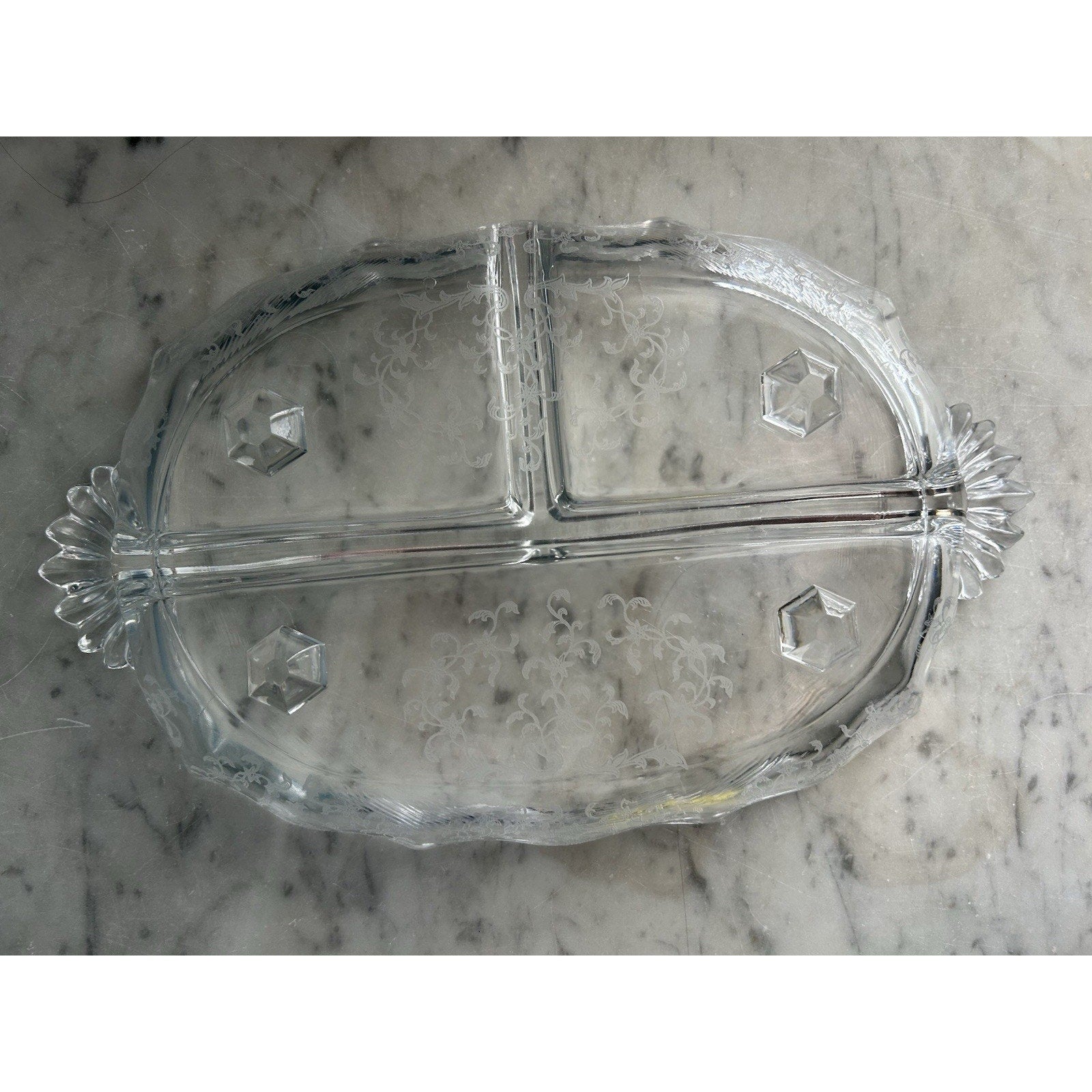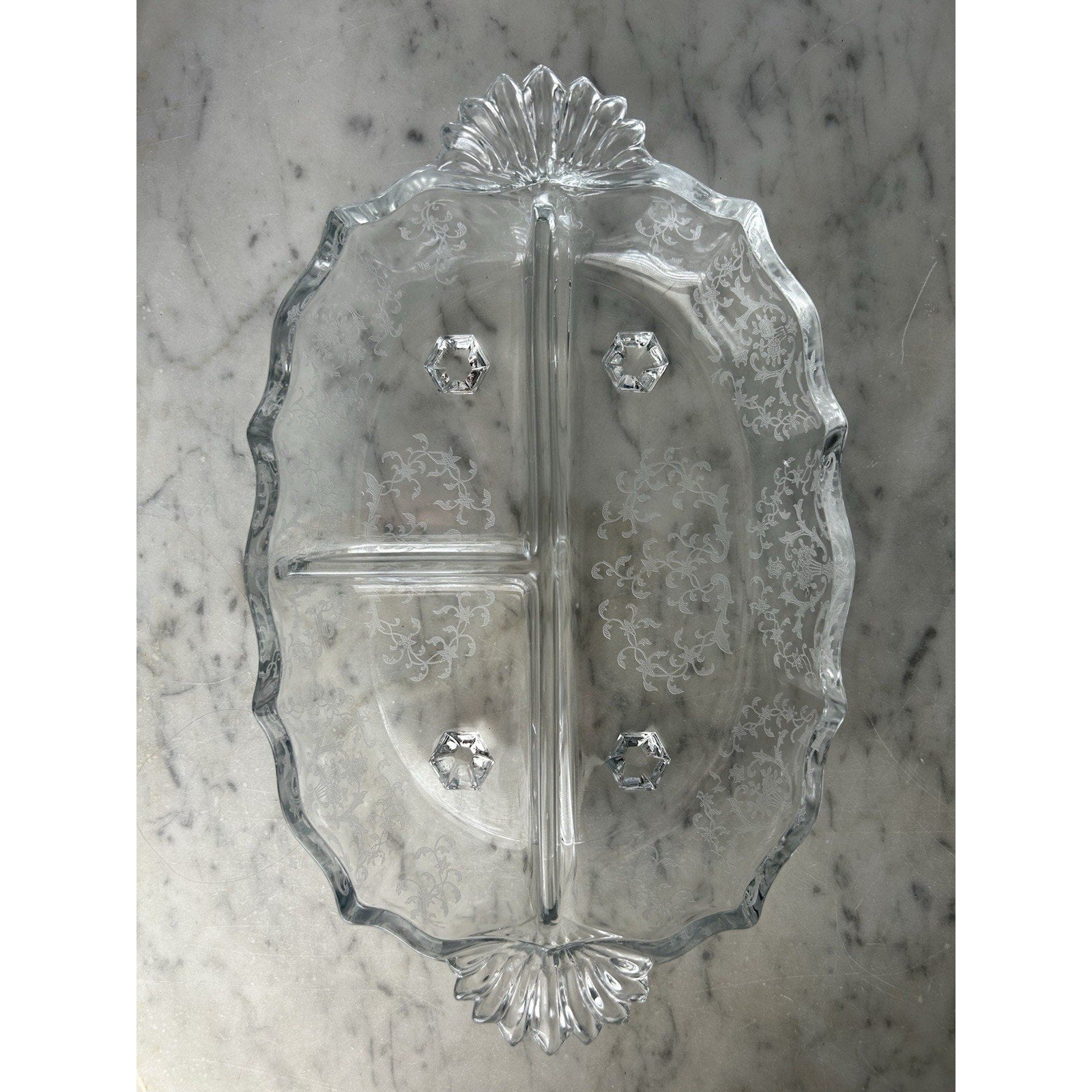 Fostoria Meadow Rose 3 Part Glass Footed Relish Dish Etched Crystal Vintage