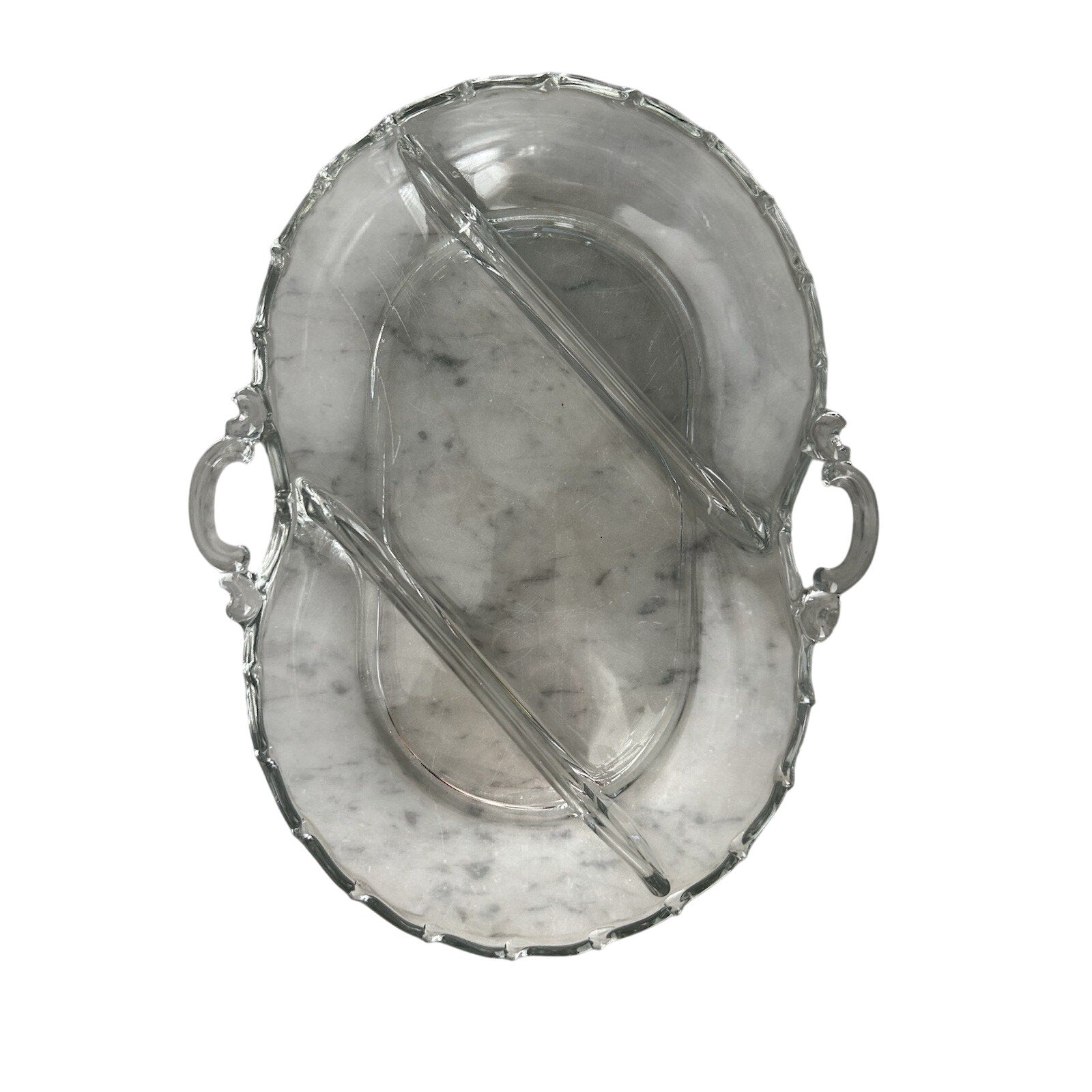 Fostoria Vintage Century Dish 3 Part Divided Handles Glass Serving Relish Nuts