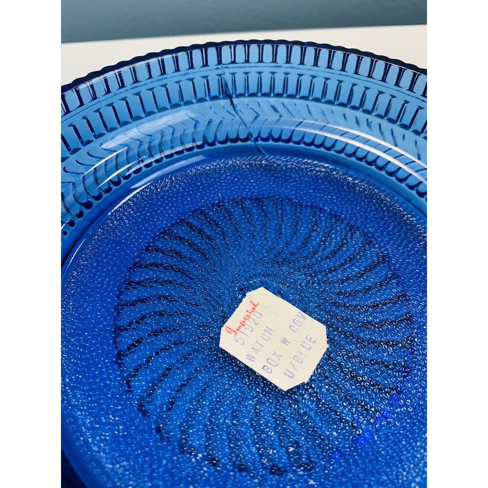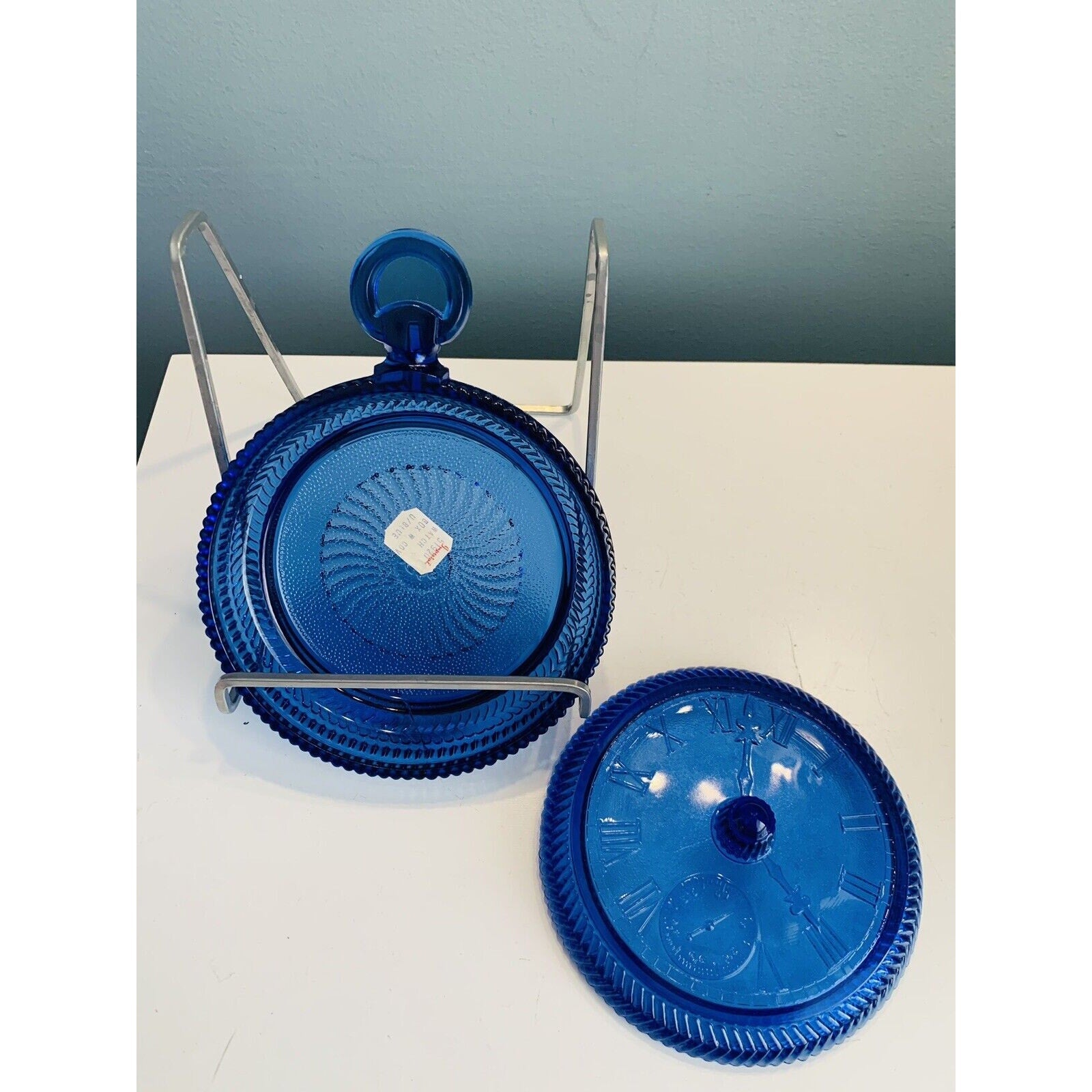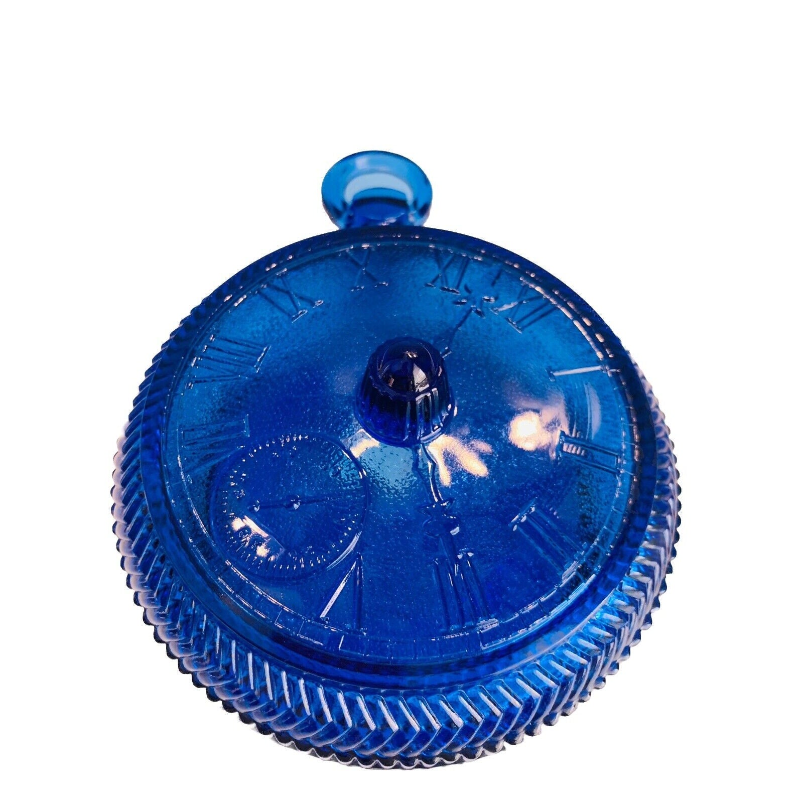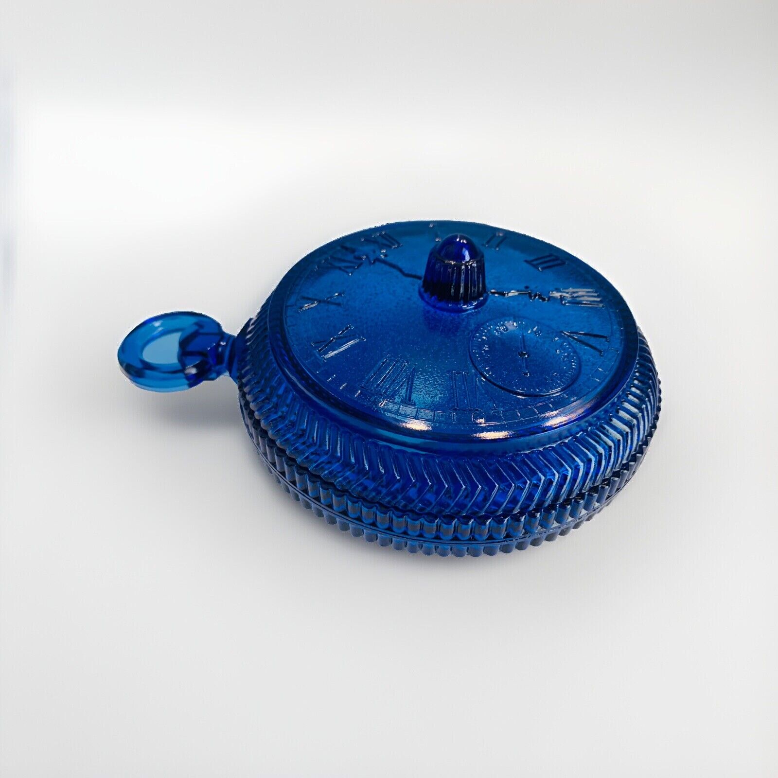 Imperial Glass Cobalt Blue Pocket Watch Lidded Candy Dish Nautical Decor Clock