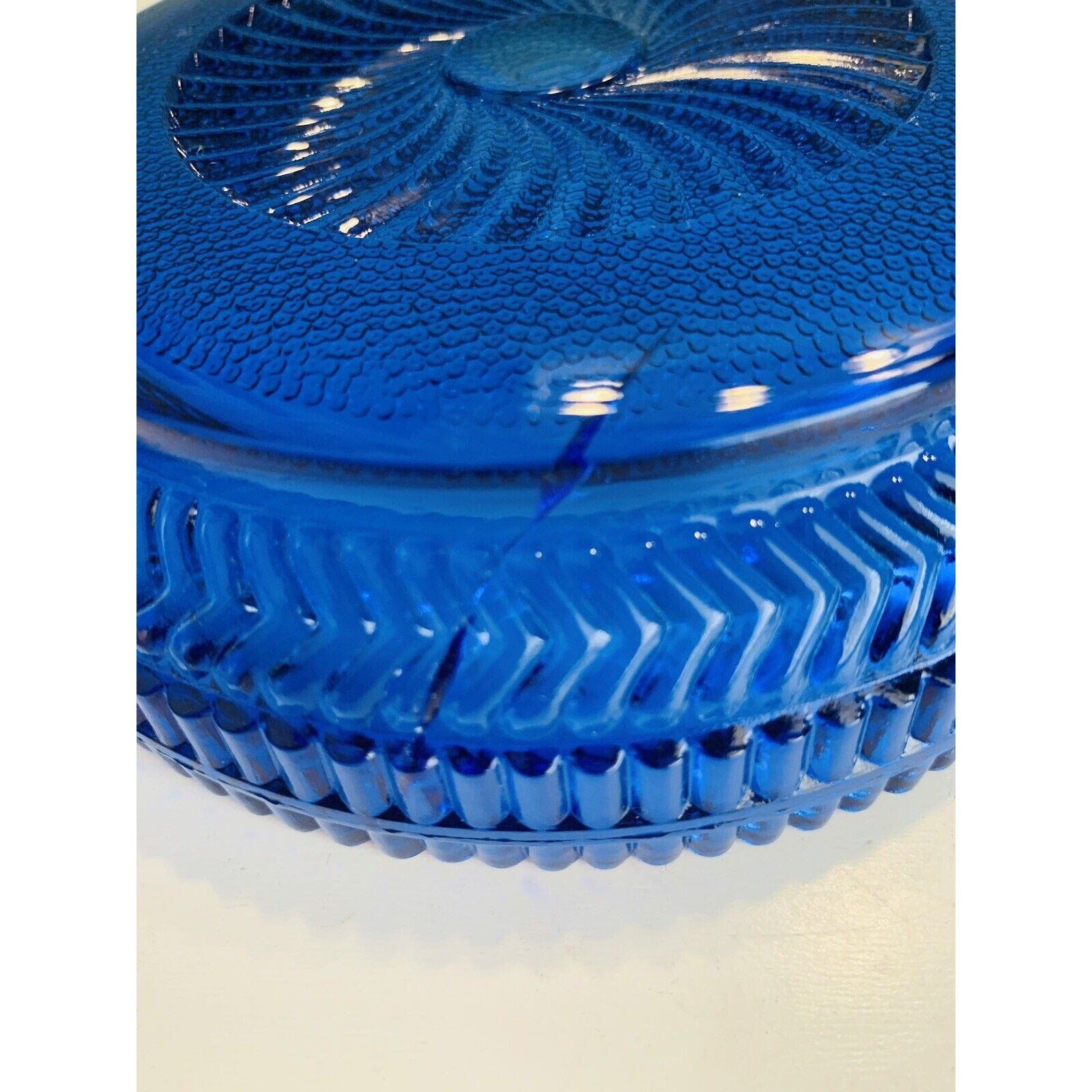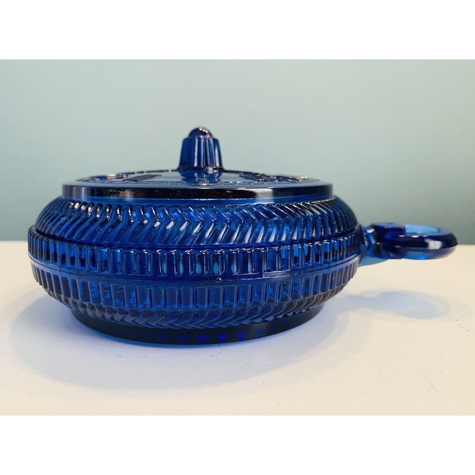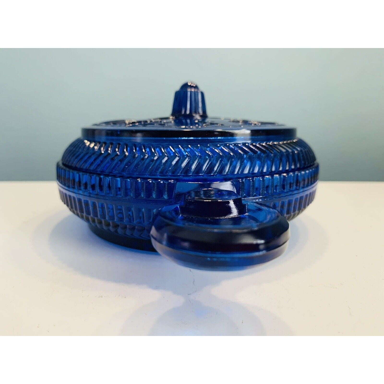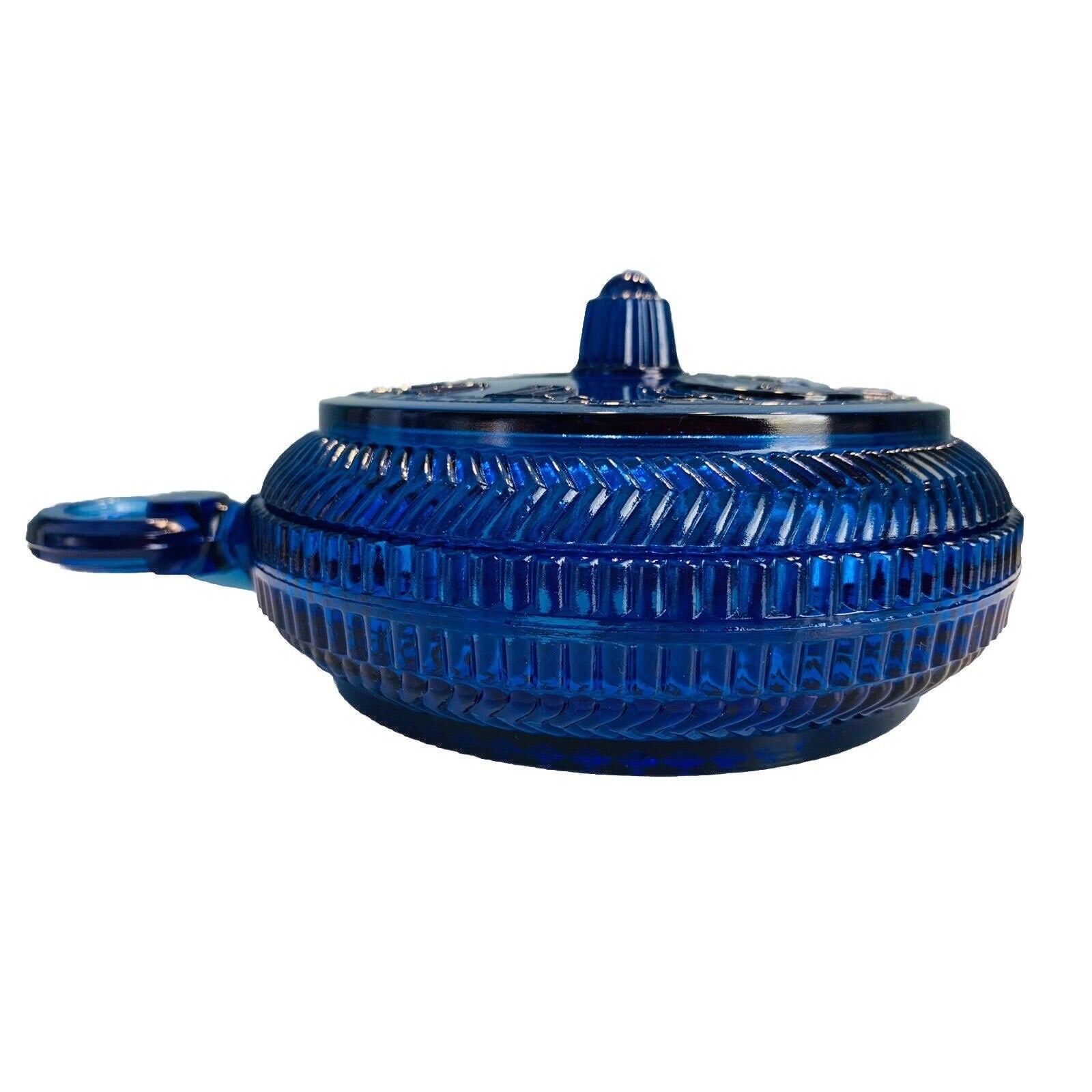 Imperial Glass Cobalt Blue Pocket Watch Lidded Candy Dish Nautical Decor Clock
