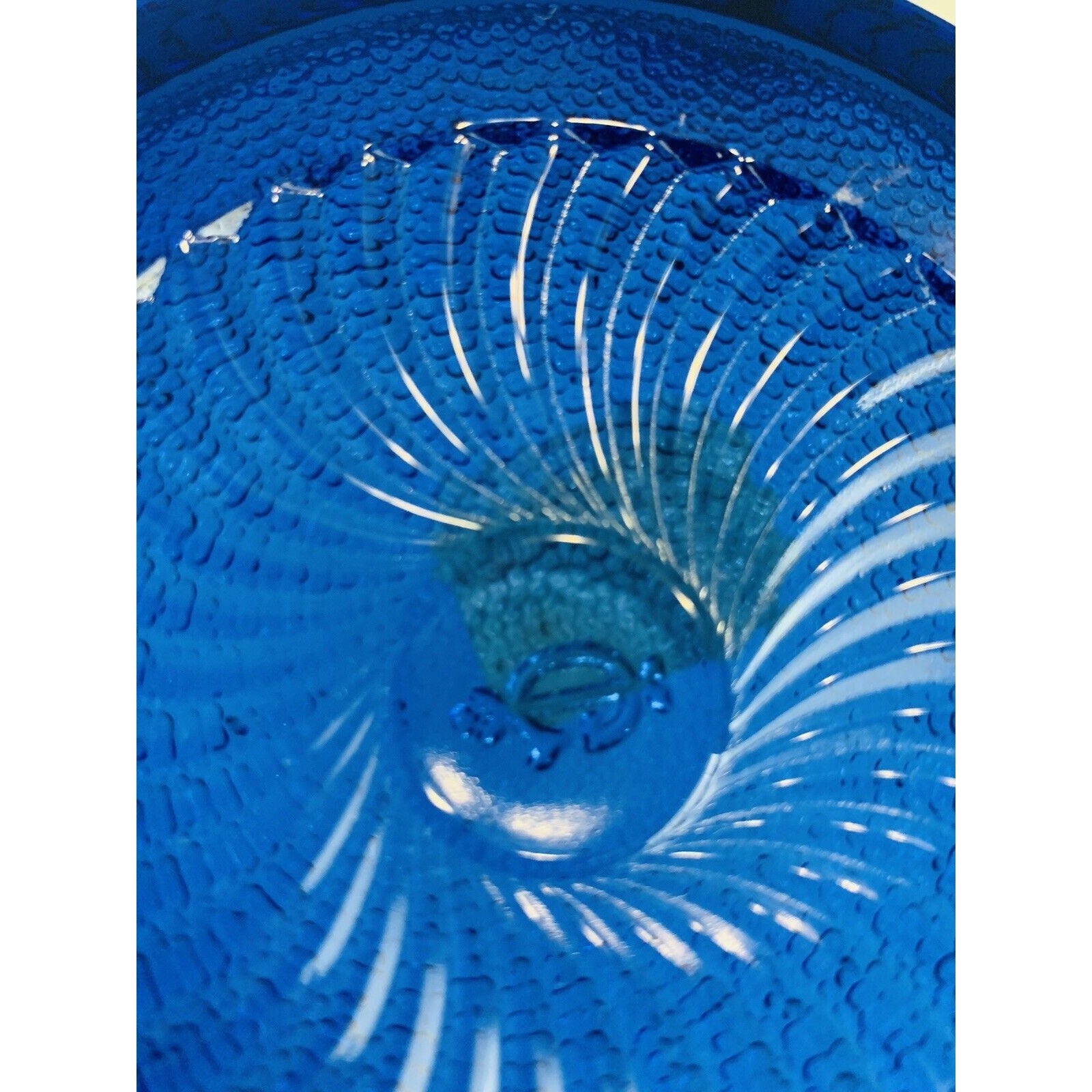 This beautiful Imperial Glass candy dish is a vintage treasure with a unique nautical theme. The round shape and cobalt blue color make it a stunning addition to any collection. The dish is 5 3/4 inches in diameter and weighs 1 pound and 9 ounces.