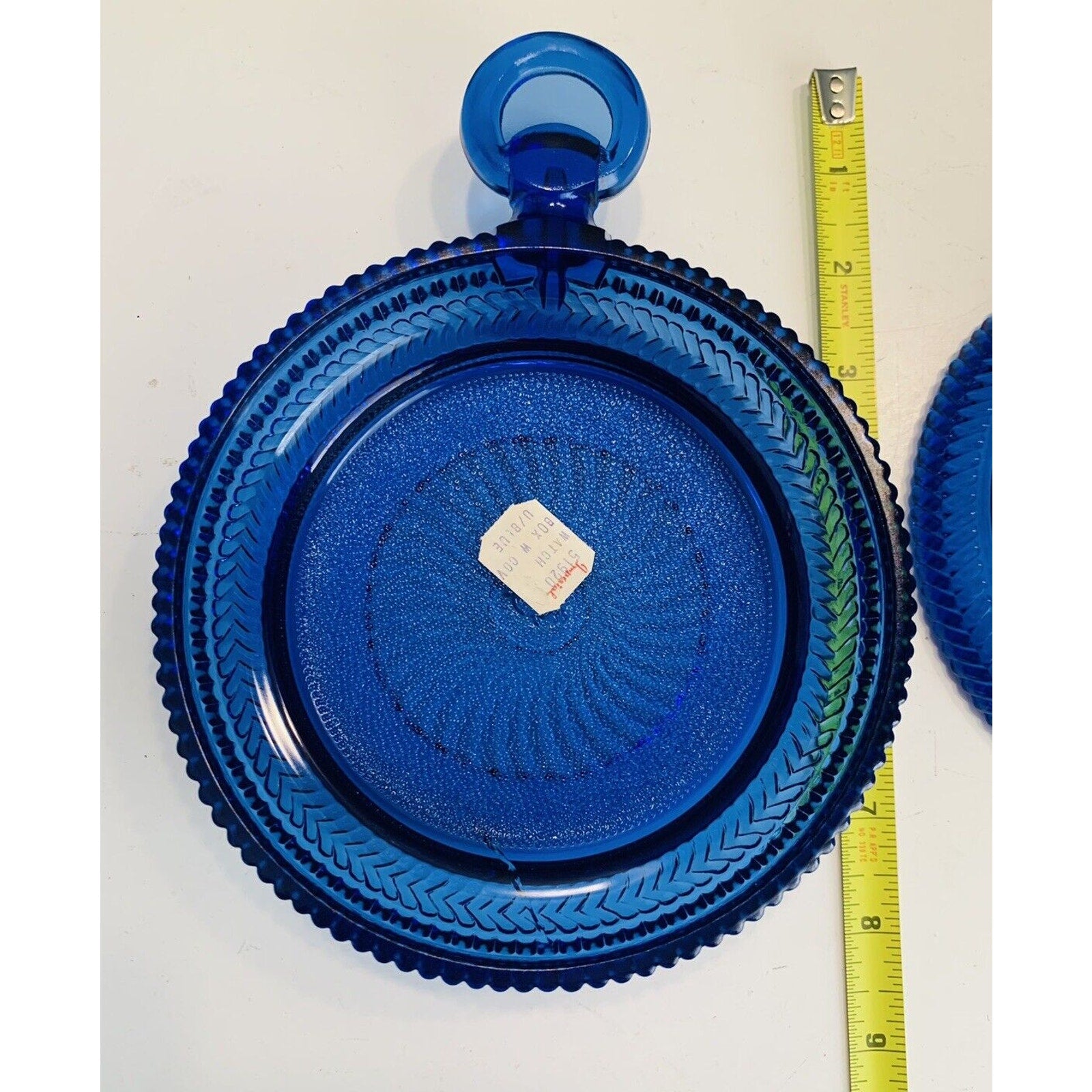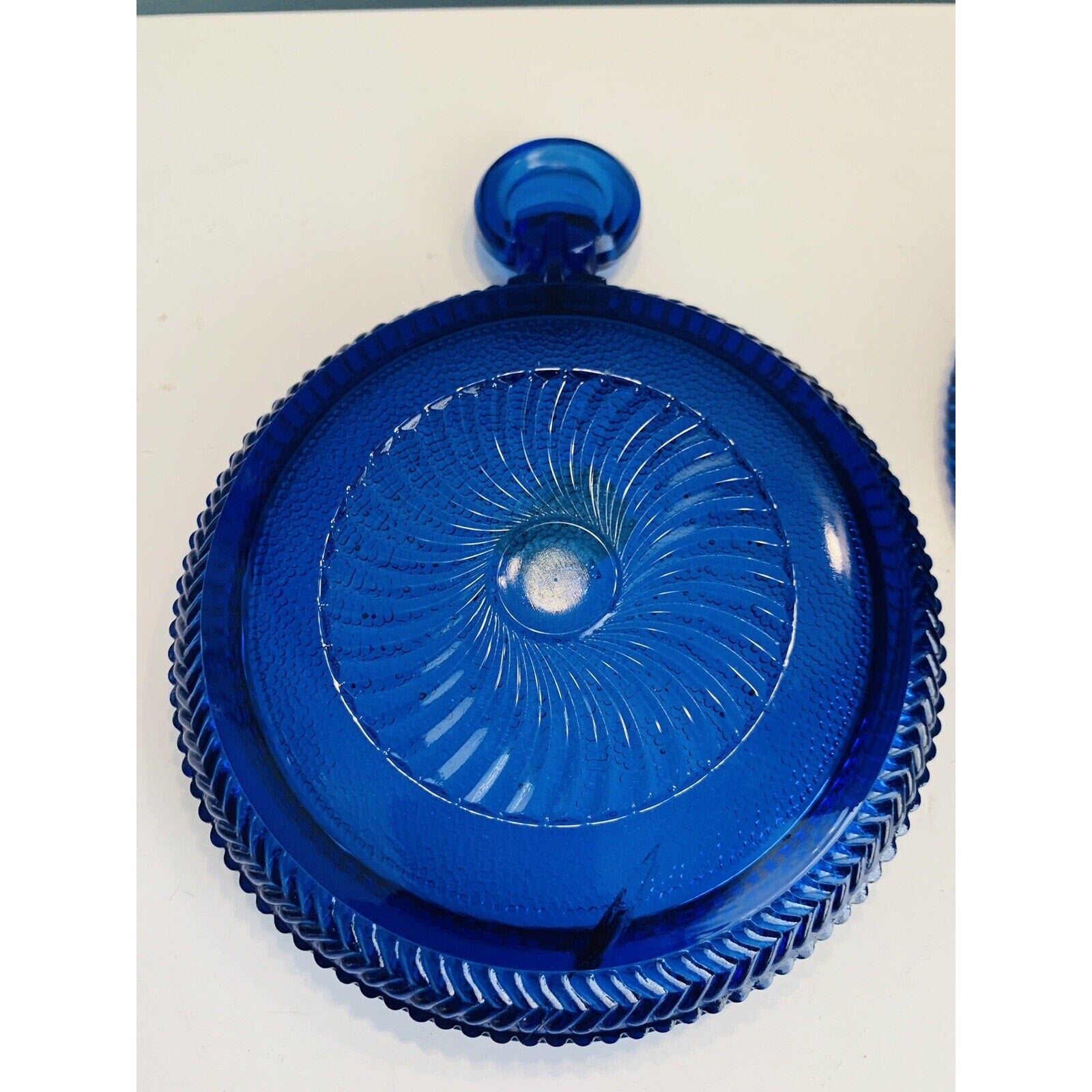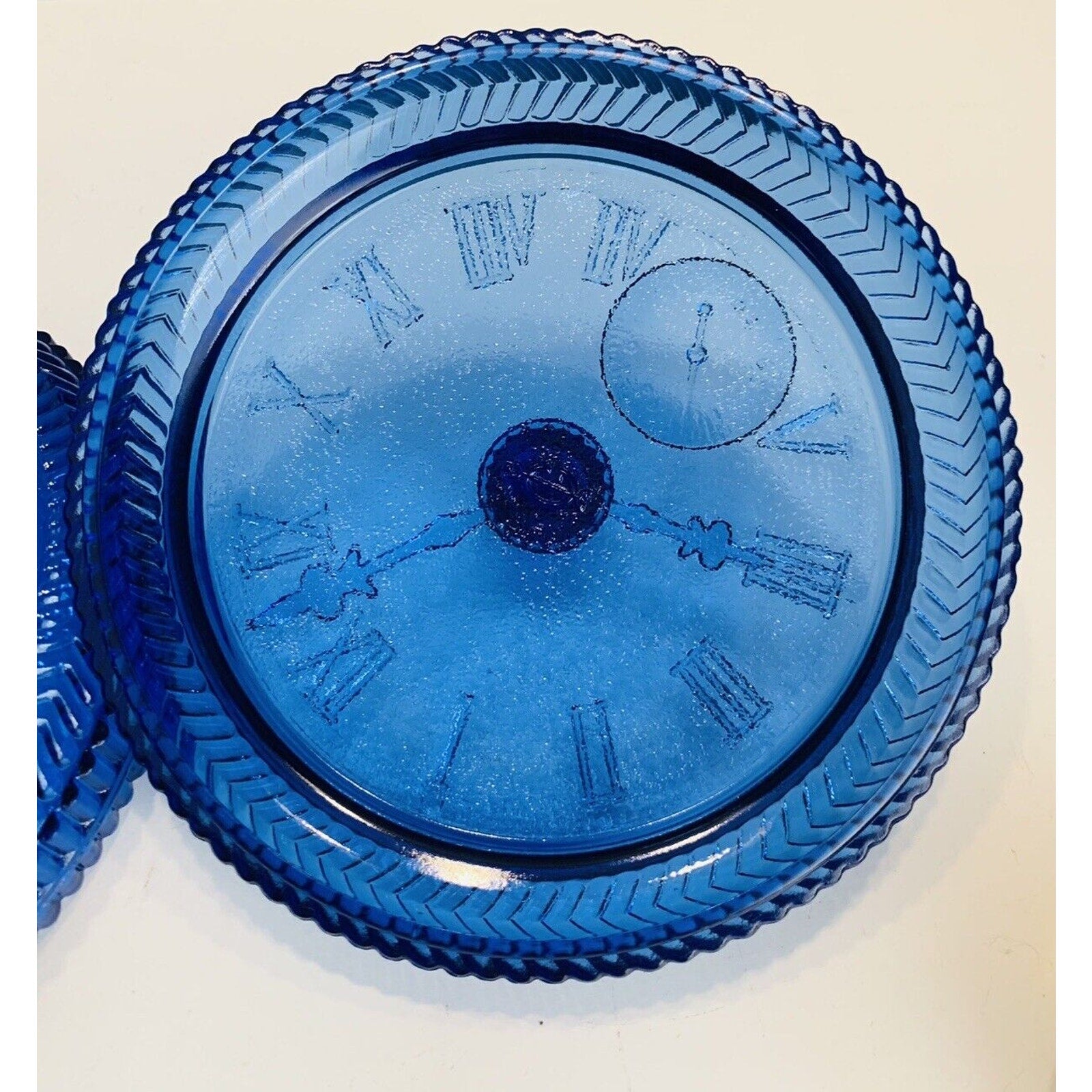 The watch-themed candy dish is made of high-quality glass and features an impressed backstamp. Its production style is cobalt glass, which adds to its durability and value. This two-piece set is perfect for anyone who loves vintage glassware and wants to add a touch of elegance to their collection.