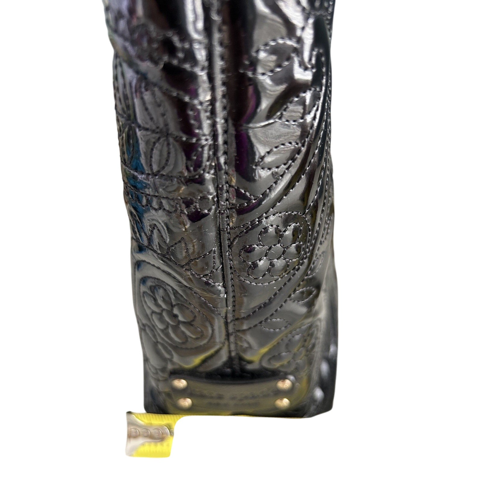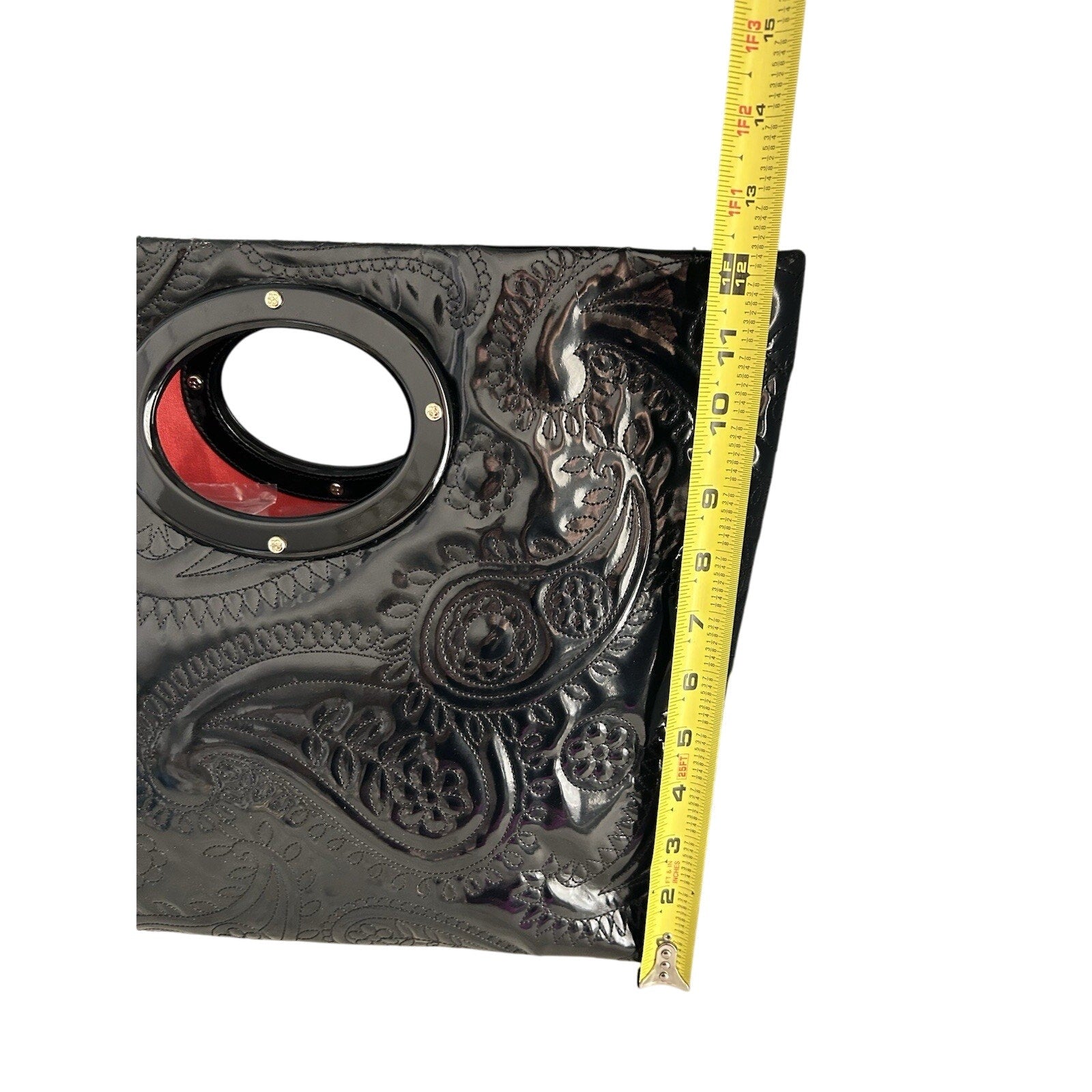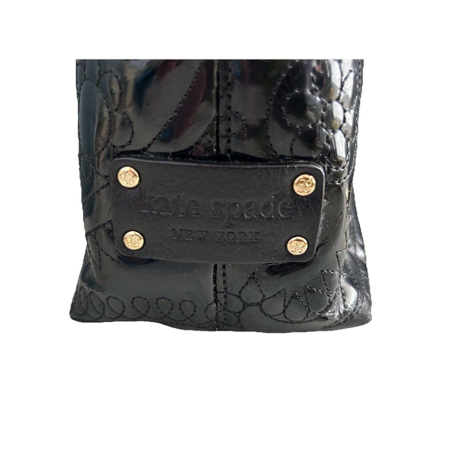 Kate Spade Black Patent Calabasas Kei Tote Large Clutch Purse Floral Stitch Bag