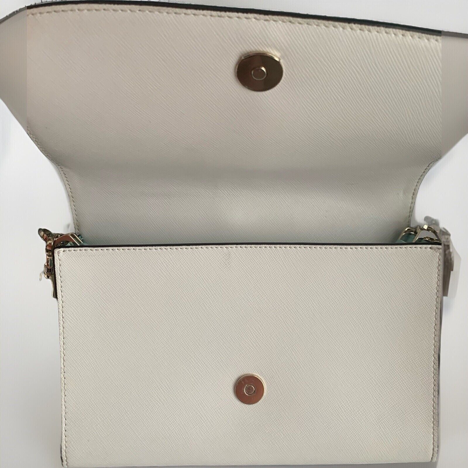 Like new, used one time . No tags but minimal wear, slight discoloration on backside of white portion. Please see pictures. This Kate Spade Carson Convertible Crossbody Purse is a must-have for any fashion-forward woman. The stunning poolside exterior color is made from high-quality leather and features a colorful block pattern. The magnetic closure opens to reveal a white fabric lining with inner pockets and a detachable strap. The gold-plated hardware adds a touch of elegance to the strap and logo accents.