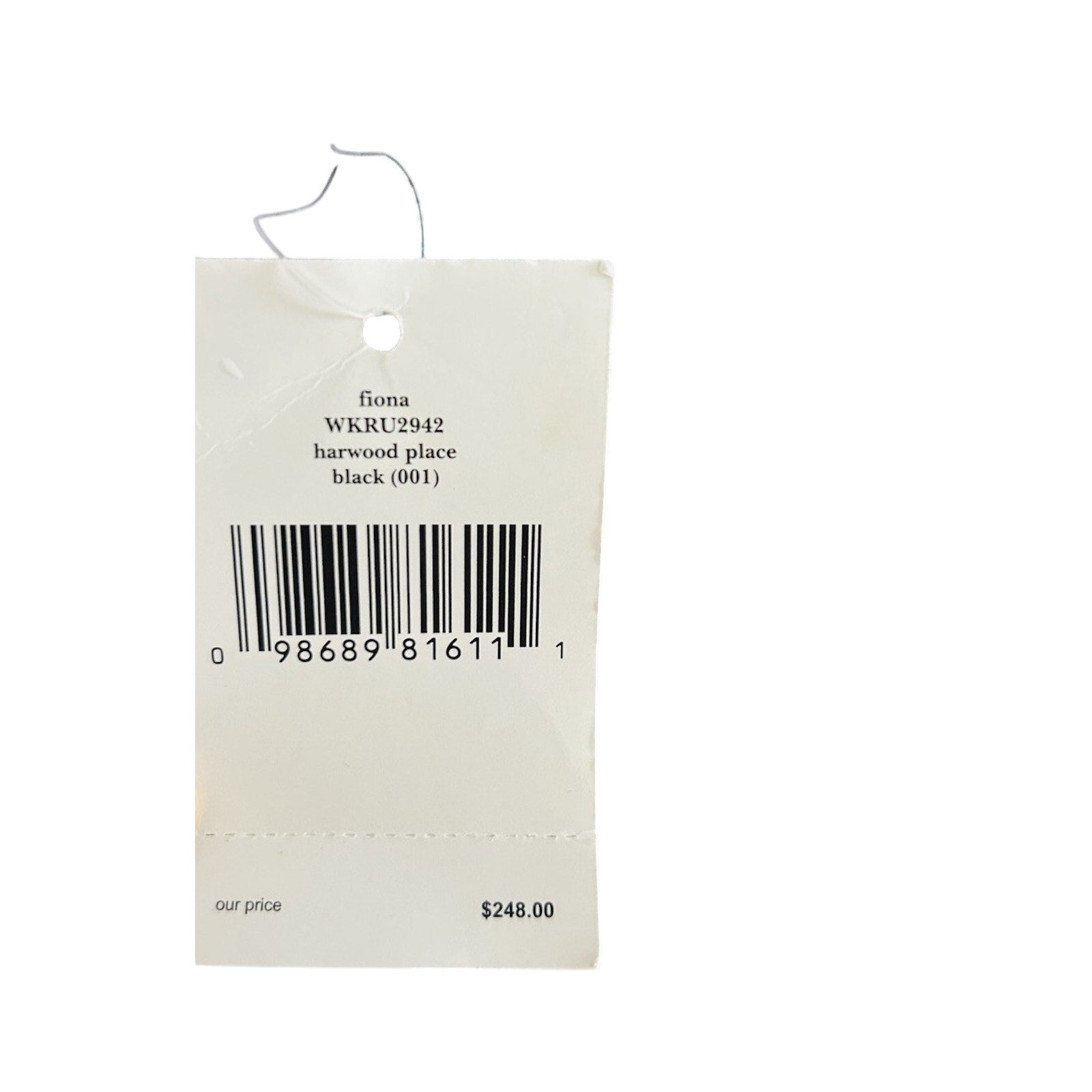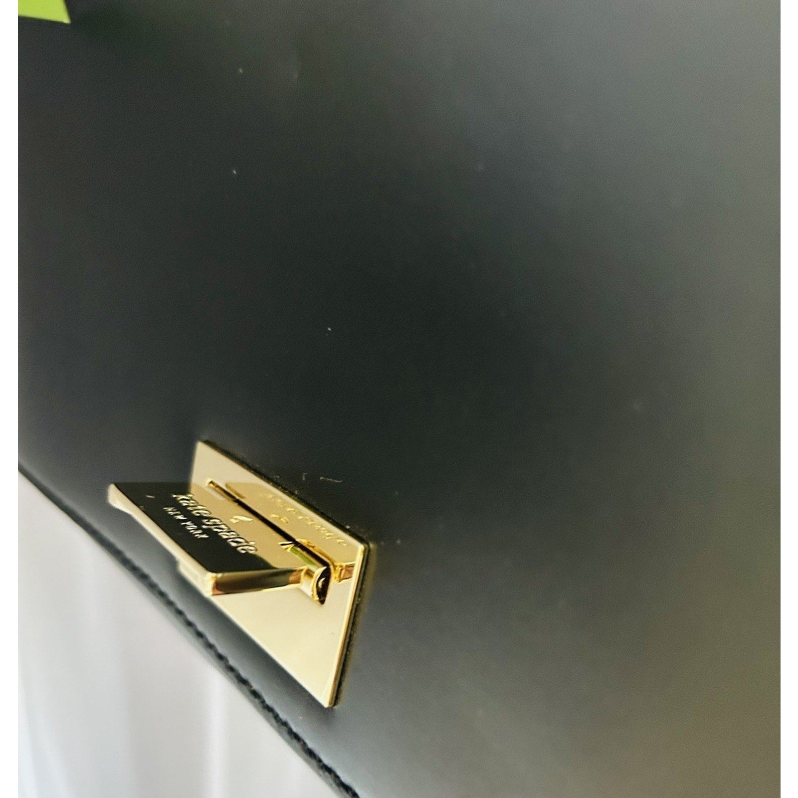 Elevate your style with this stunning Kate Spade Harwood Place Fiona crossbody bag. Crafted from high-quality leather in classic black, this medium-sized bag features a square shape and a flap closure for a sleek and sophisticated look. The bag is adorned with a colorful applique and a strap accent, adding a touch of playfulness to your outfit. MSRP 248. 2942