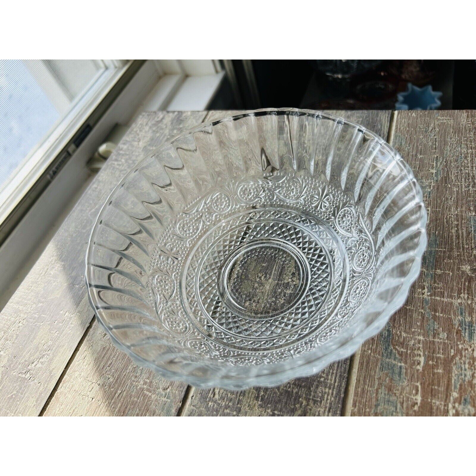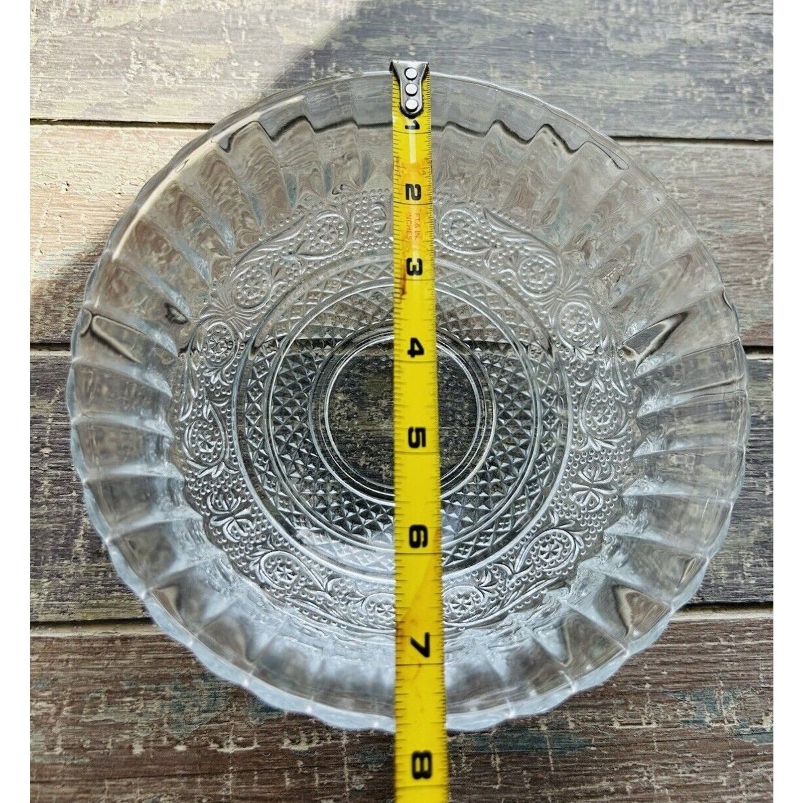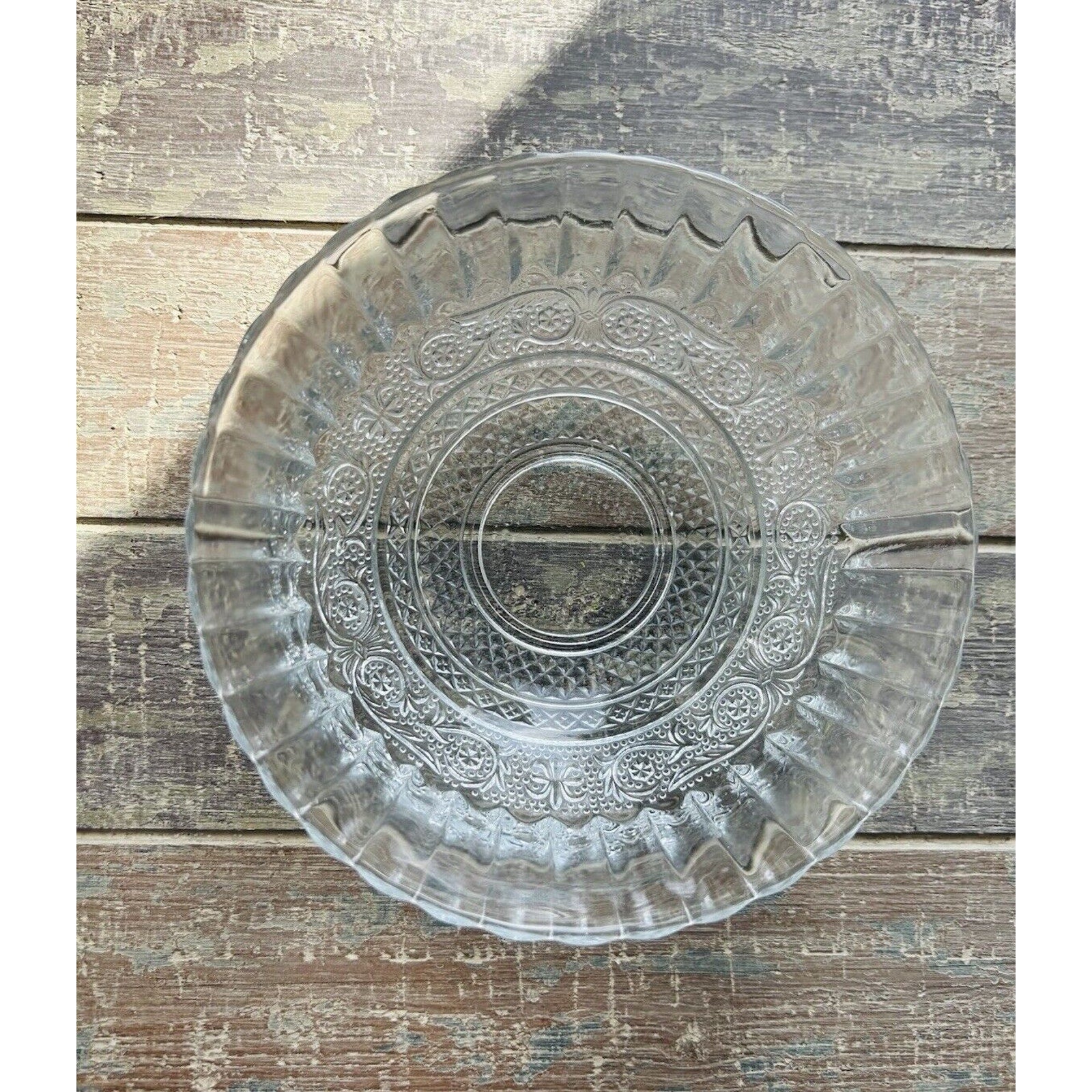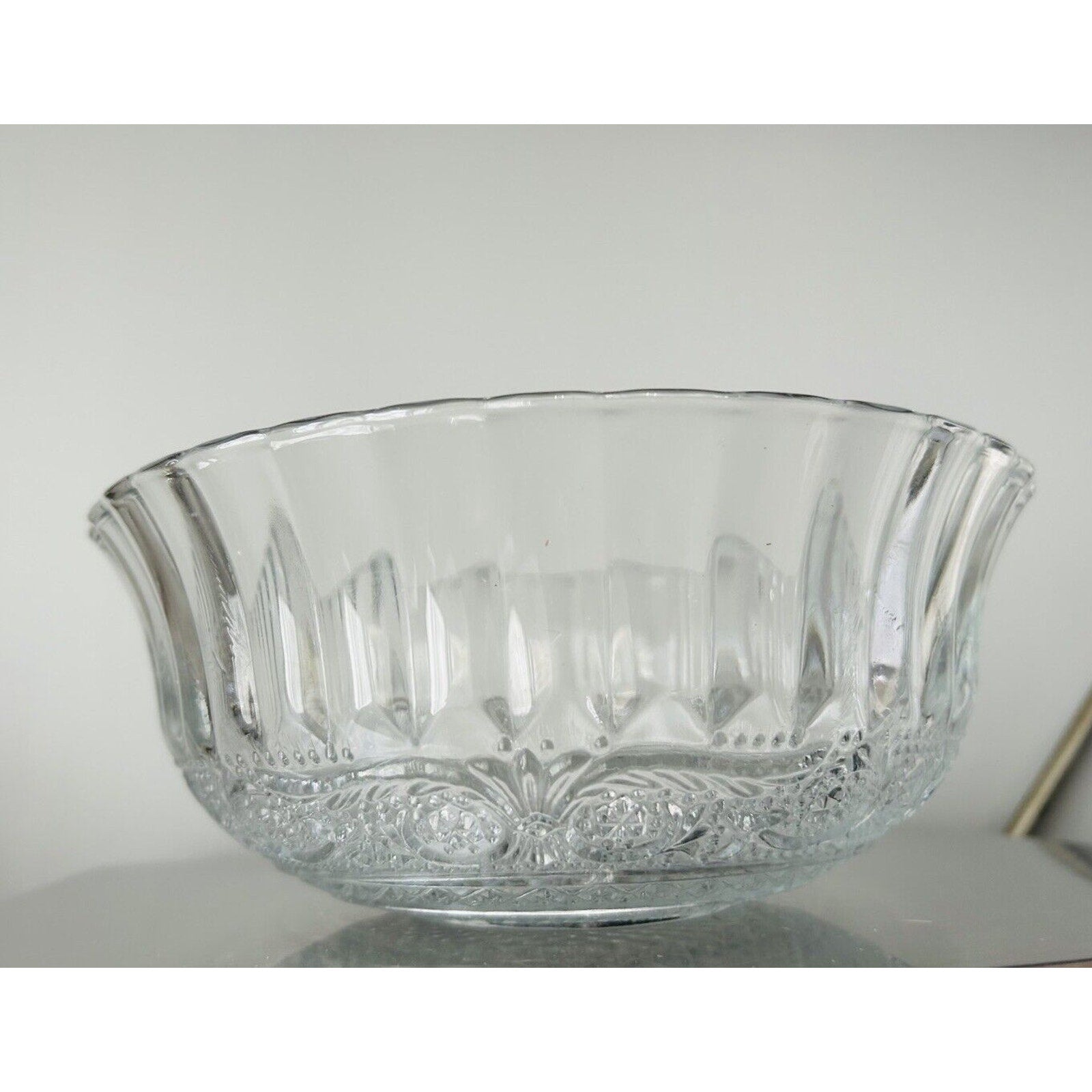 KIG Malaysia Fleur de Lis Pressed 7 1/4” Glass Trellis Serving Bowl Fluted Edges