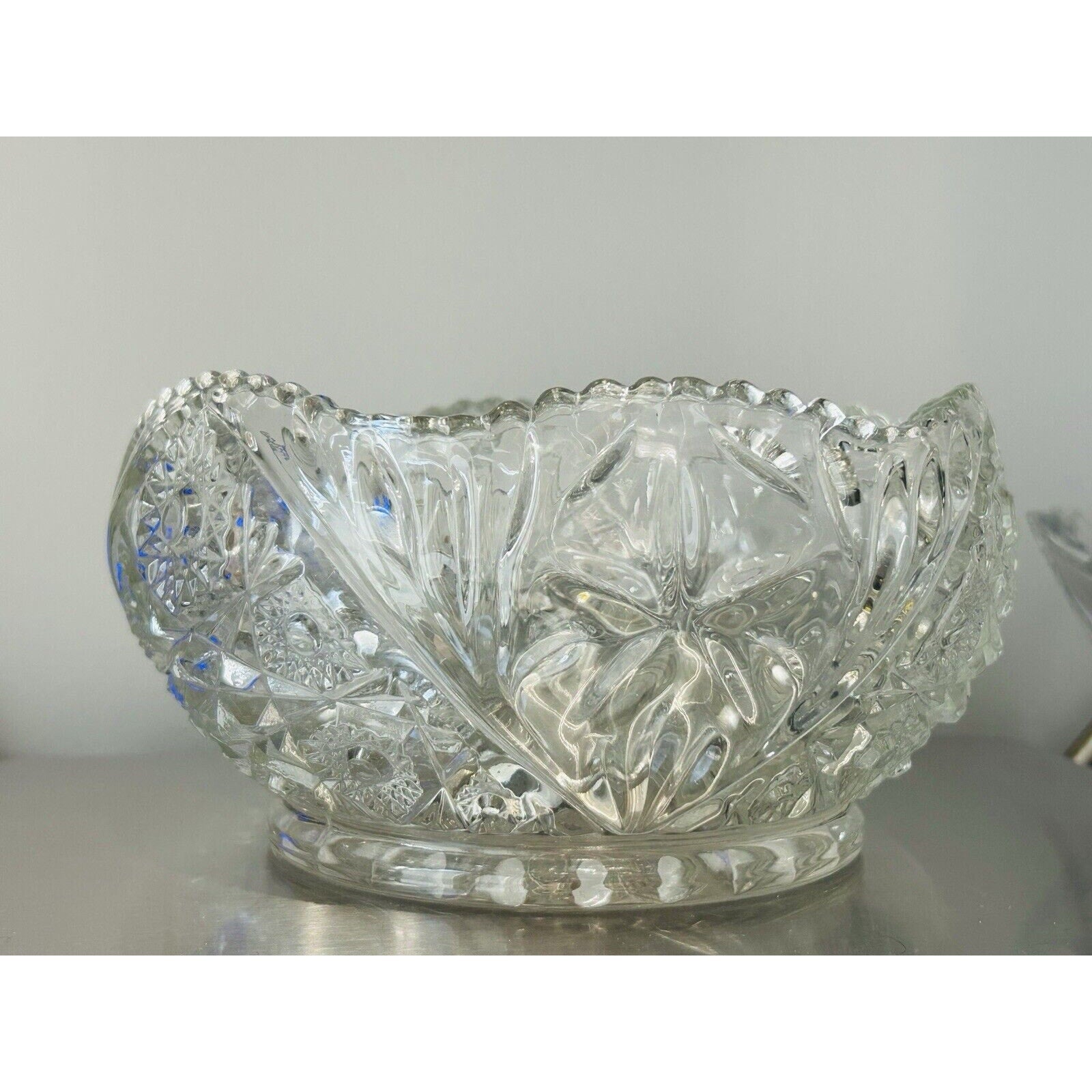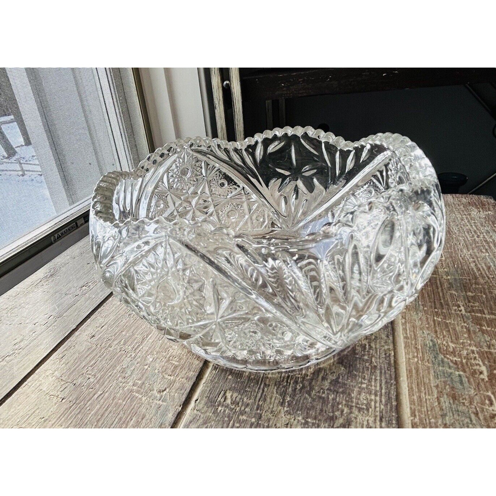 L.E. Smith Bowl Hobstar and Daisy No 346 Cupped Footed Sawtooth 7½" Cut Glass