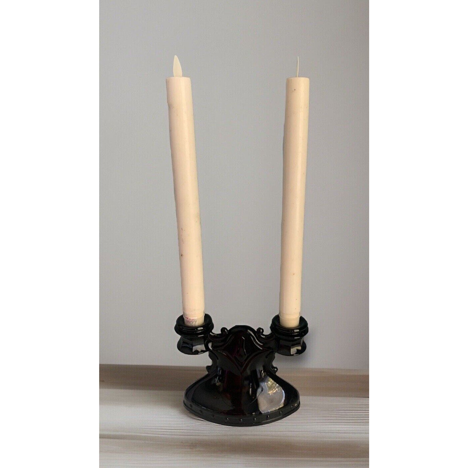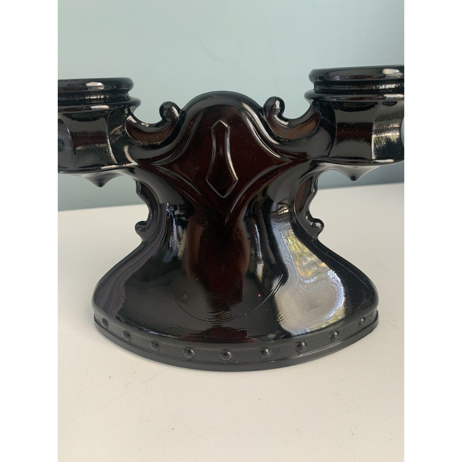 L.E. Smith Vintage Pleasant Black Glass Candlestick Holder Halloween Renaissance