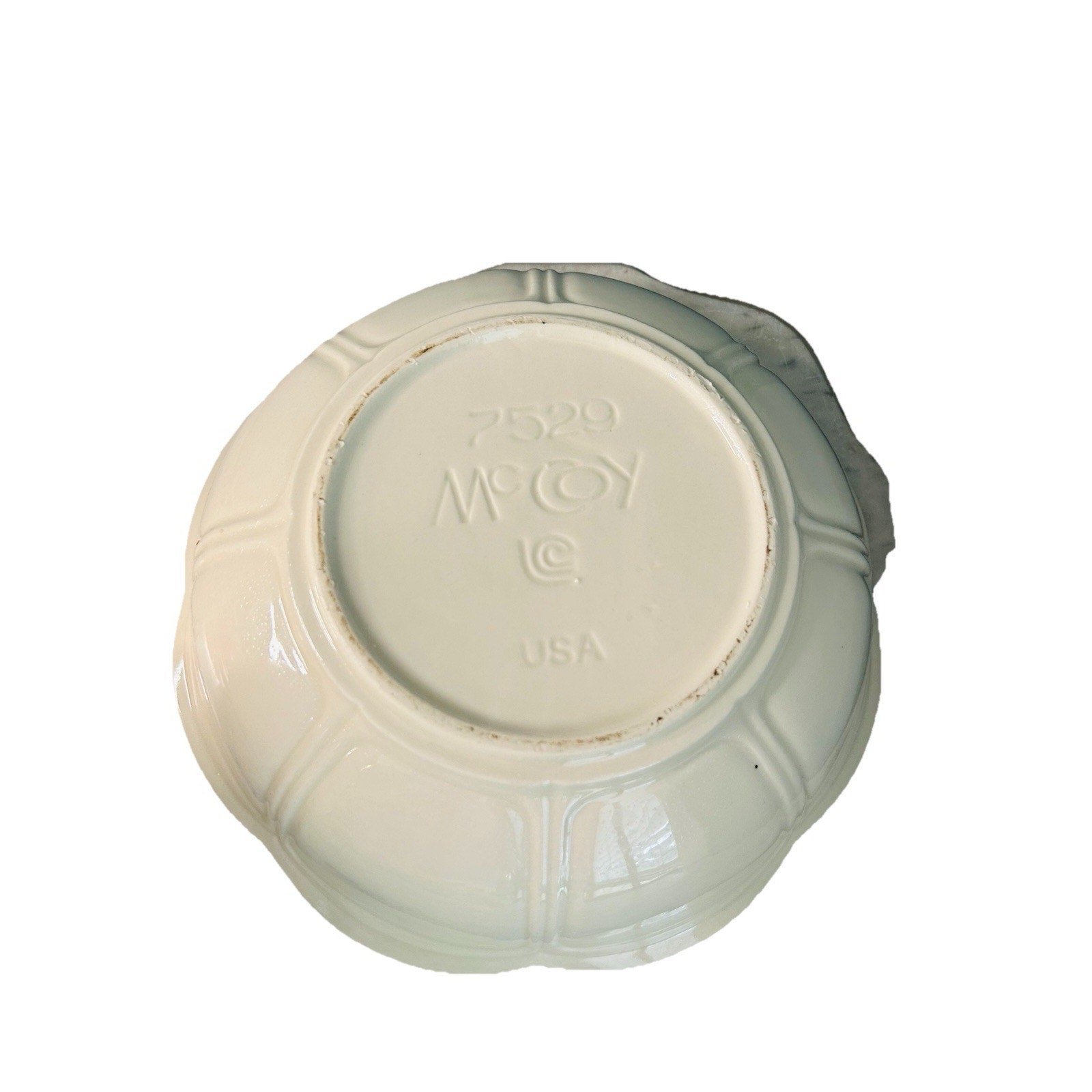 McCoy White Ironstone Pitcher Bowl # 7529 Ribbed & Flower Design Vintage USA