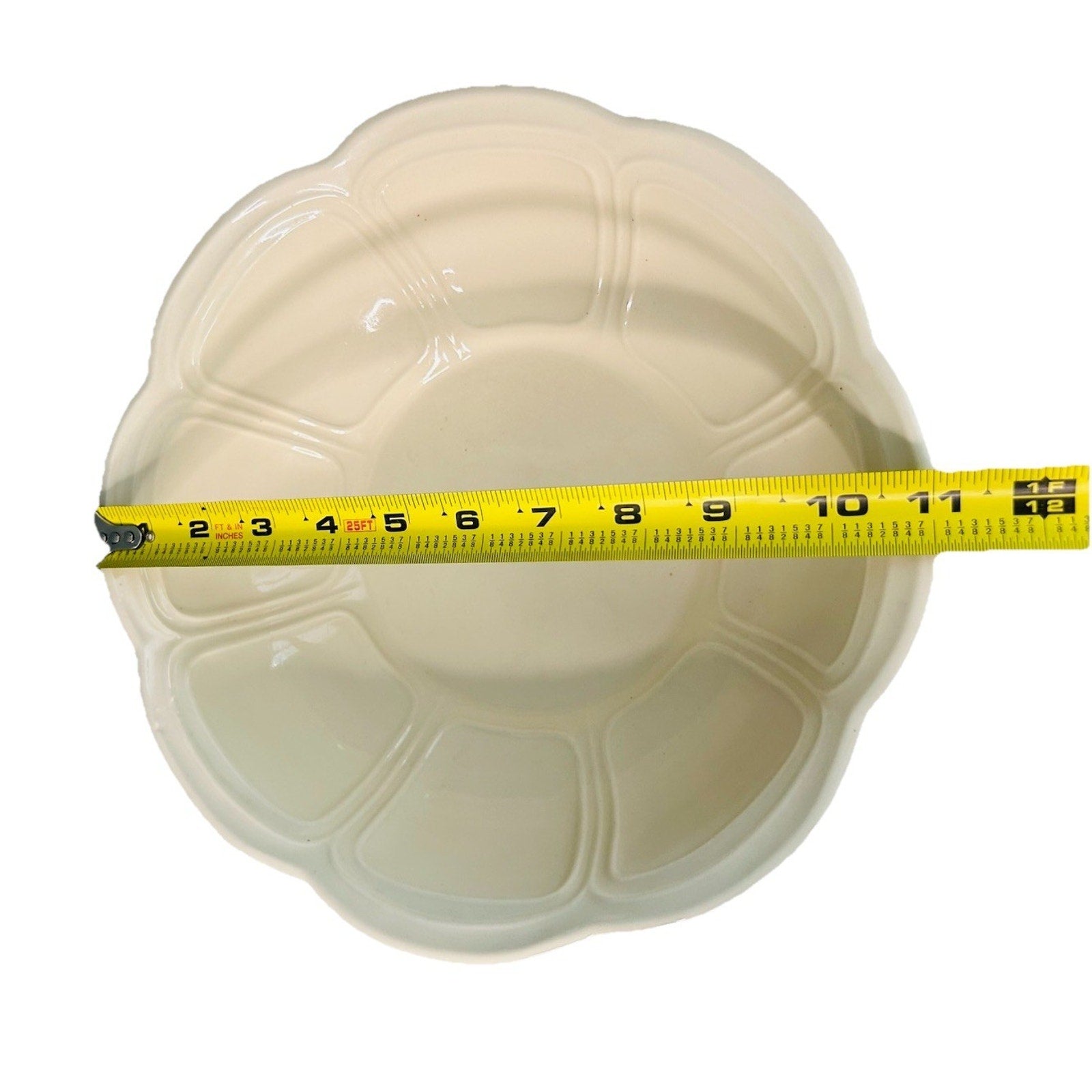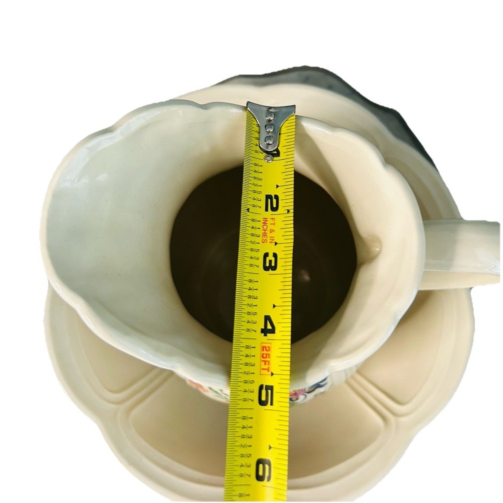 Add a touch of vintage charm to your home decor with this beautiful McCoy White Ironstone Pitcher Bowl. The ribbed design and delicate April Flowers pattern make it a stunning decorative piece, perfect for any room. Hand wash only care ensures the preservation of its unique qualities.