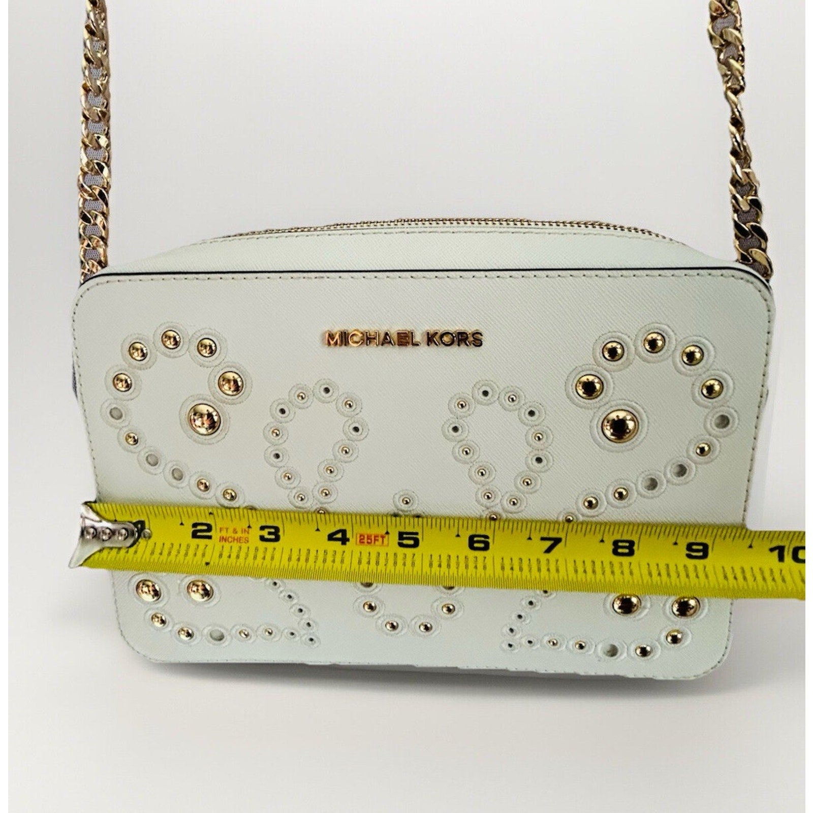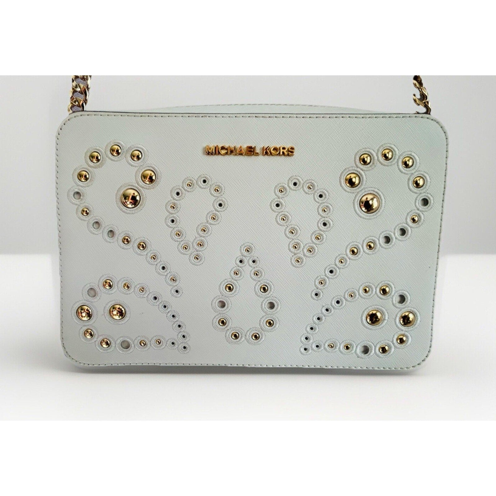 Michael Kors Ginny Leather Crossbody White Embellished Gold Studded Bag New