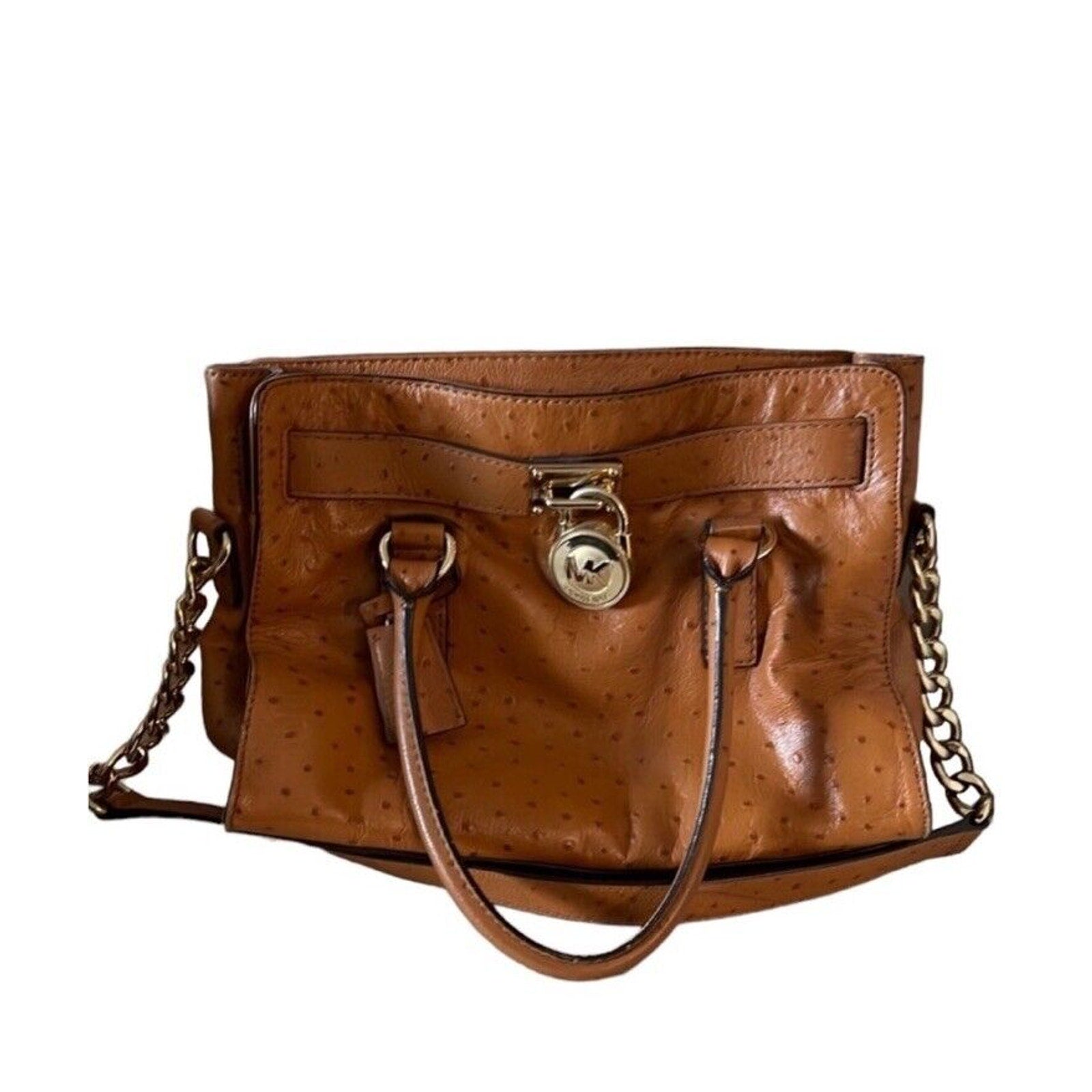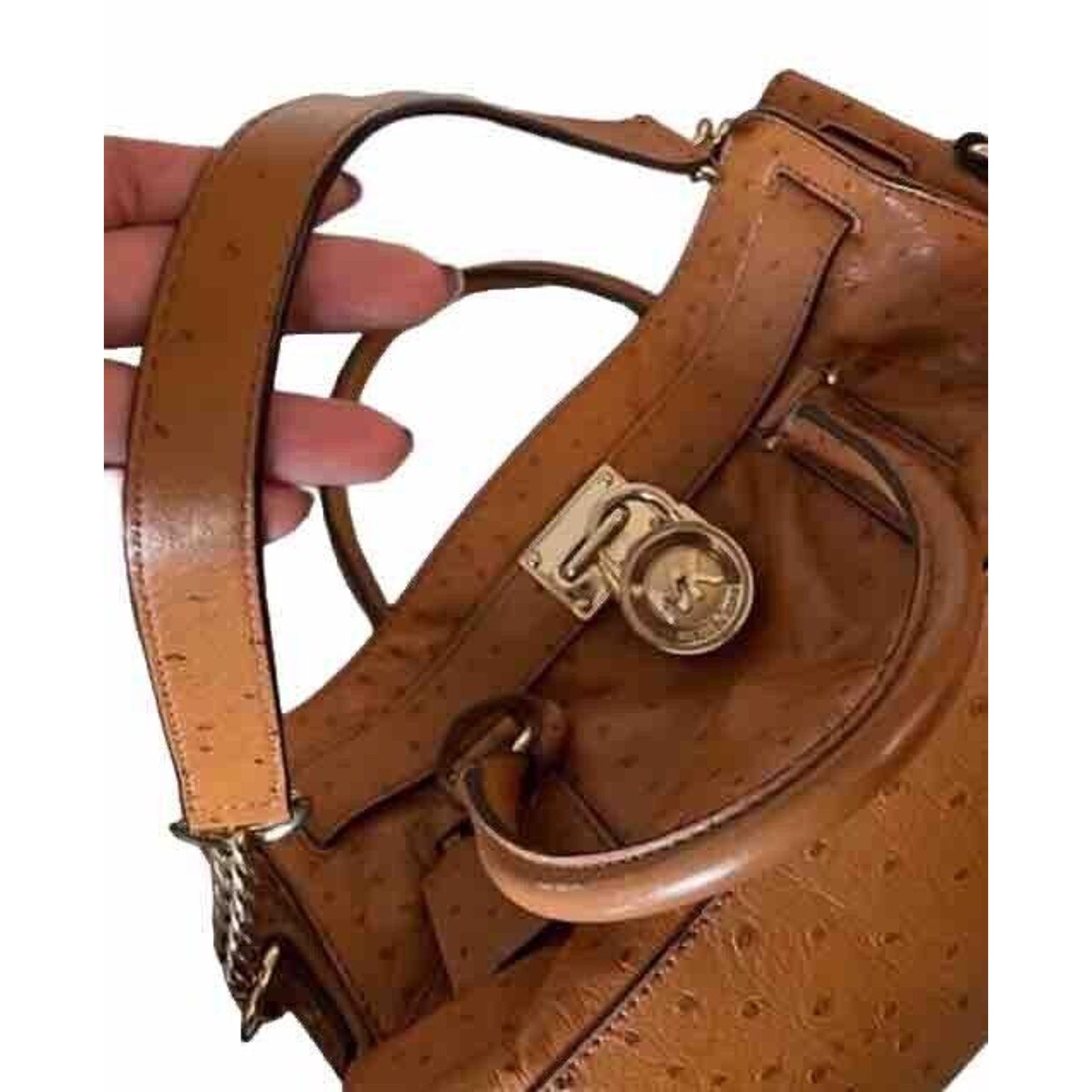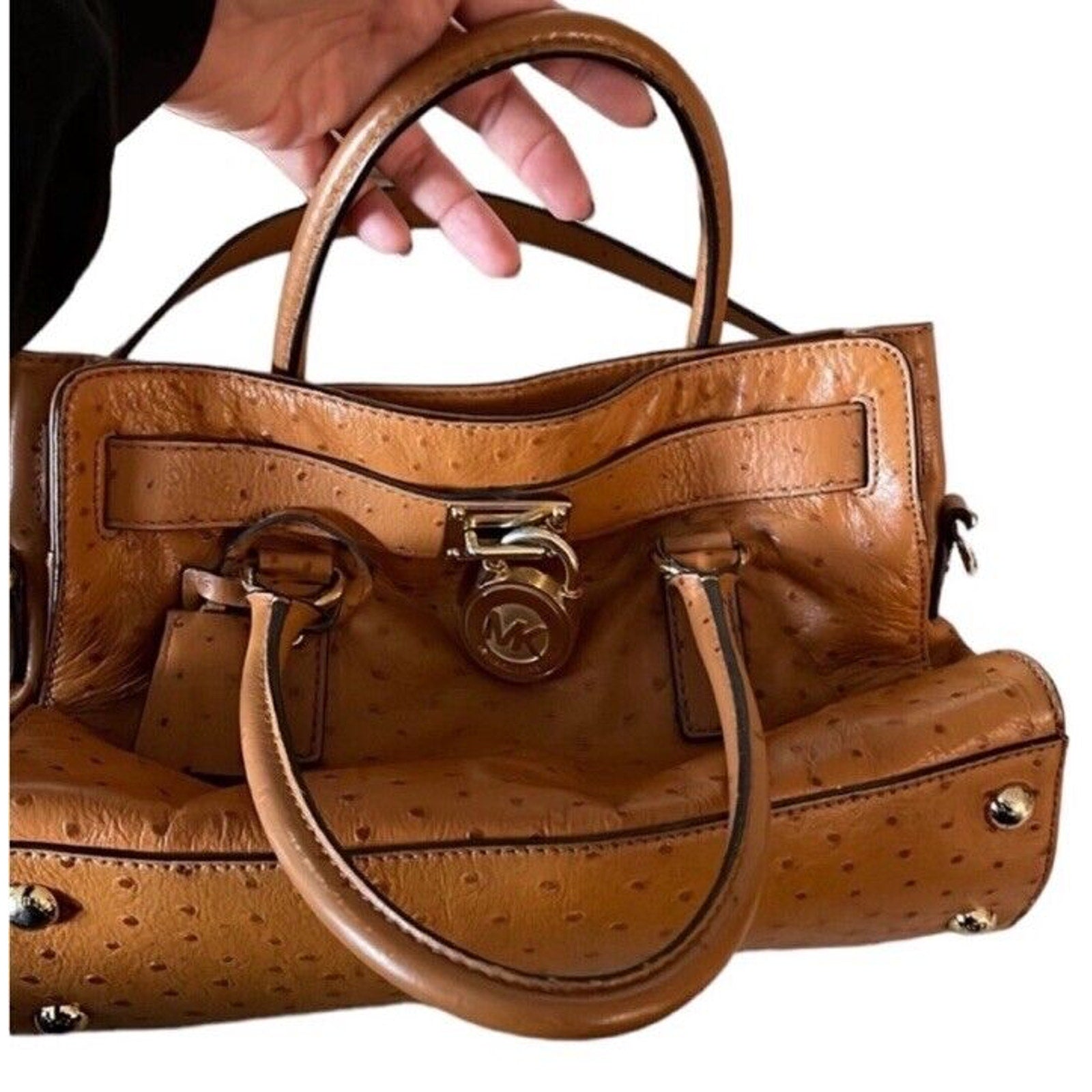 Michael Kors Hamilton Orange Ostrich Leather Satchel Tote Bag