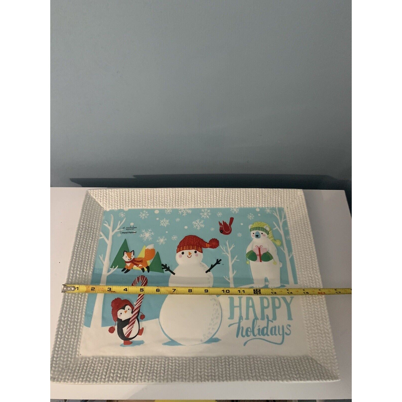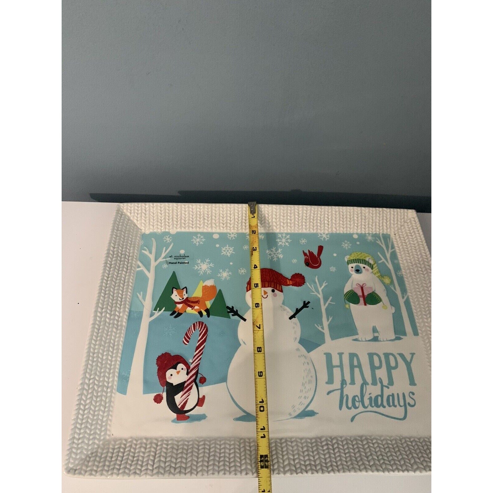 New 16" St Nicholas Square "North Pole" Porcelain Snowman Platter Hand Painted
