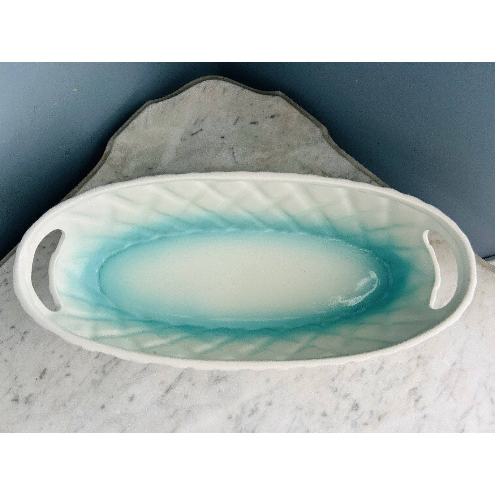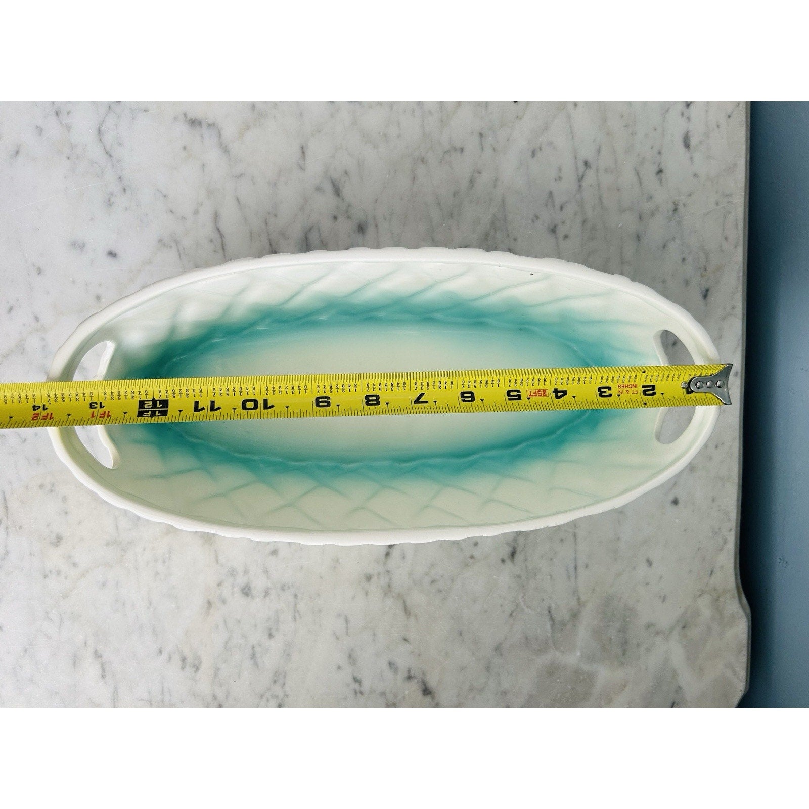 A new 2013 Target Ceramic Ombré Easter Basket Serving Bowl Dish in white and teal. Made of ceramic, this collectible item is designed in a gradient color scheme perfect for Easter.