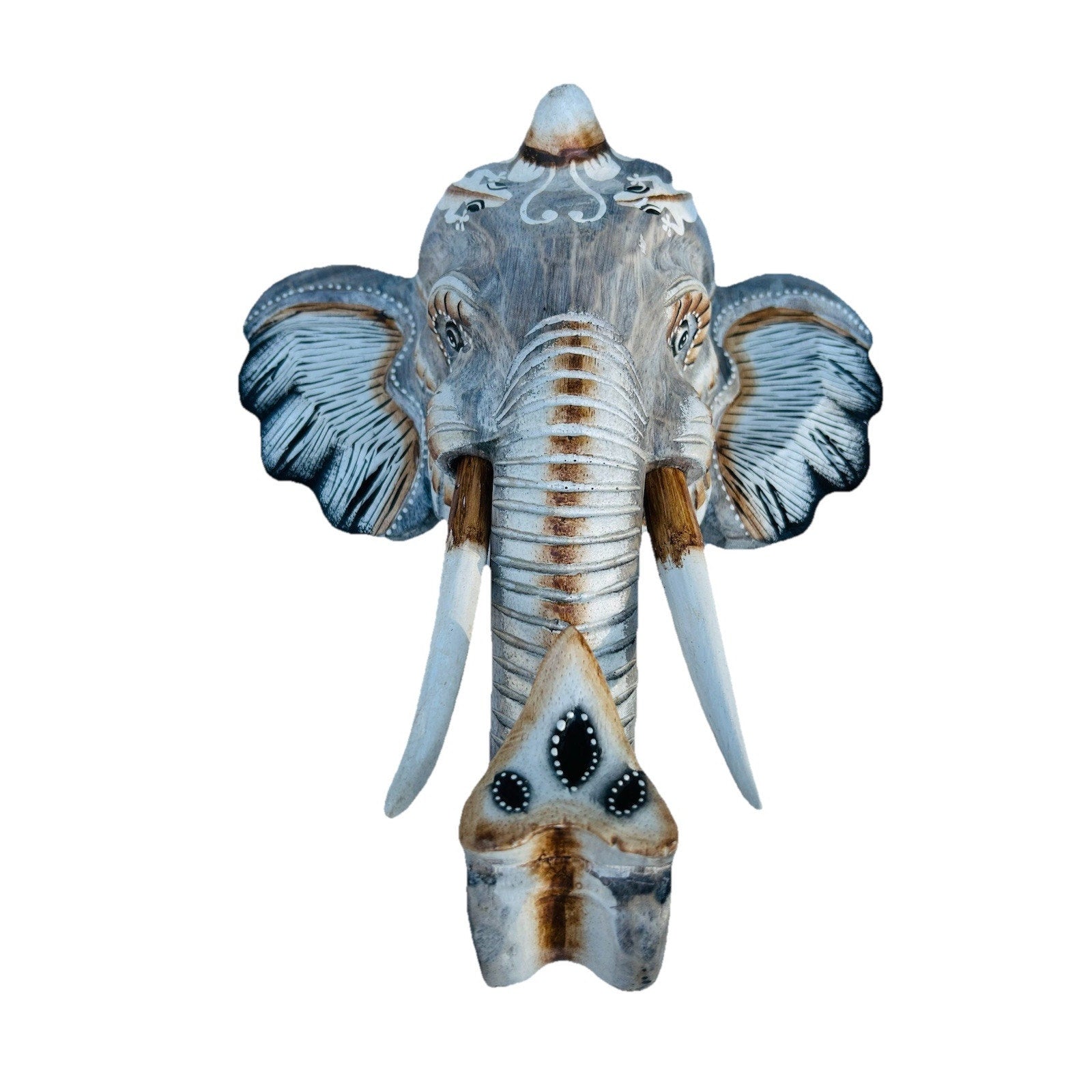 The white-colored sculpture is made of high-quality wood and depicts a majestic elephant, making it an excellent choice for animal lovers. The sculpture is perfect for both women and men and does not require any additional parts to mount. Add a touch of Pura Vida to your home with this exquisite piece of art from Indonesia.