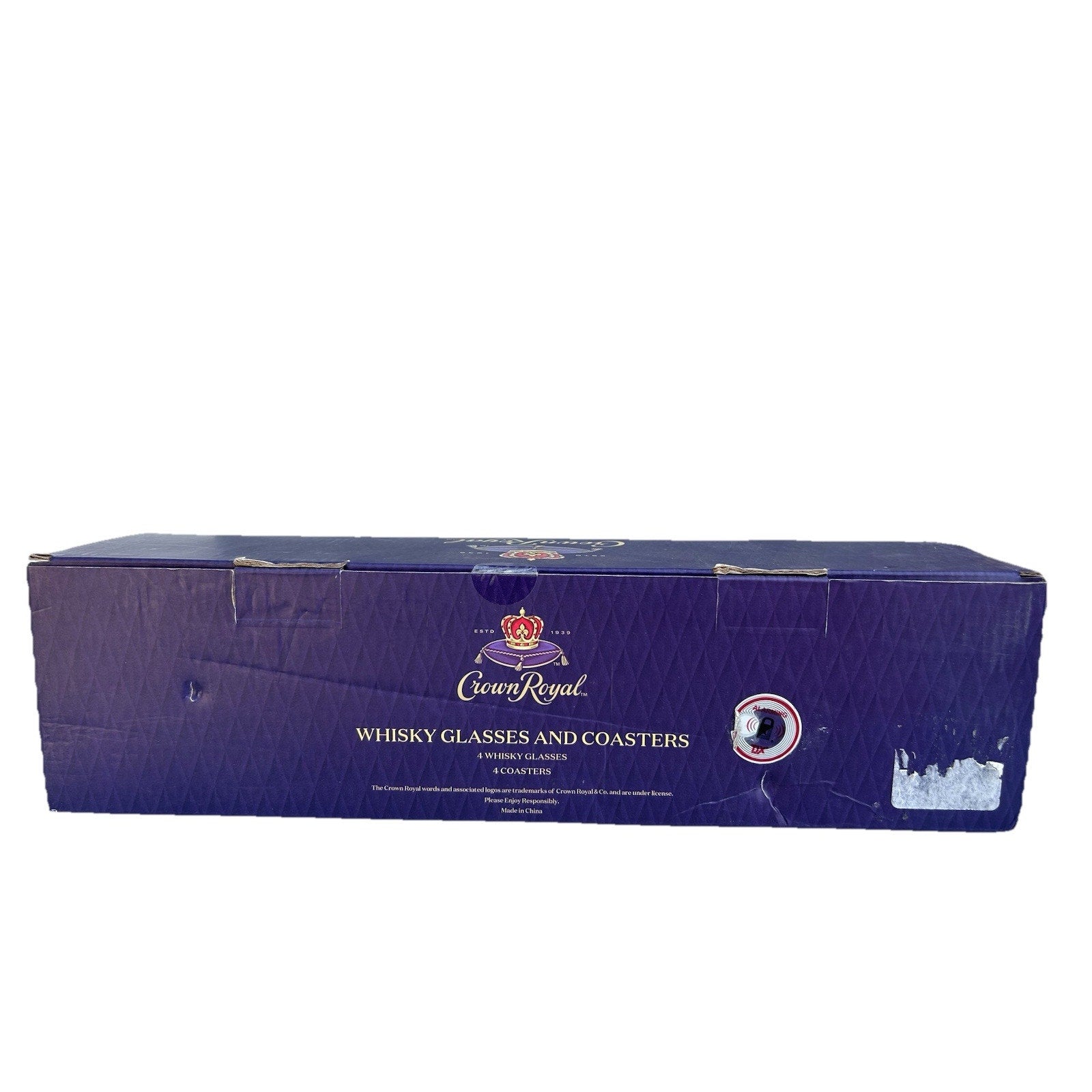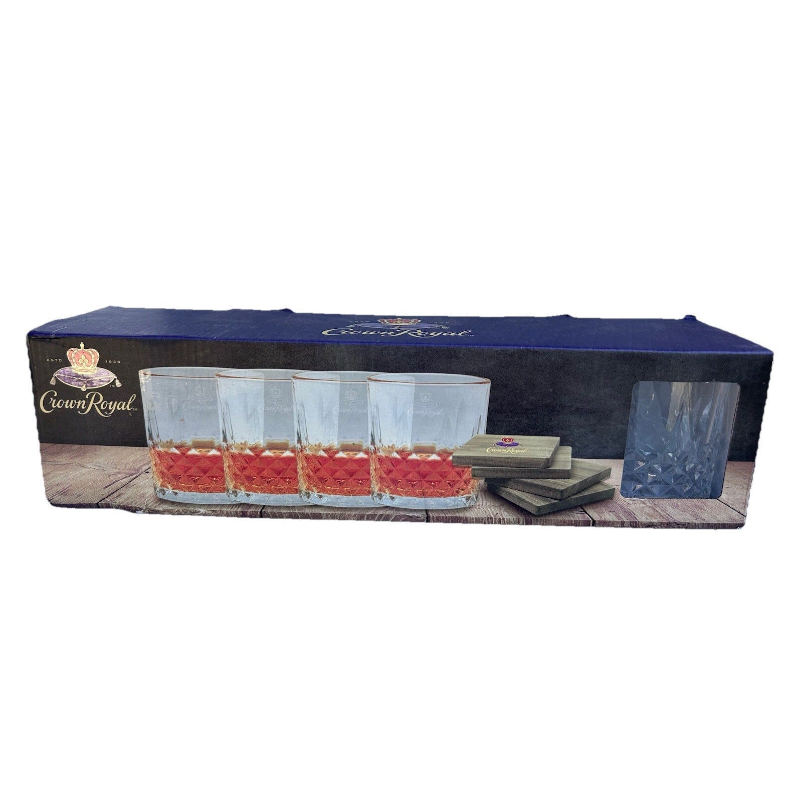 New Set of 4 Crown Royal Whiskey Glasses & 4 Coasters New In Box