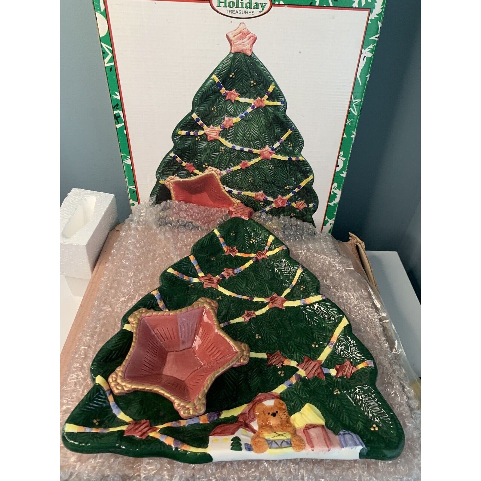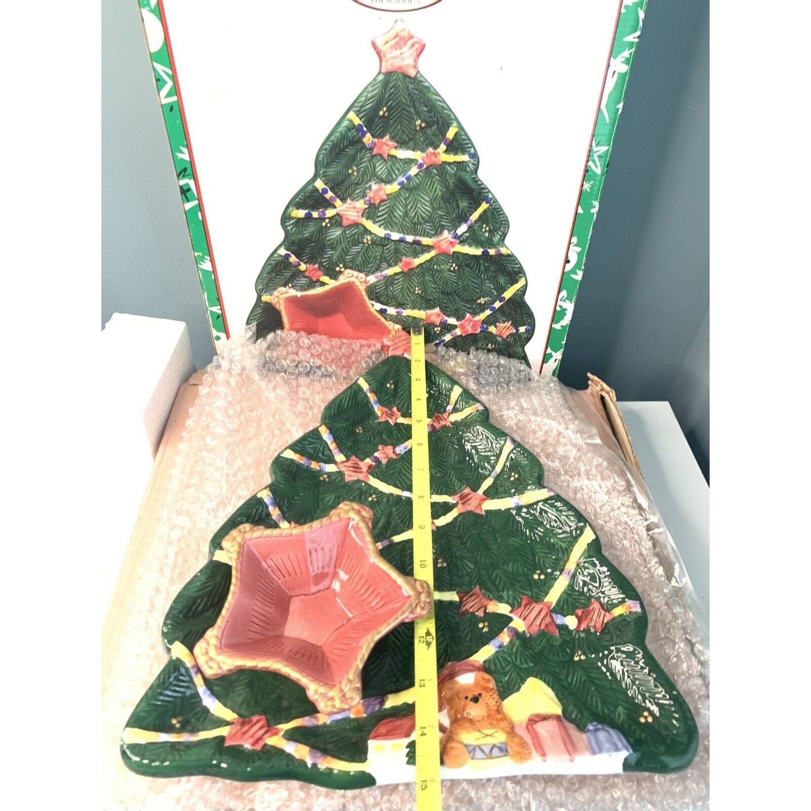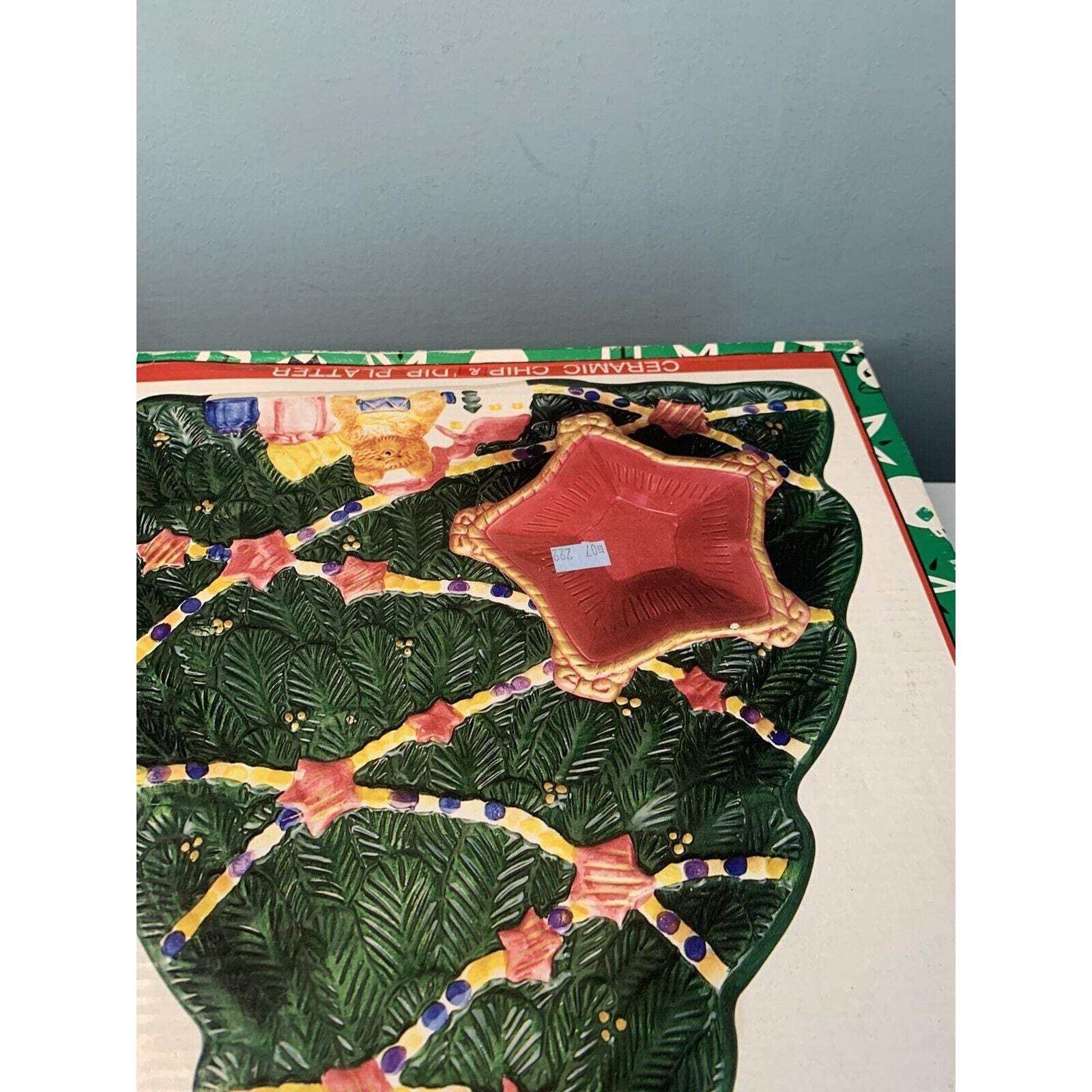 New Vintage World Bazaar’s Christmas Tree Platter Chip Dip Condiments NIB