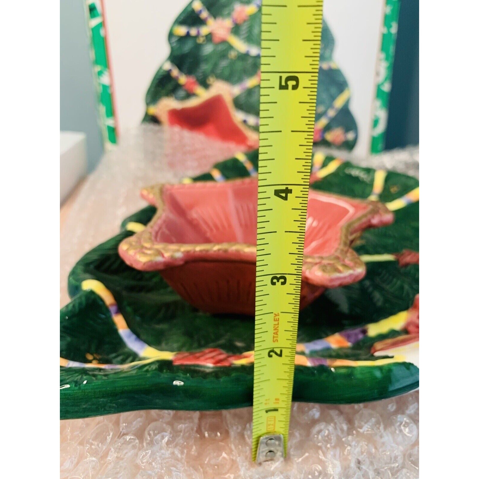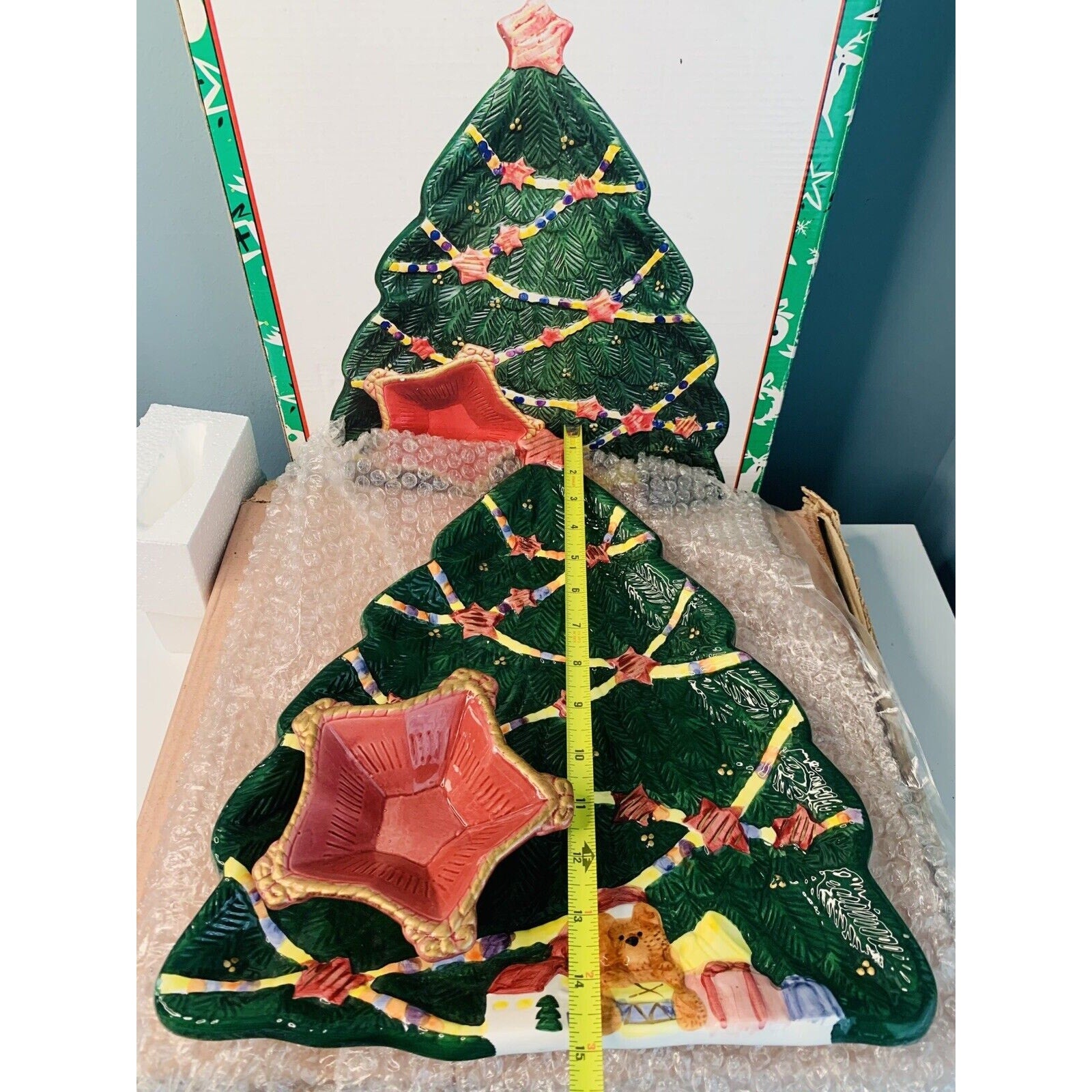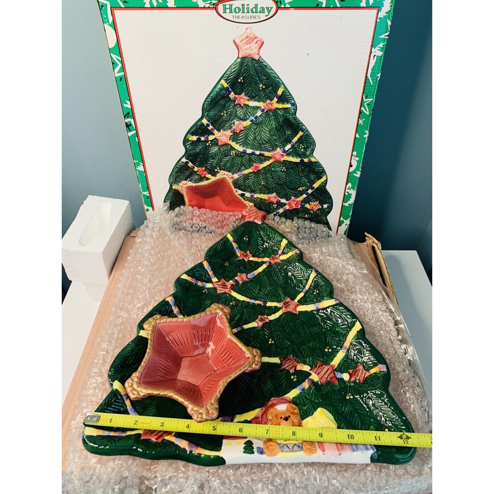 New Vintage World Bazaar’s Christmas Tree Platter Chip Dip Condiments NIB