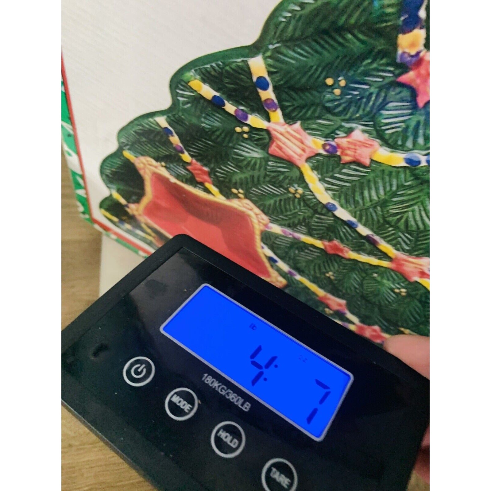 The holiday treasures style tray is an original and licensed reproduction, with a height of 3 1/4 inches. It's a great addition to your collectibles and kitchenware, and is sure to impress your guests. Get ready to serve up some holiday cheer with this fun and unique Christmas tree platter!