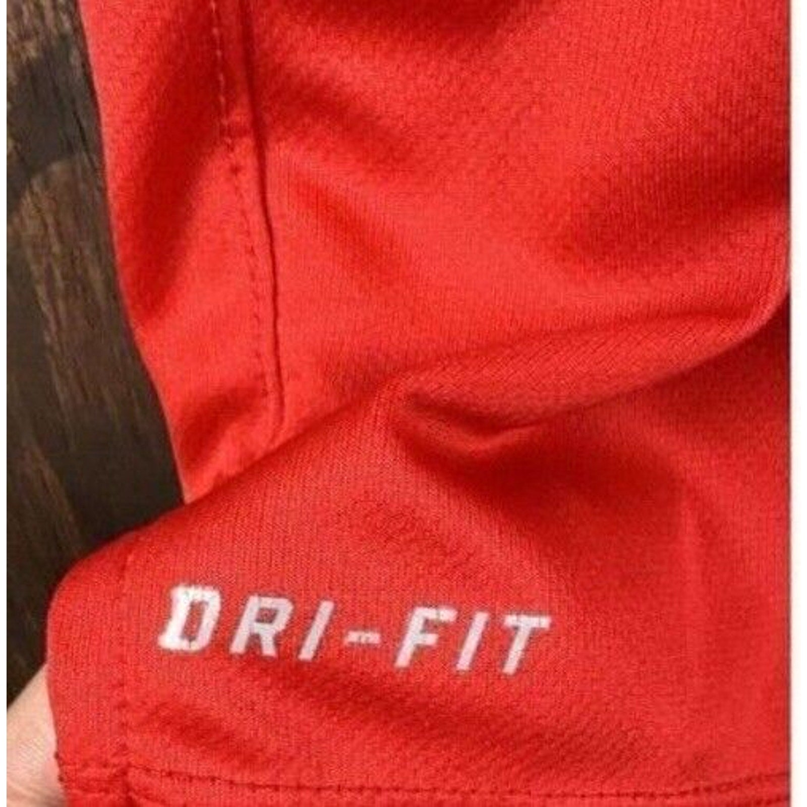This Nike polo shirt is perfect for any man who wants to look stylish and feel comfortable. It comes in a vibrant red color and has a collared neckline with a button-down closure. The shirt features short sleeves and is made of polyester fabric with a solid pattern.