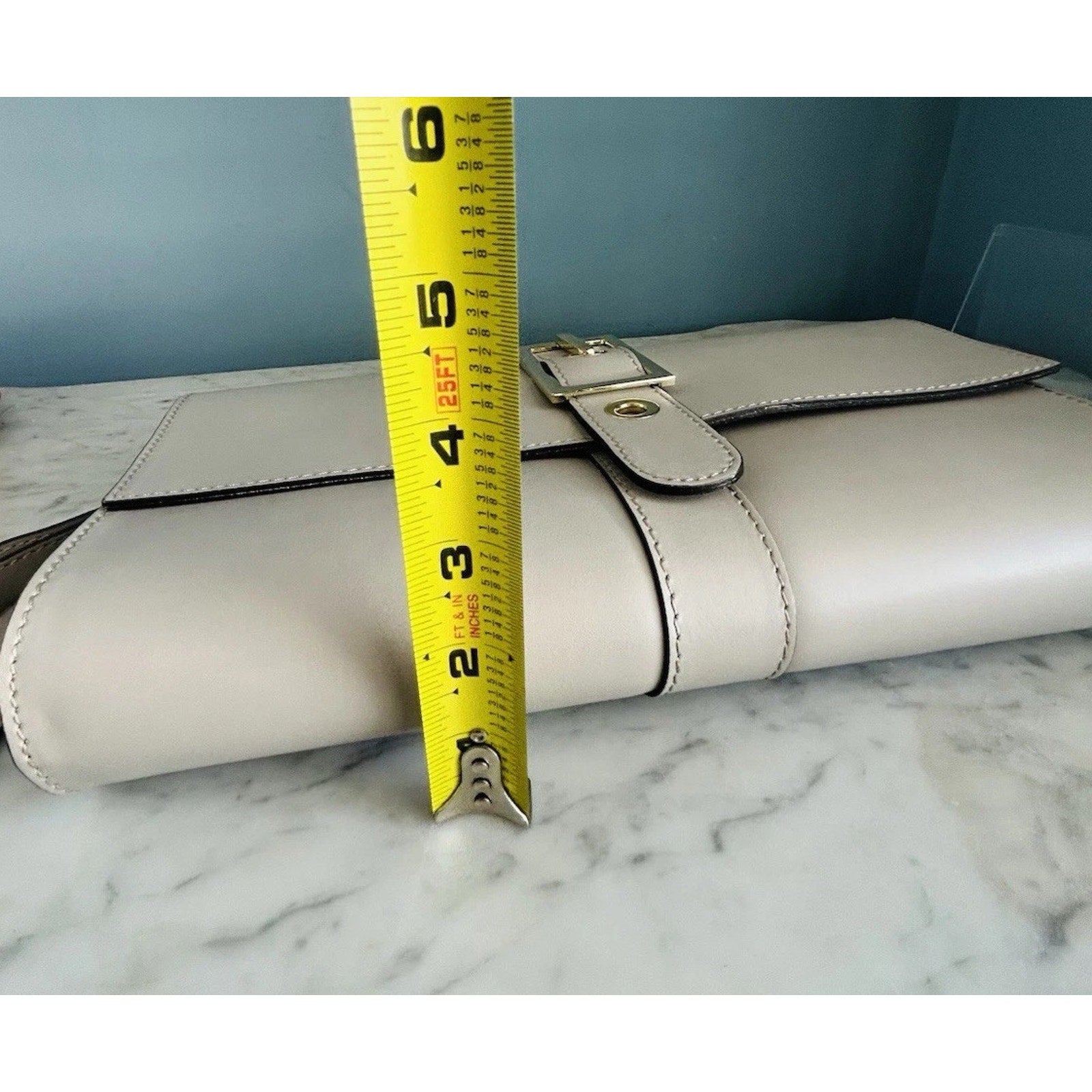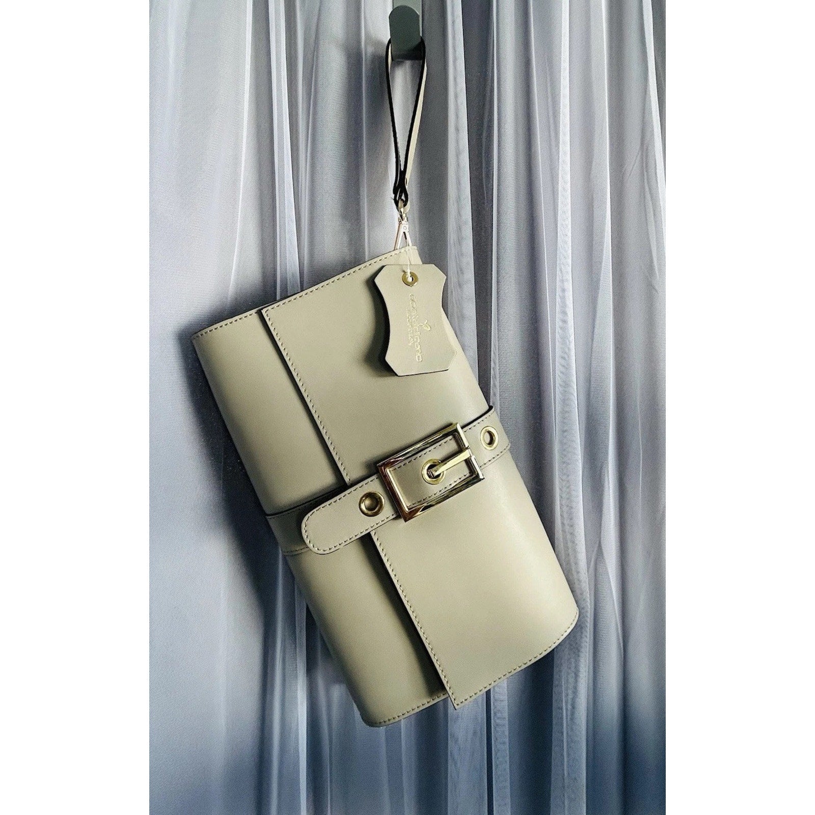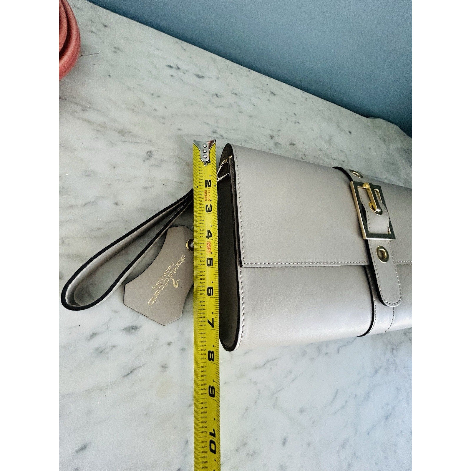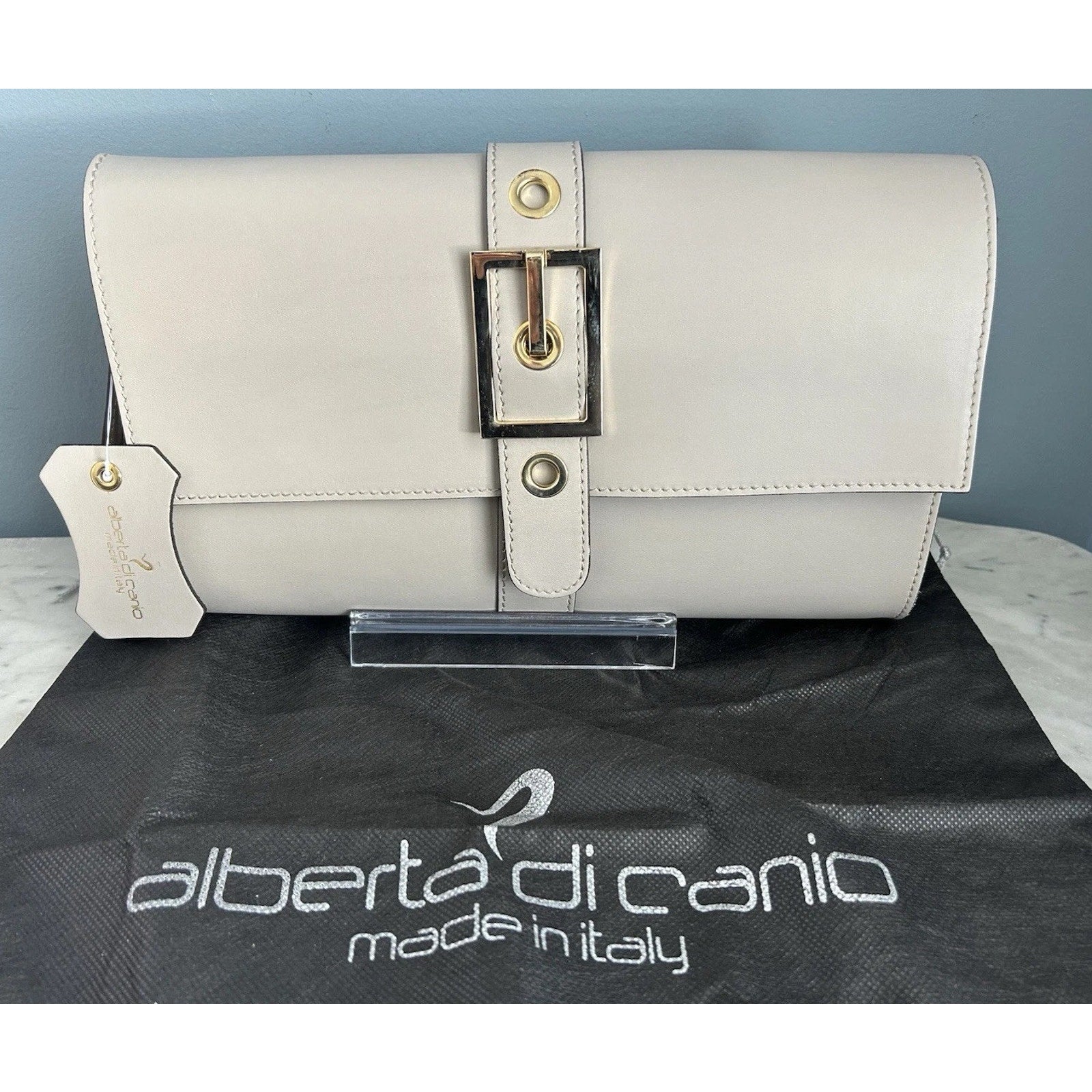 NWOT Alberta Di Canio Italian Leather Beige Gray Clutch Handbag Wristlet Taupe